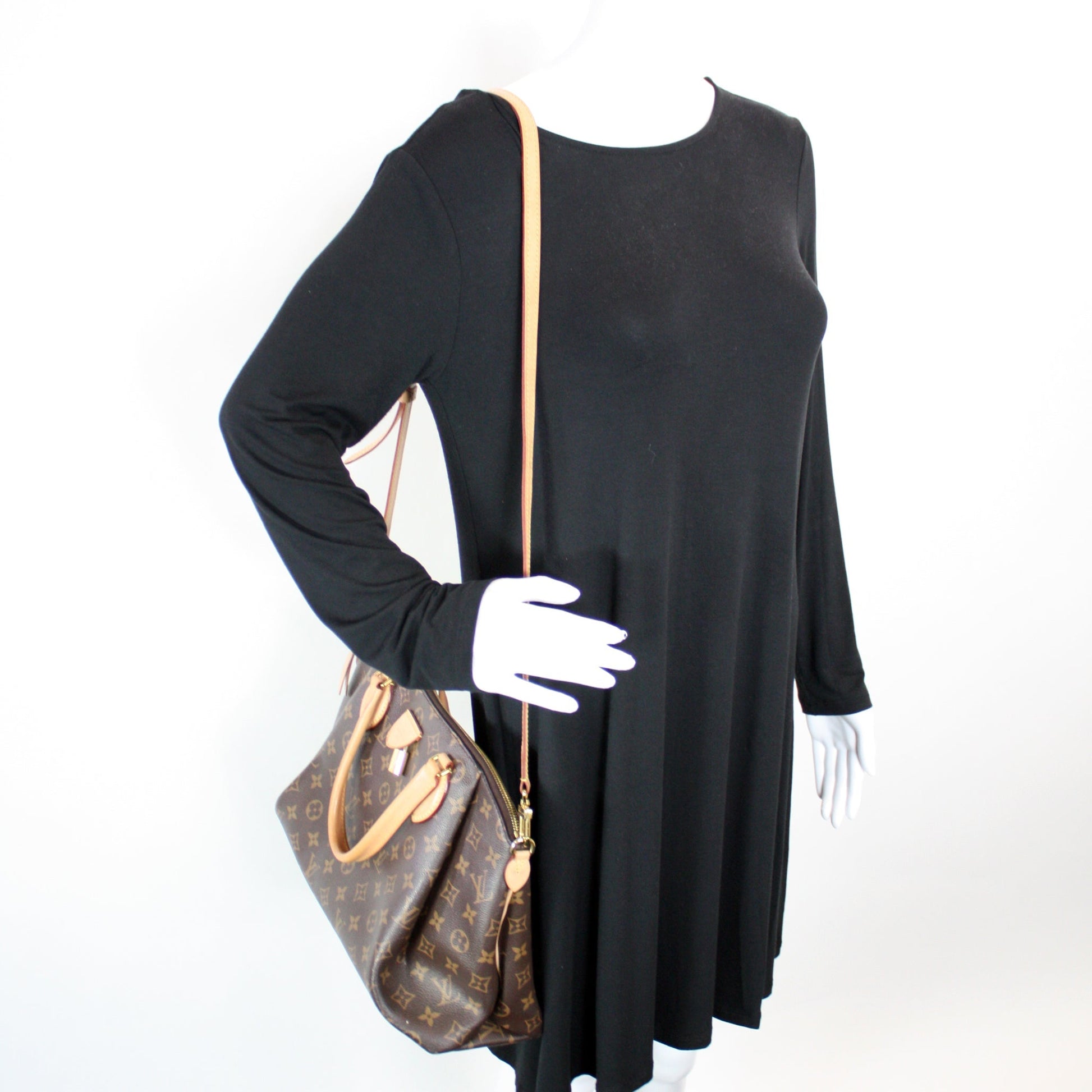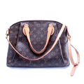 This Louis Vuitton Rivoli NM MM is d 100% . The exterior is in the classic Louis Vuitton Monogram coated canvas.