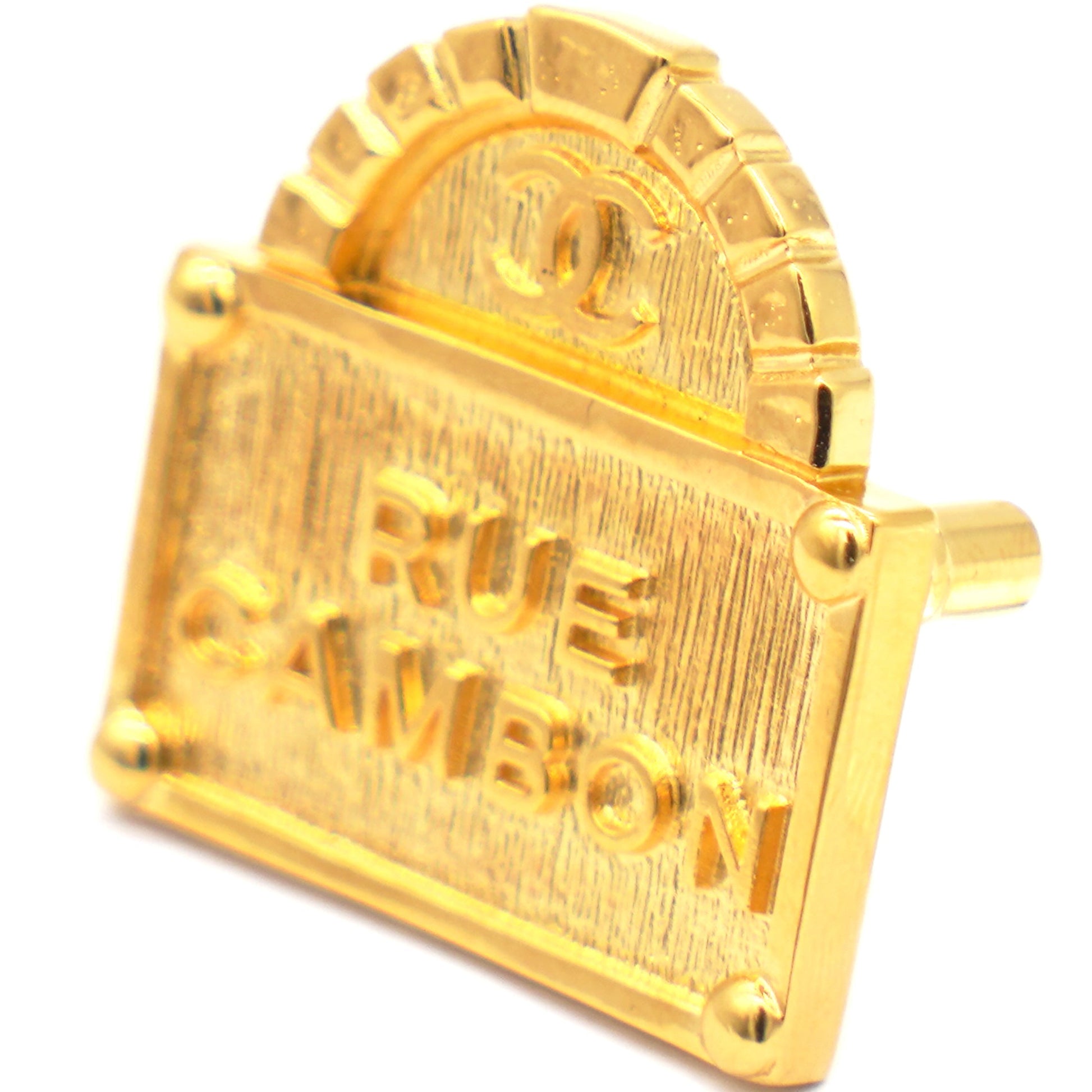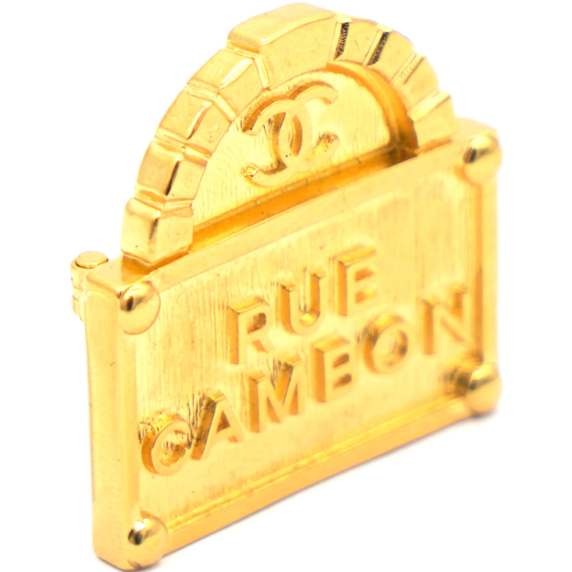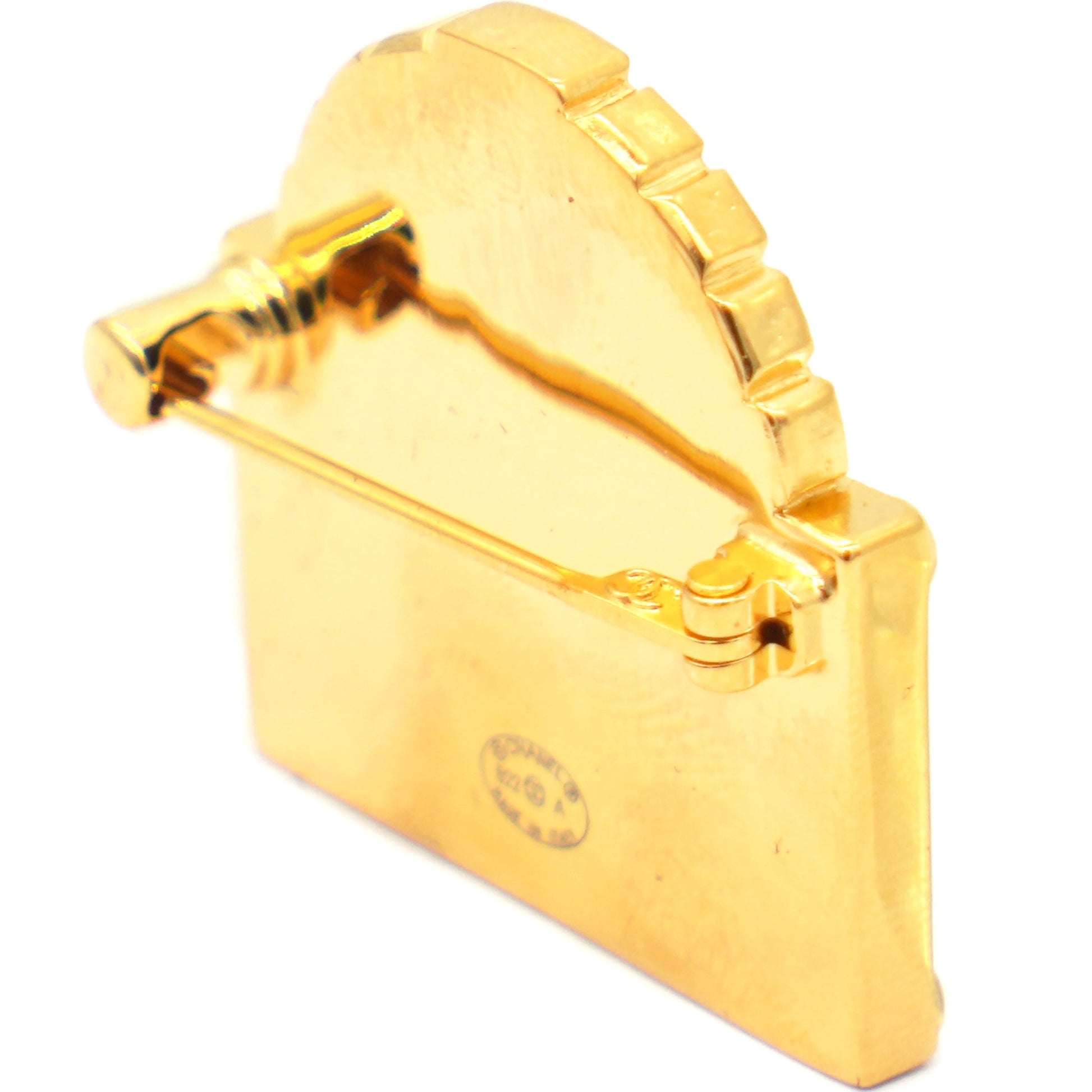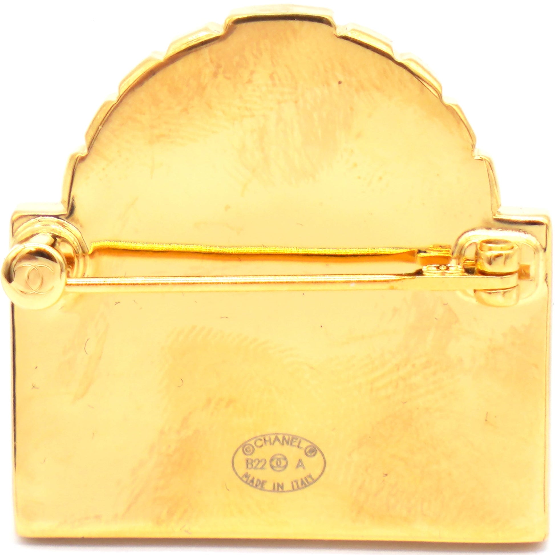 | Insipired by the flagship 31 Rue Cambon Boutique entrance architecture, this half dome shape with rectangular brooch surely is a collector piece. Decorate your favorite Chanel tweed jacket, cardigan or bag. | Material: Gold Color Finish Metal Gold Accessories:Box Serial Number: B22A Production Year: 2022 | ![]() |