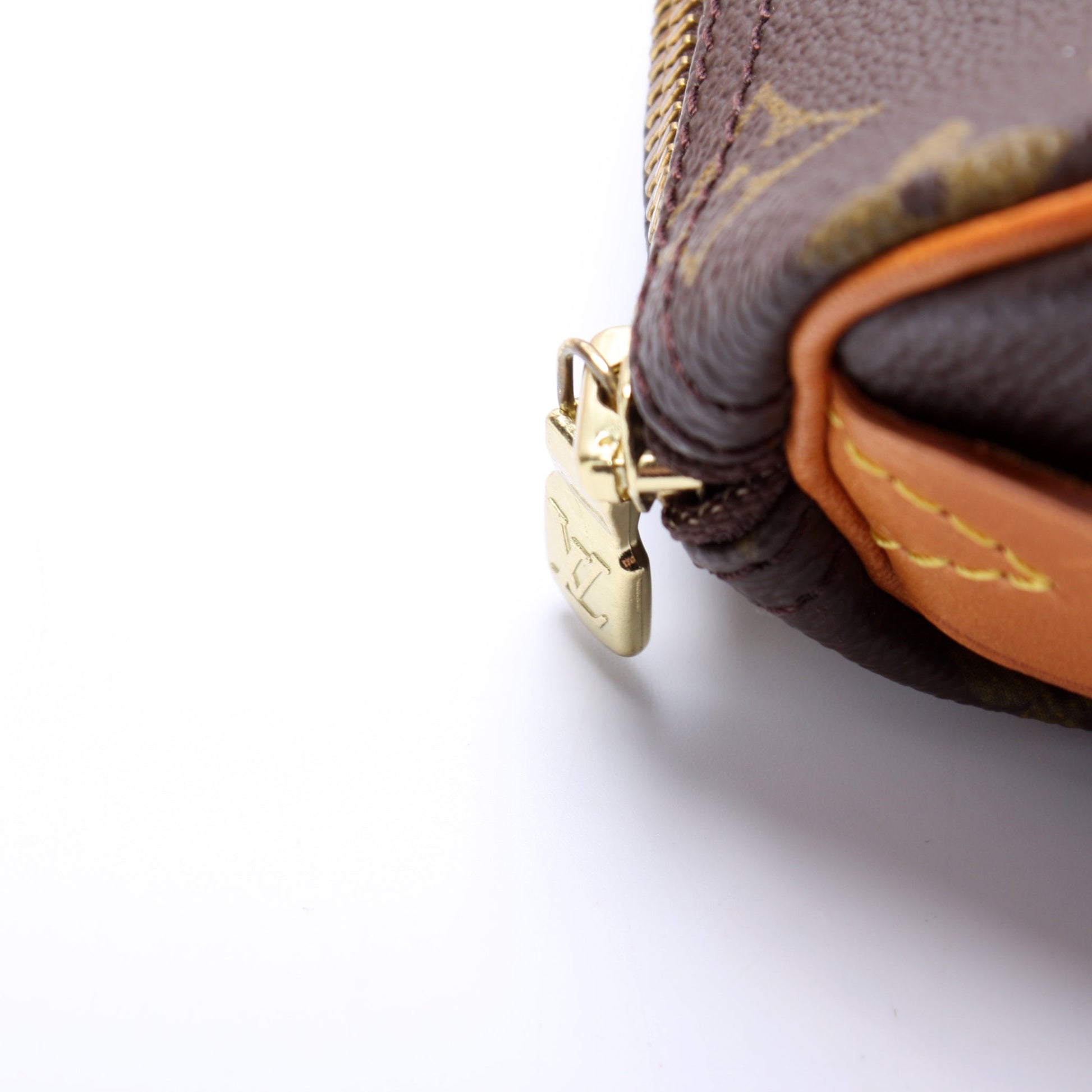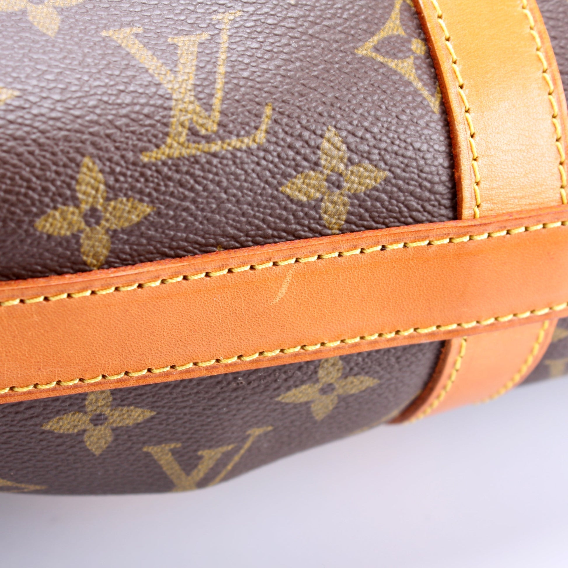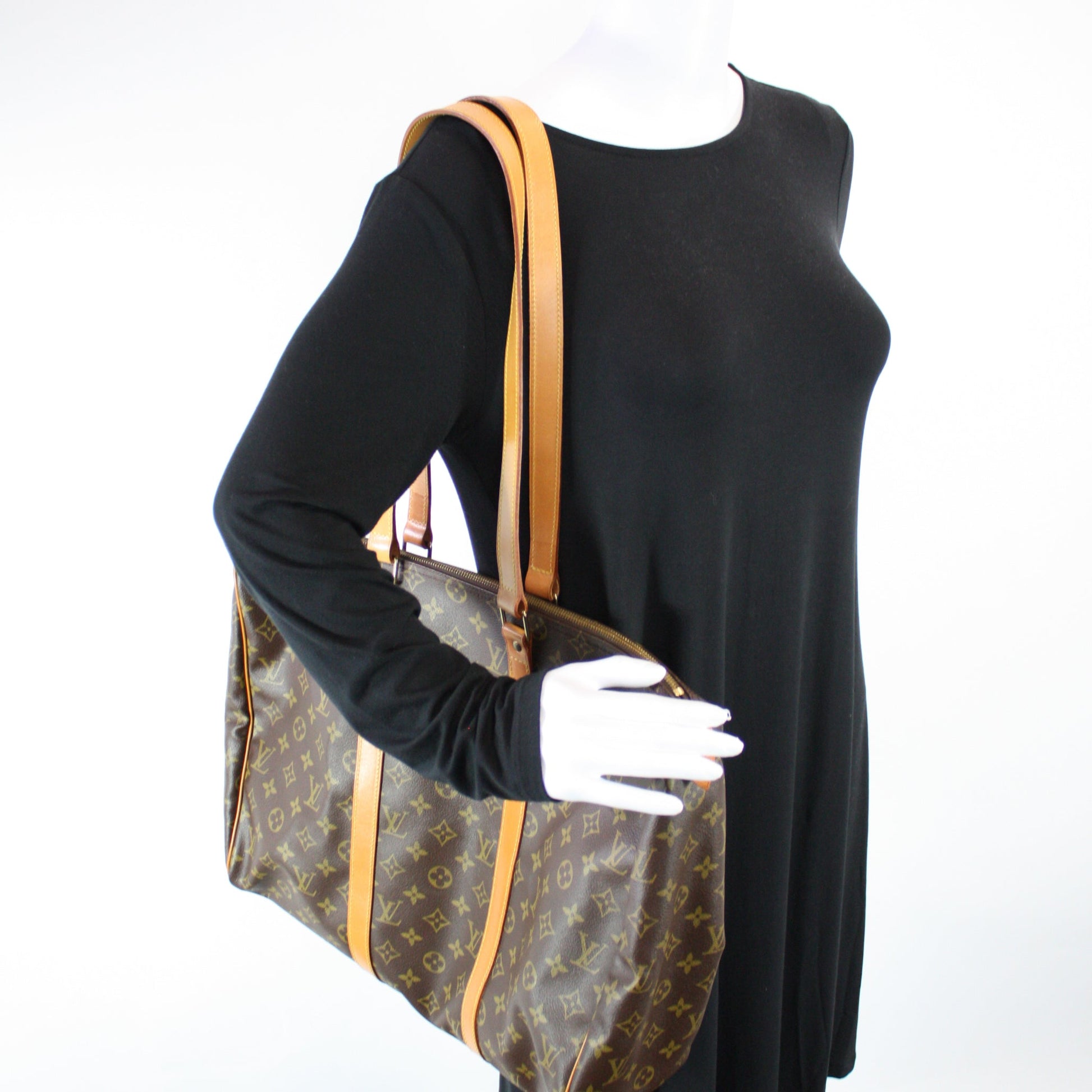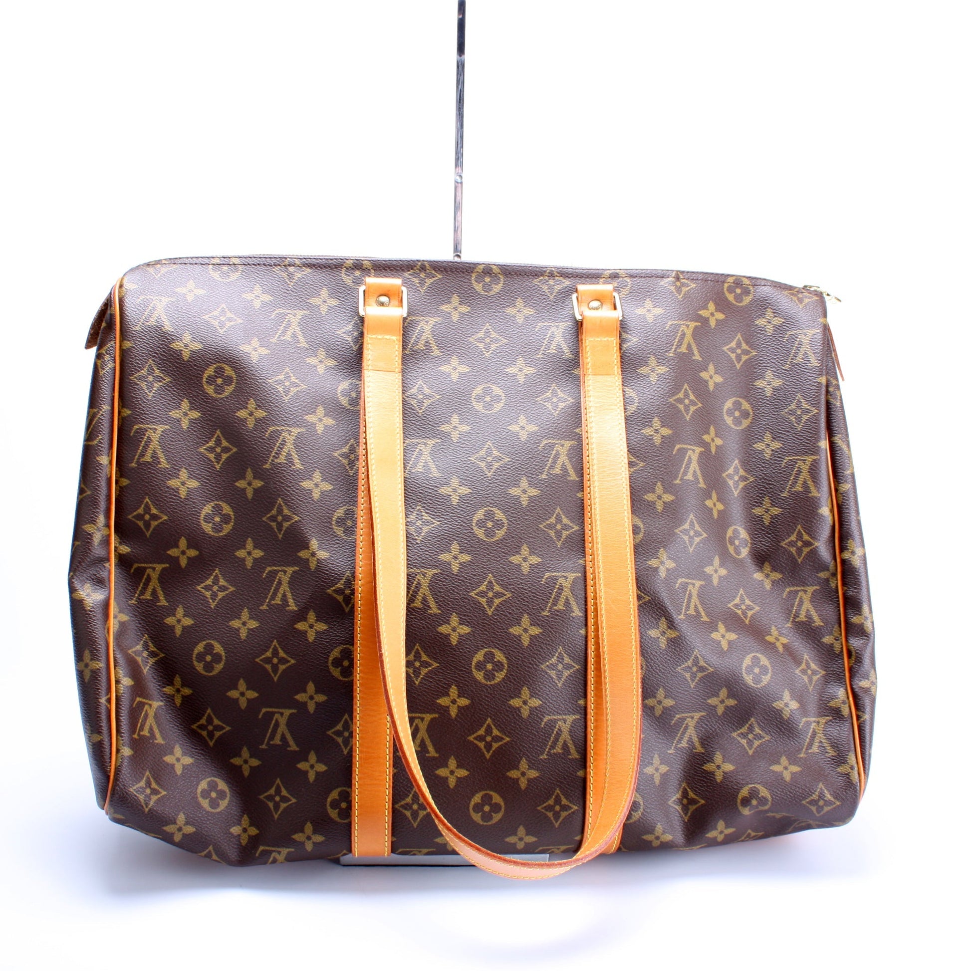 This Louis Vuitton Sac Flanerie 50is eye catching bag. The exterior is in the classic Louis Vuitton Monogram coated canvas.