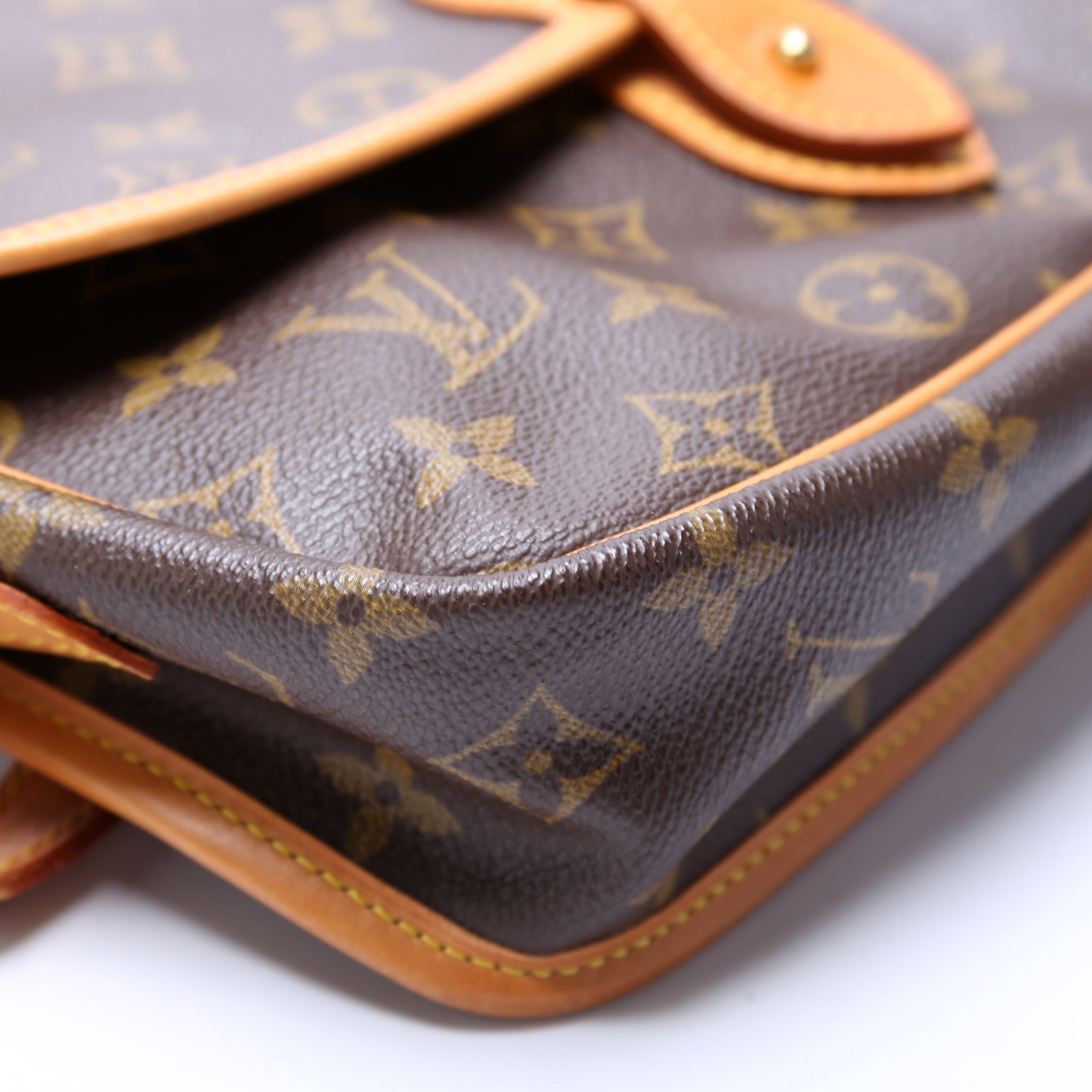This Louis Vuitton Sac Gibeciere PMis eye catching bag. The exterior is in the classic Louis Vuitton Monogram coated canvas.