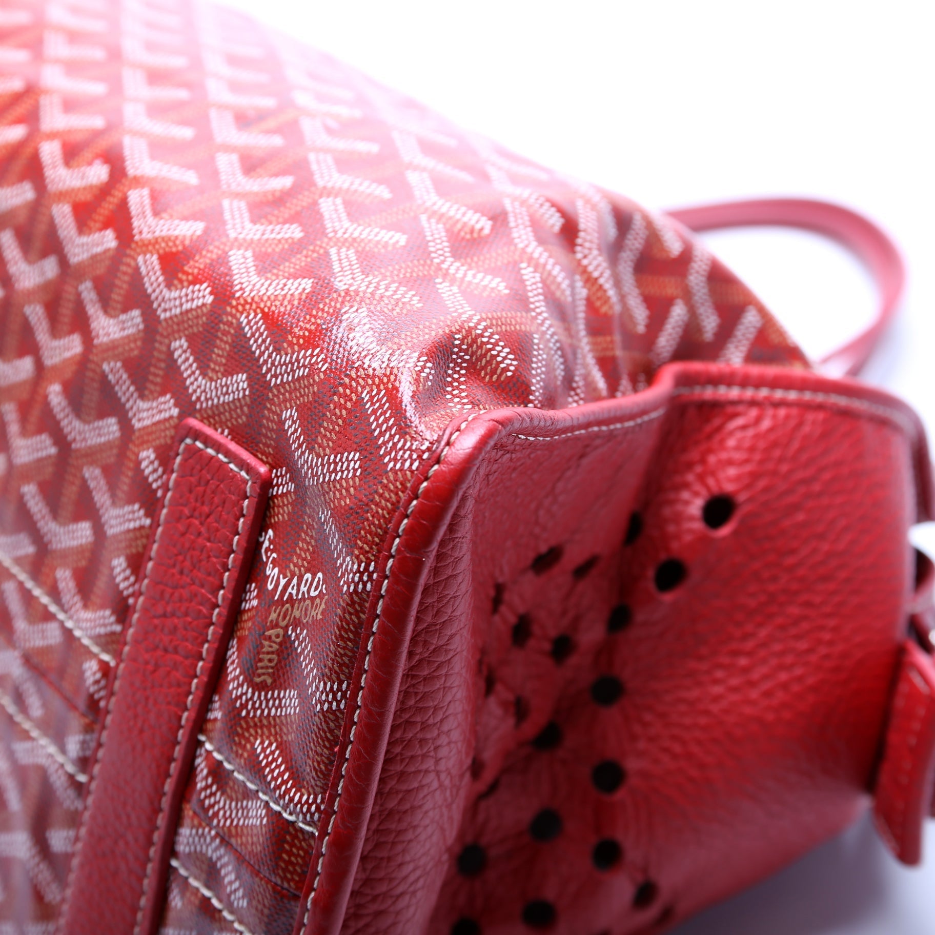 Handle: The leather handles have minor wear to the piping.