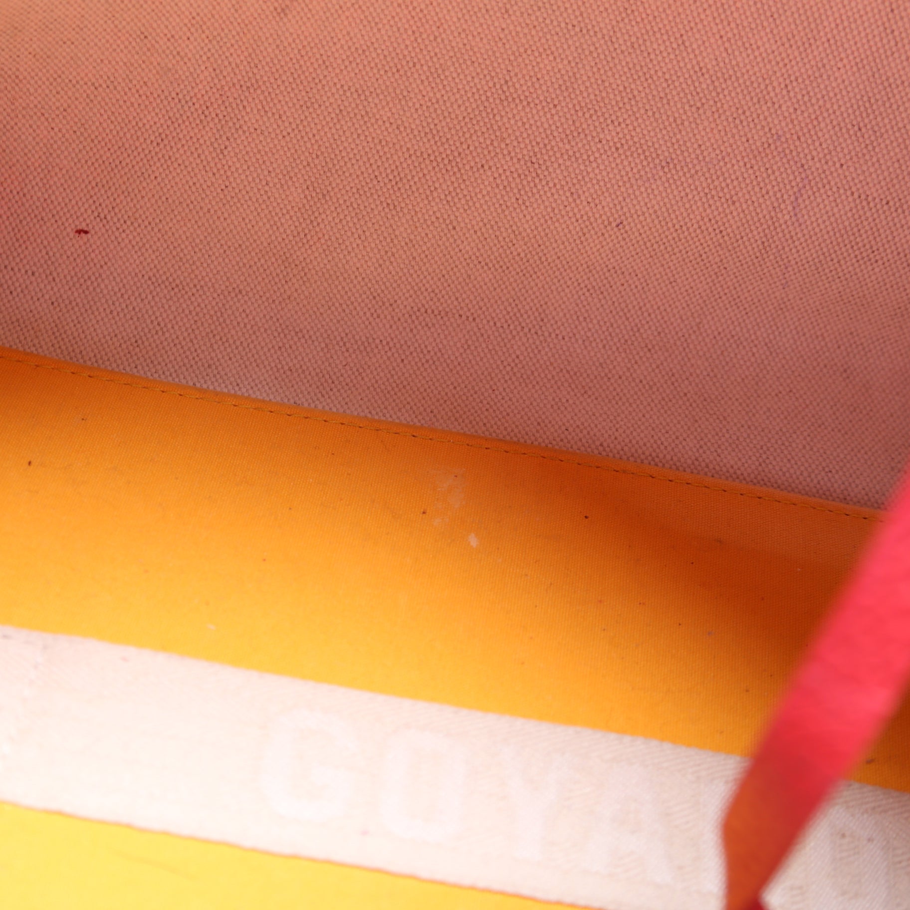 Interior: The interior is free of rips or tears. The interior features tone removable pouch. There is minimal discoloration to the interior.