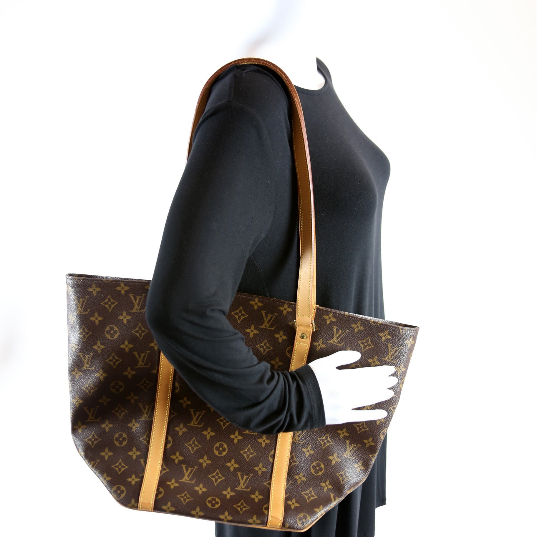 This Louis Vuitton Sac Shopping Toteis eye catching bag. The exterior is in the classic Louis Vuitton Monogram coated canvas.