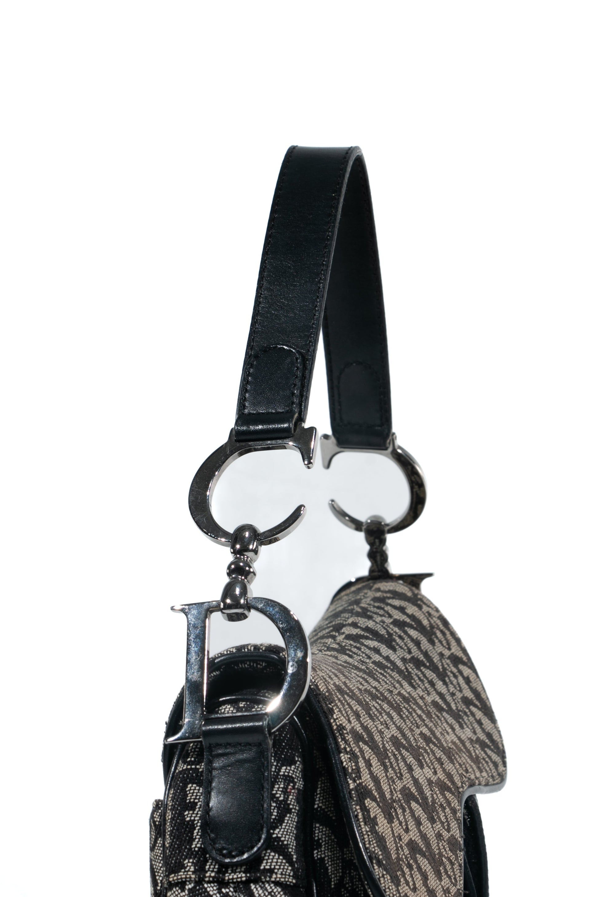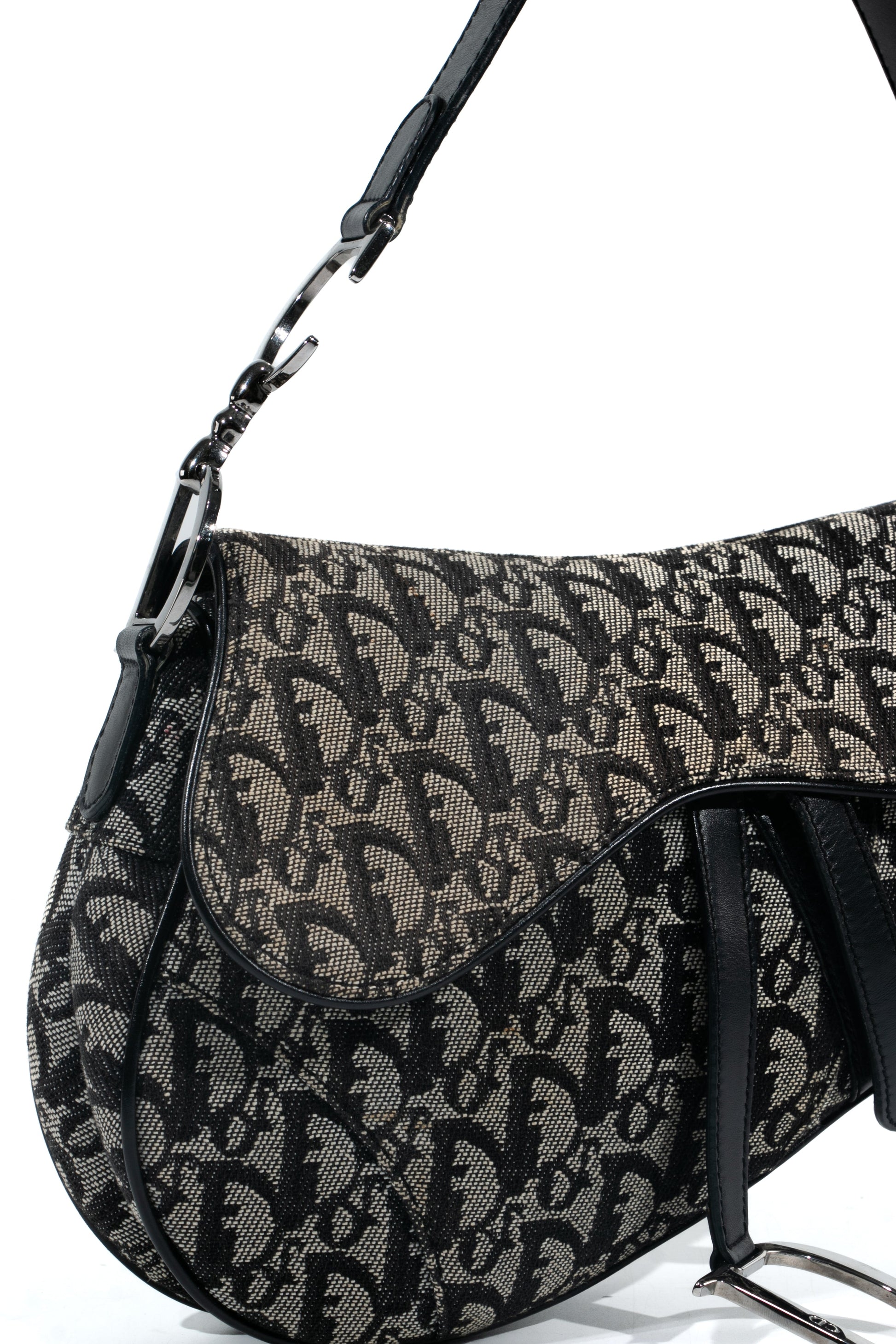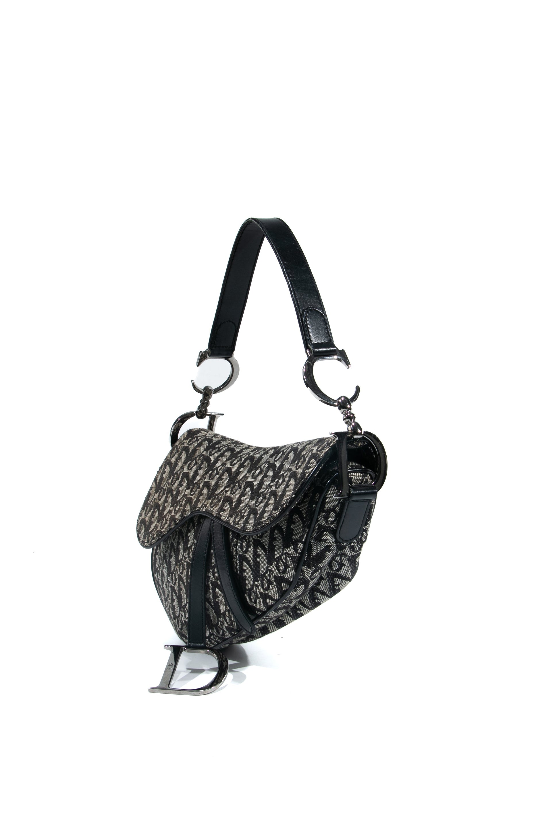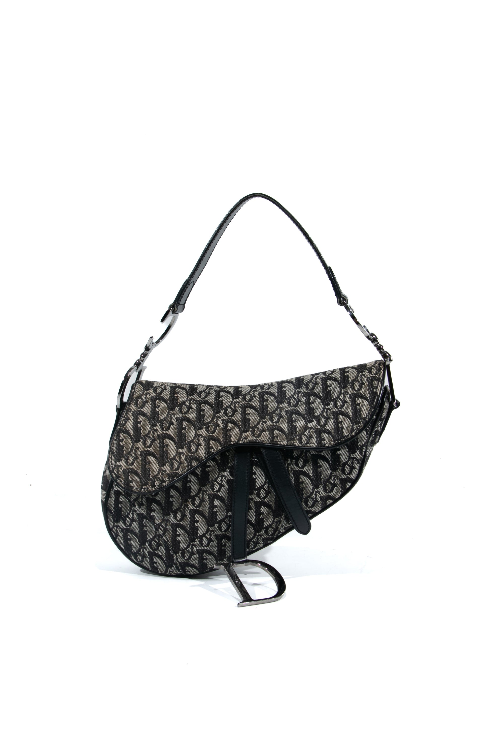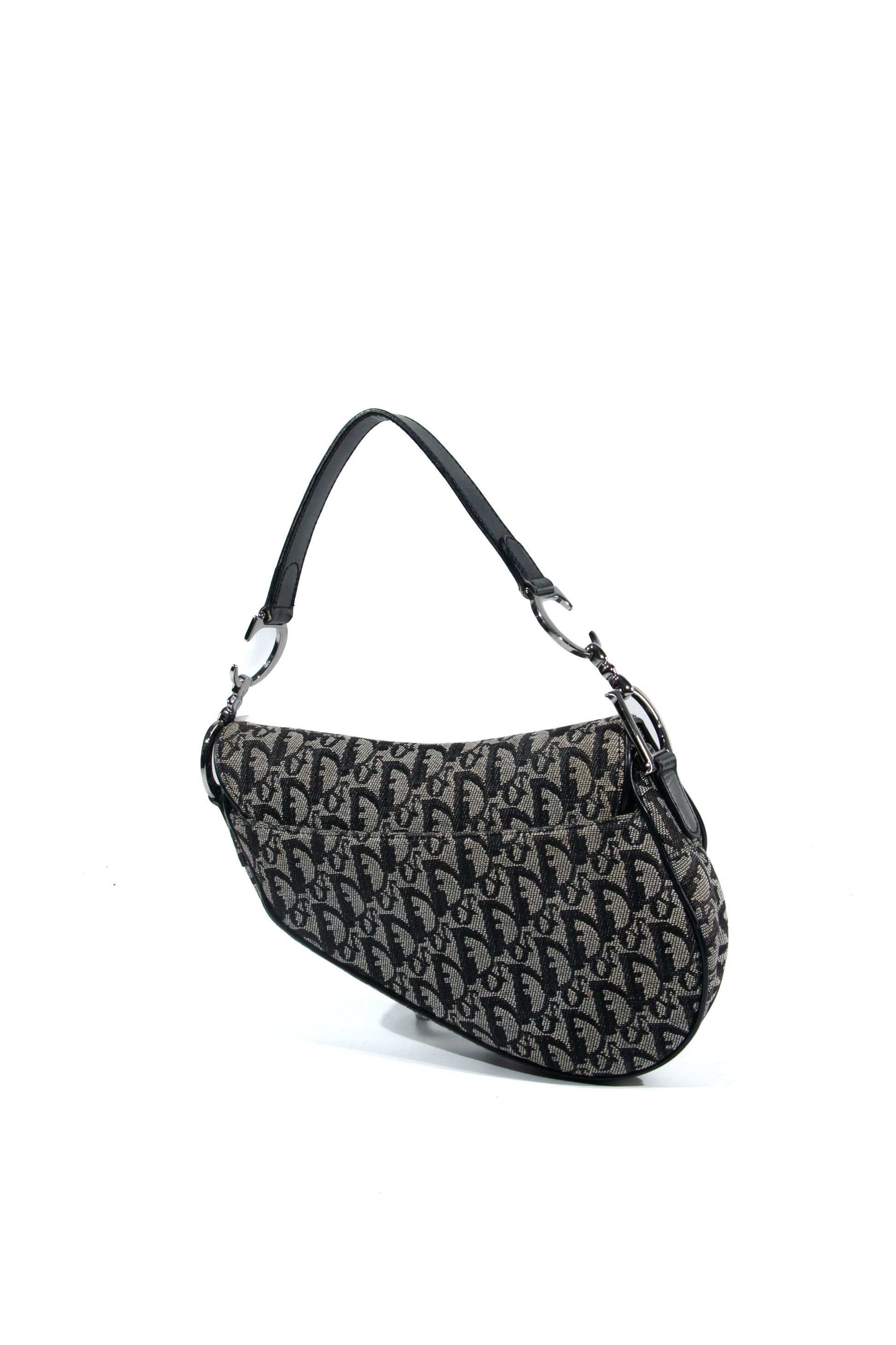 Brand: Christian Dior | Style: Saddle | Type: Shoulder bag | Color: Black | Material: Canvas | Macbook friendly: No | Height: 18 cm. Length: 23 cm. Width: 4 cm. | Condition: Very Good | SKU: 4270