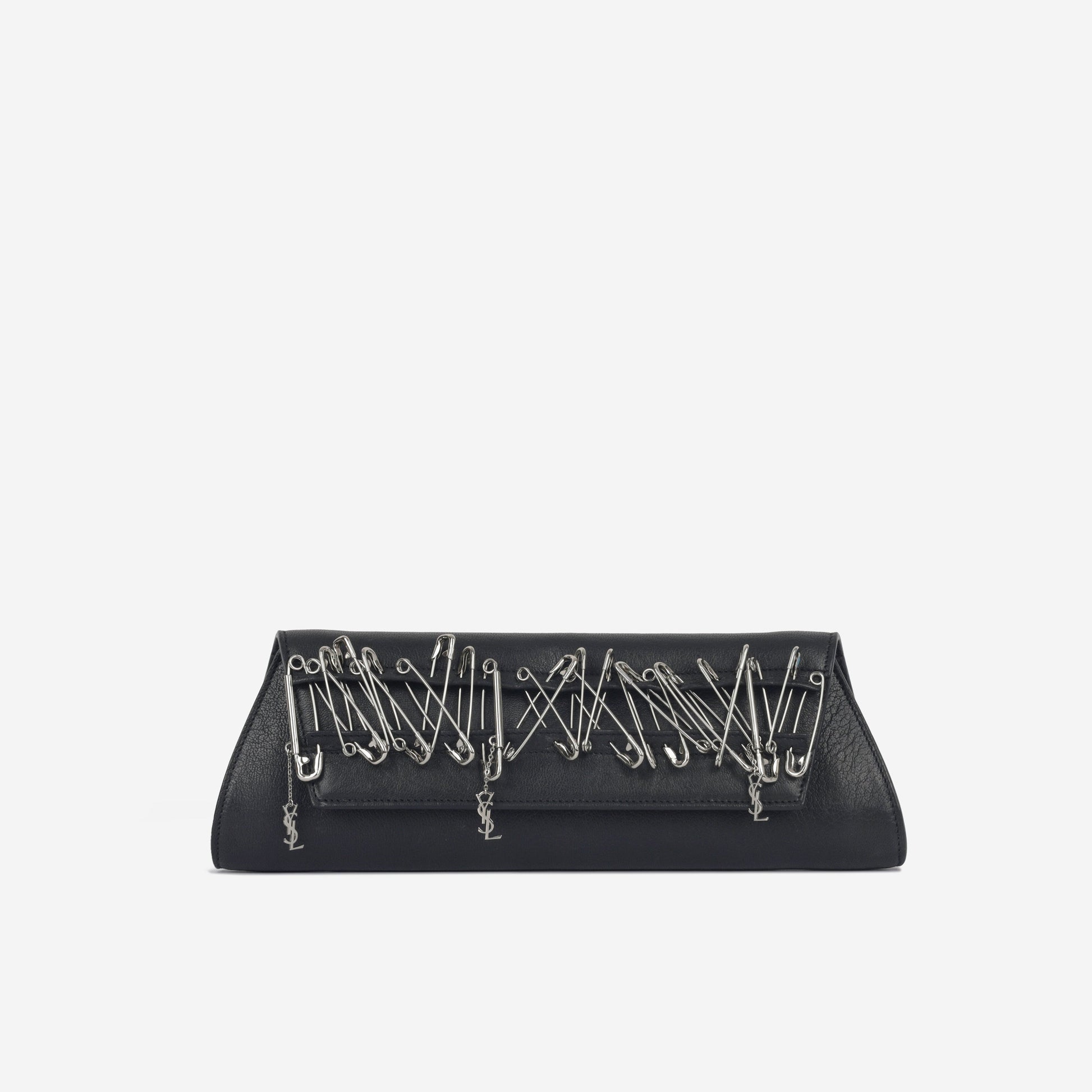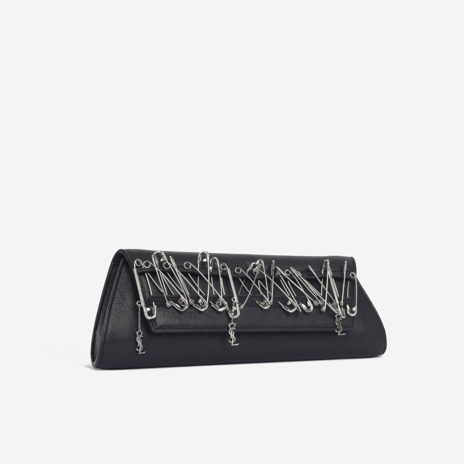 This clutch is a physical summary of Saint Laurent's aesthetic. Screaming punk, rebellion and edge, this bag is the ultimate stand out accessory to take with you to your next event. Crafted in black leather and endorsed with safety pin detail, its prominent and Carefully crafted from smooth black leather and accentuated by a prominent, gold-tone YSL logo, this adjustable belt bag is one of the coolest we’ve seen.