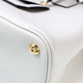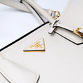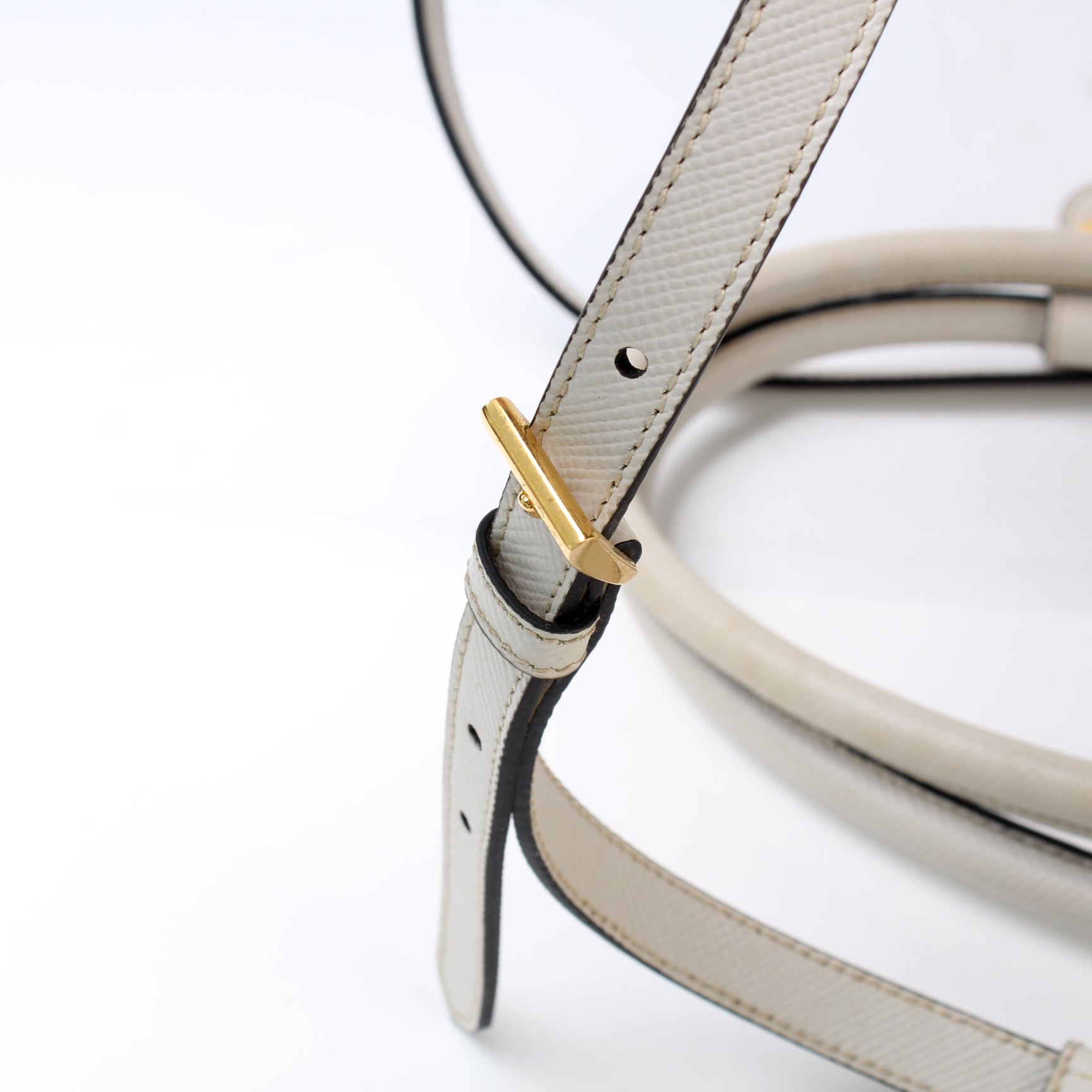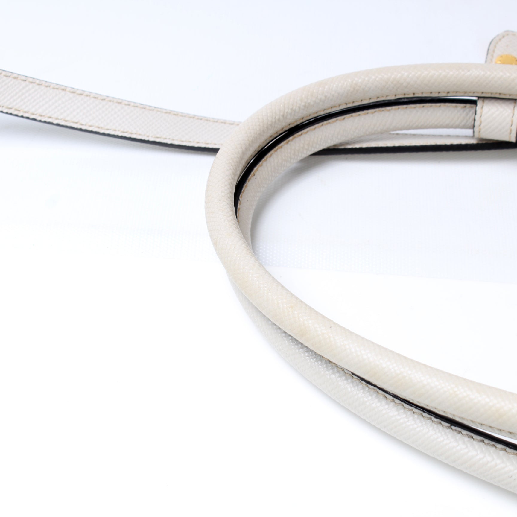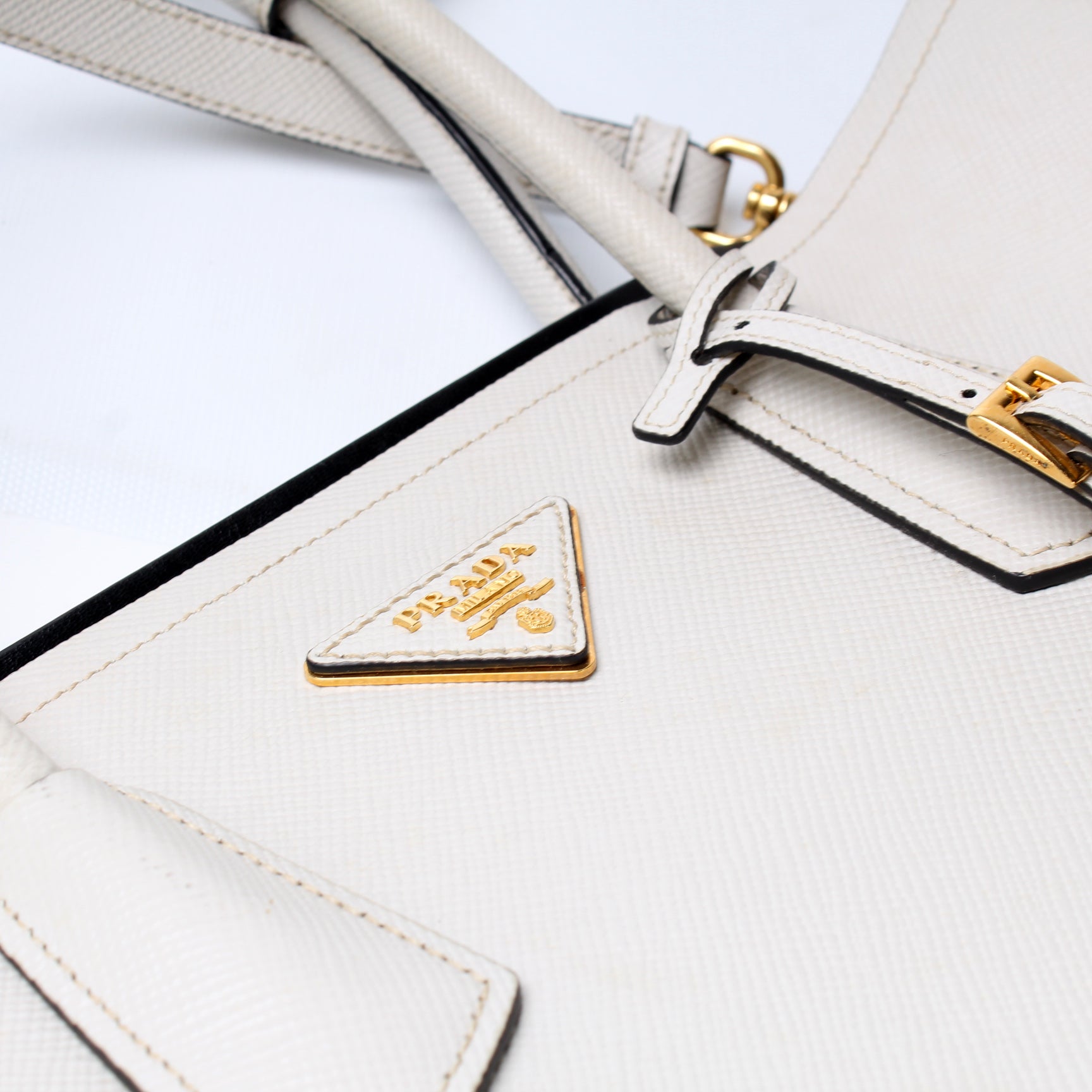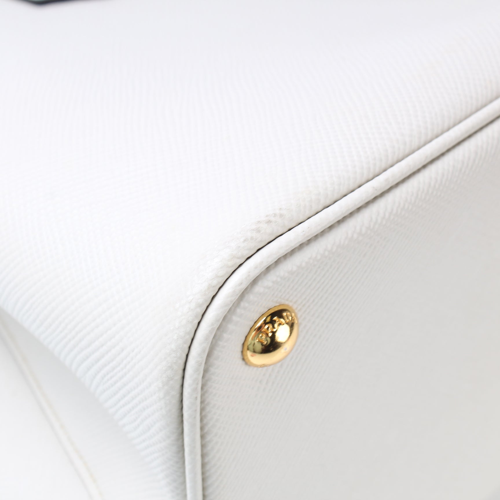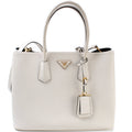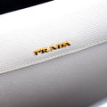 This Prada Cuir Double Mediumis eye catching bag. The exterior is in Saffiano leather.