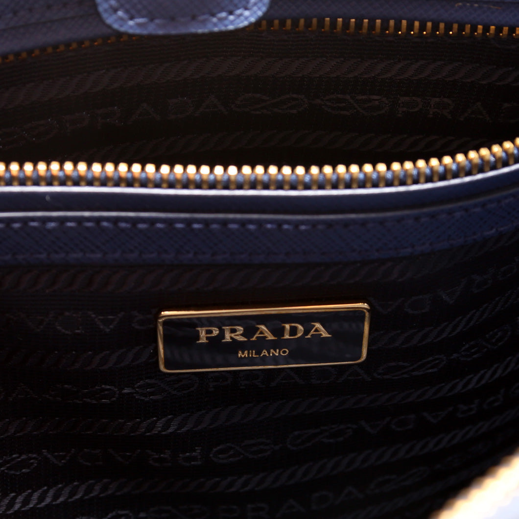 This Prada Galleria Mediumis eye catching bag. The exterior is in the classic Prada Saffiano leather.