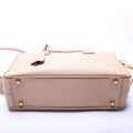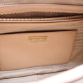 Exterior: The exterior leather shows minor wear and discoloration to the corners. The leather tabs near the strap hooks show minor discoloration from the hardware. The top of the bag is caved in from wear.