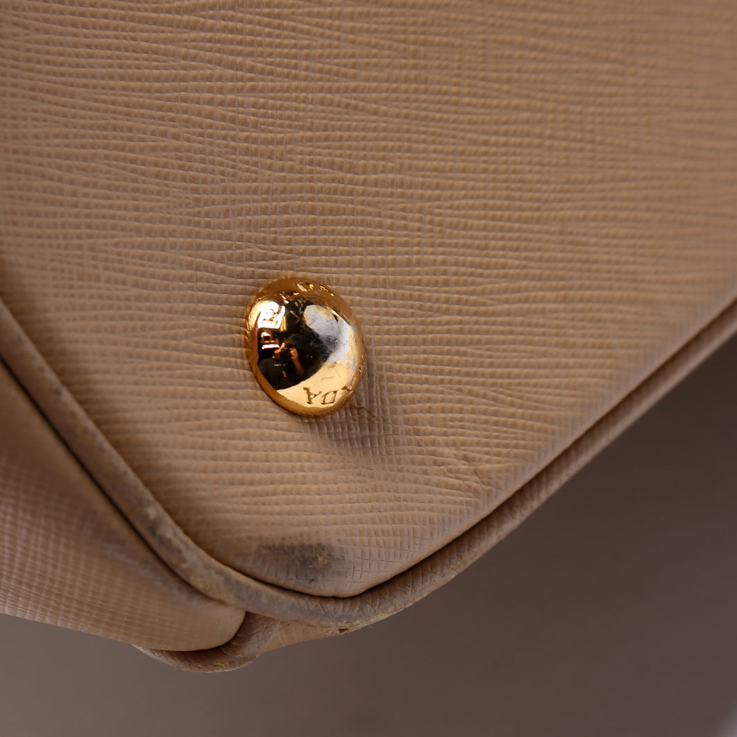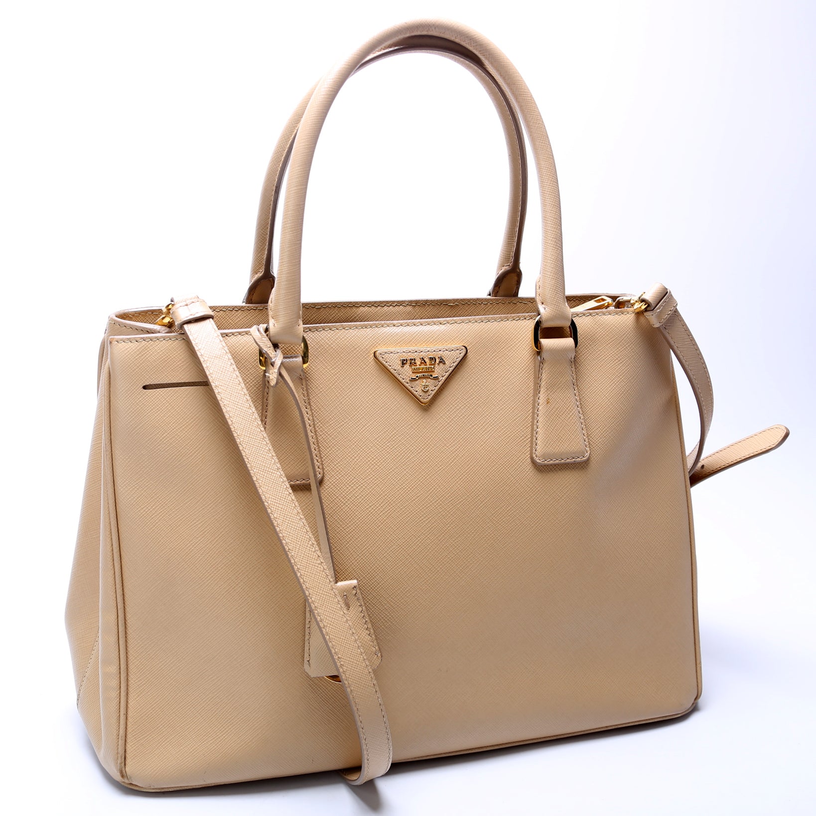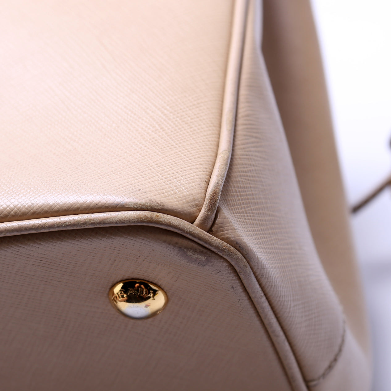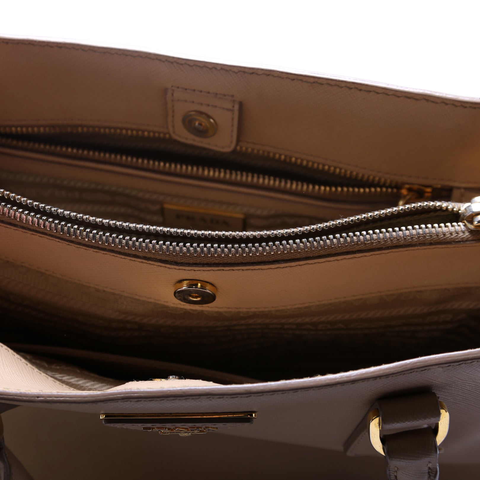 This Prada Lux Tote Mediumis eye catching bag. The exterior is in the classic Prada Saffiano leather.
