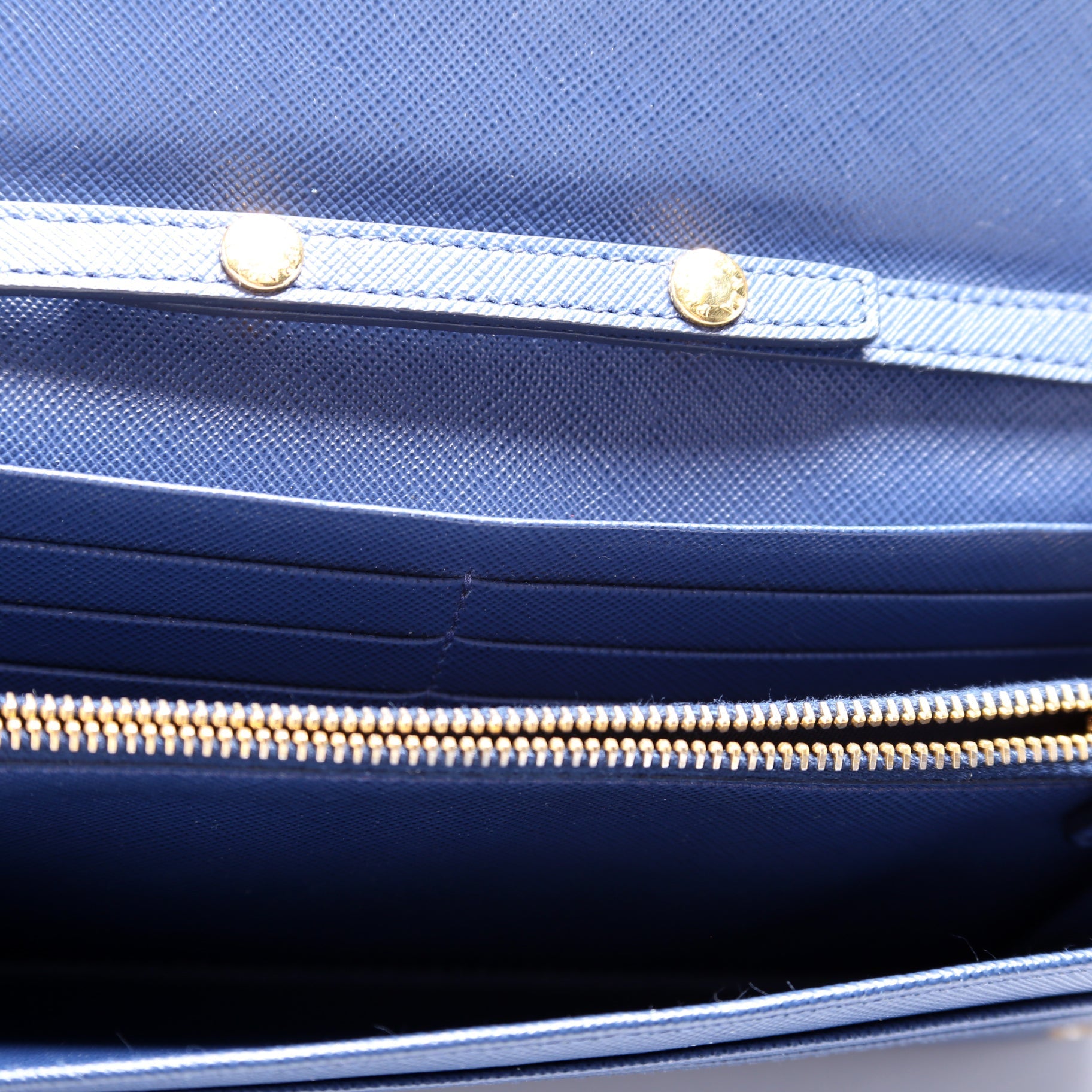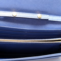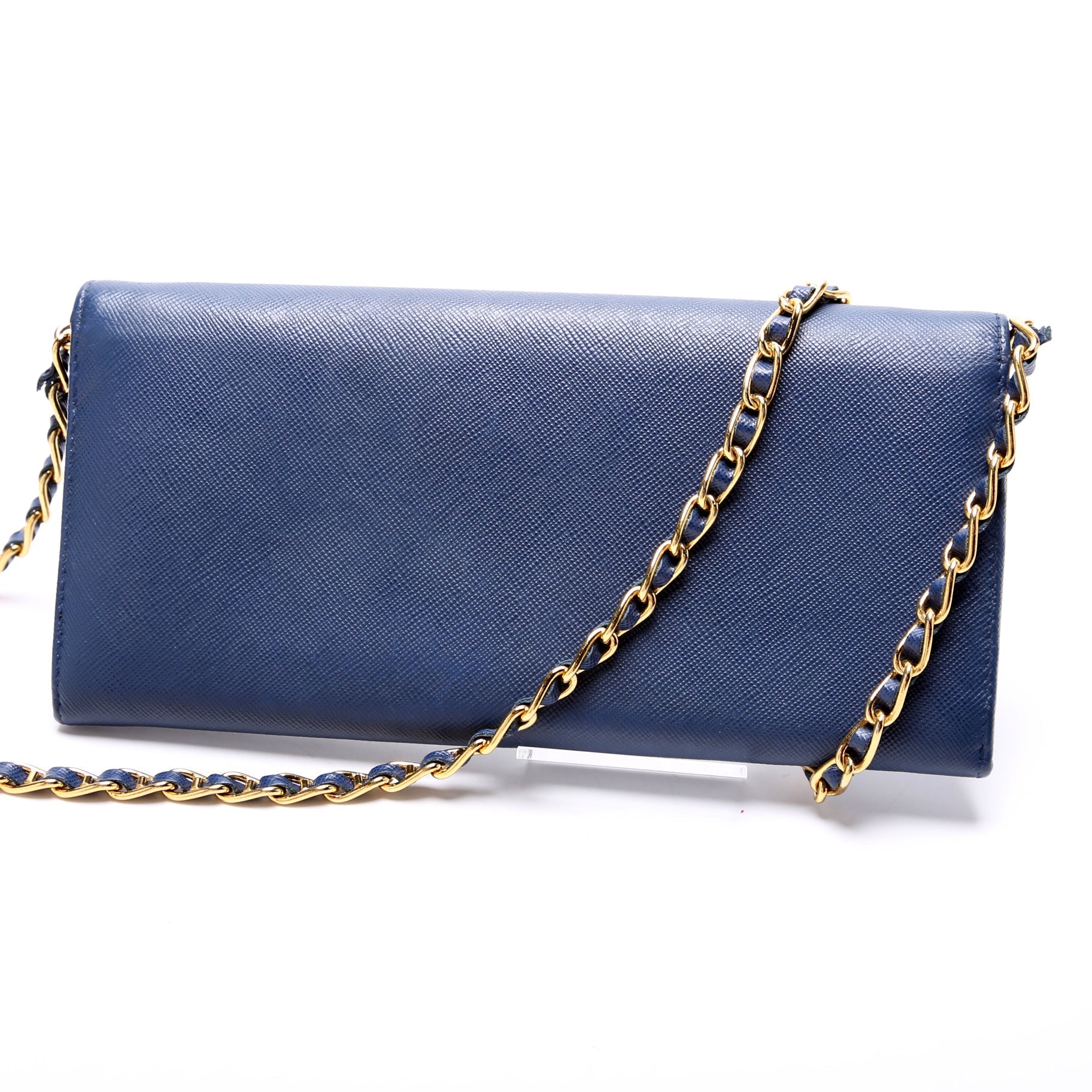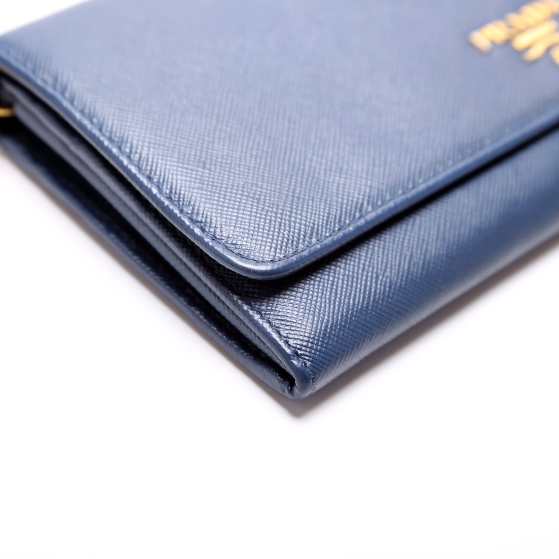 This Prada Saffiano Oro WOC is d 100% . The exterior is in the classic Prada Saffiano leather.