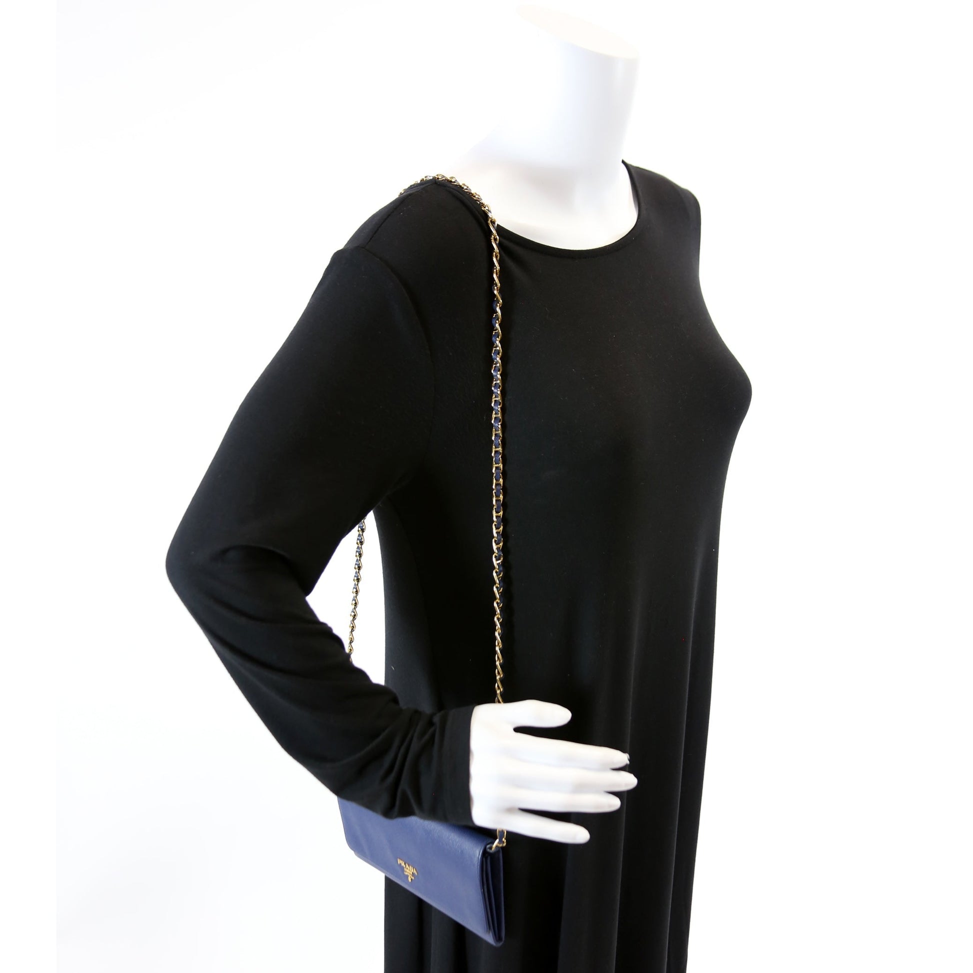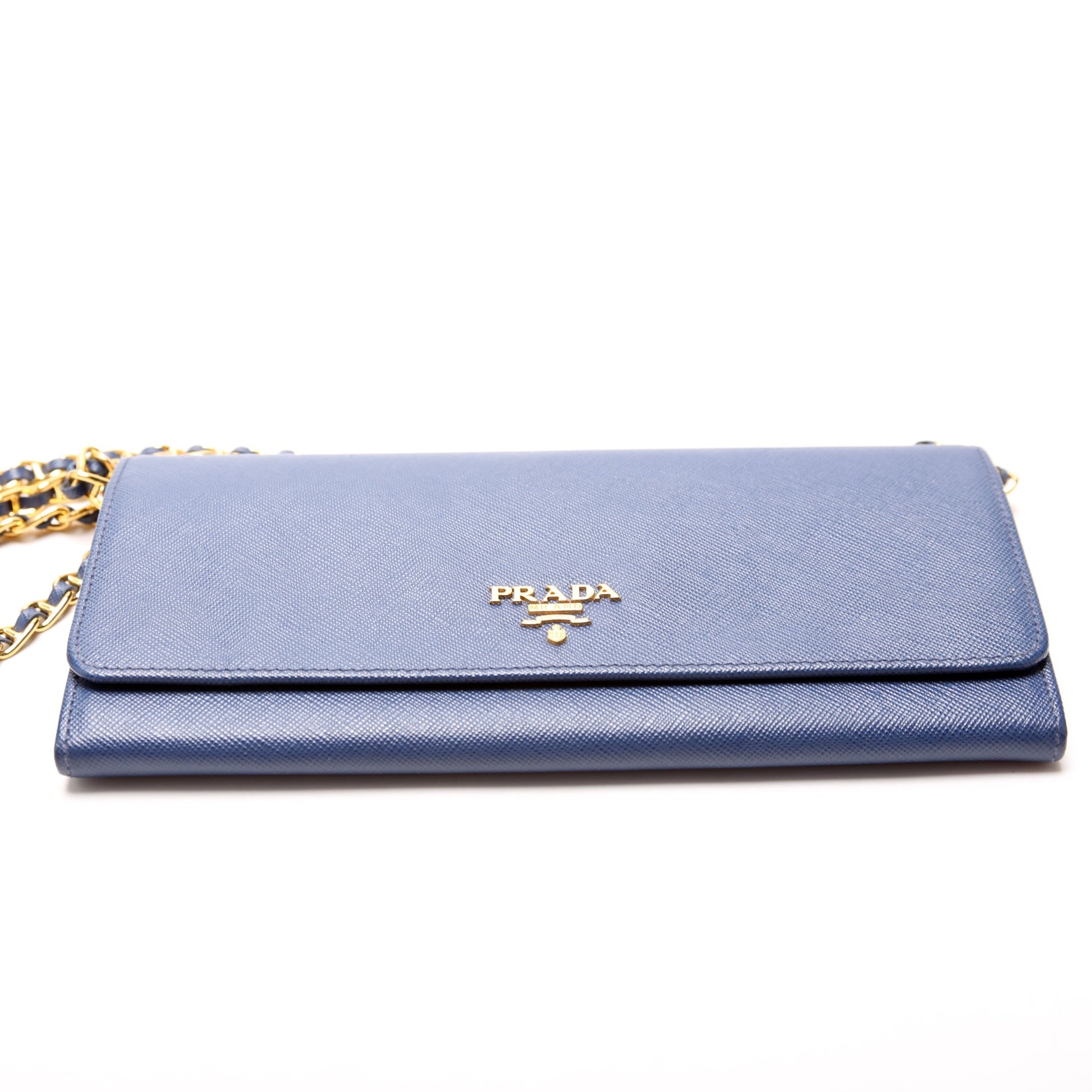 This Prada Saffiano Oro WOC is d 100% . The exterior is in the classic Prada Saffiano leather.