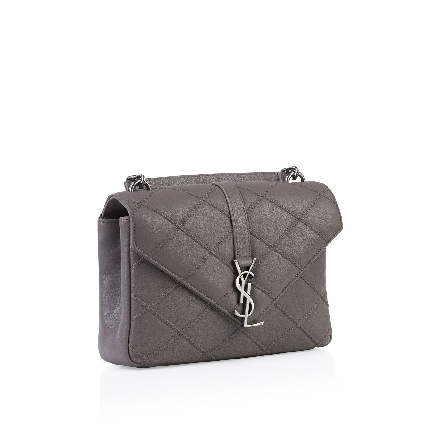- Light grey diamond-quilted leather