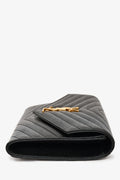 Saint Laurent 2022 Black Leather Chevron Quilted Cassandra Clutch