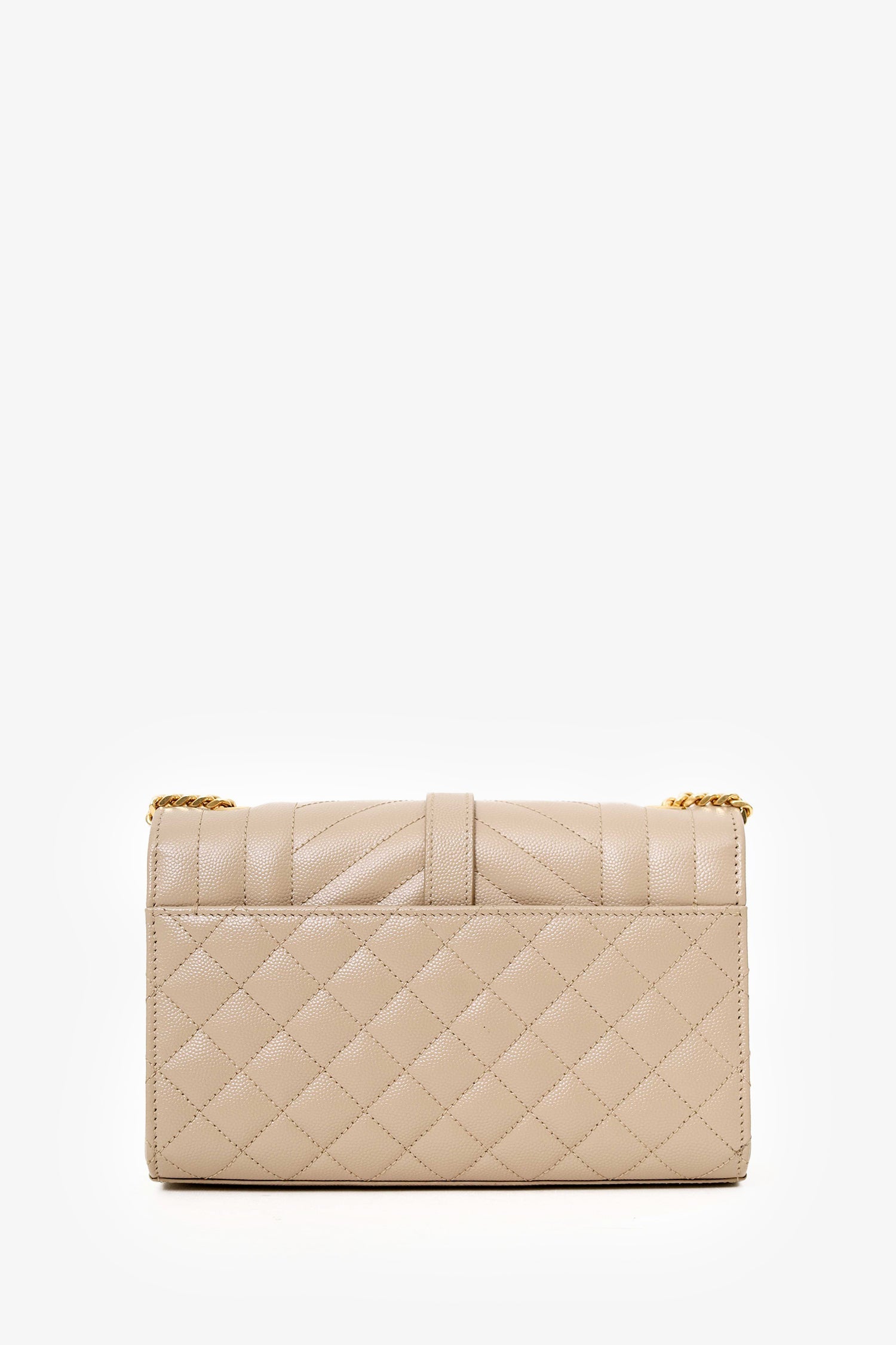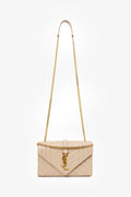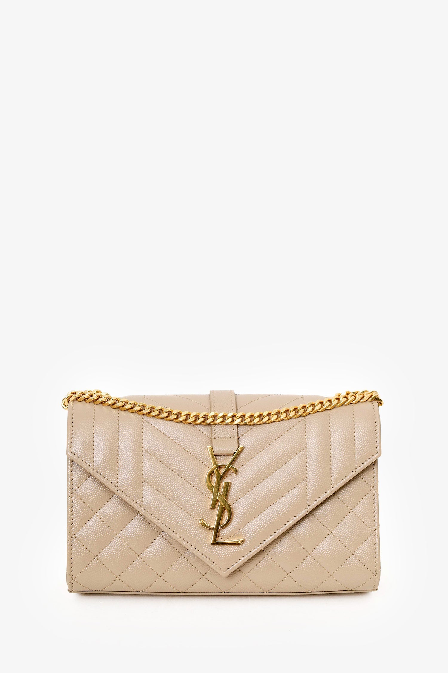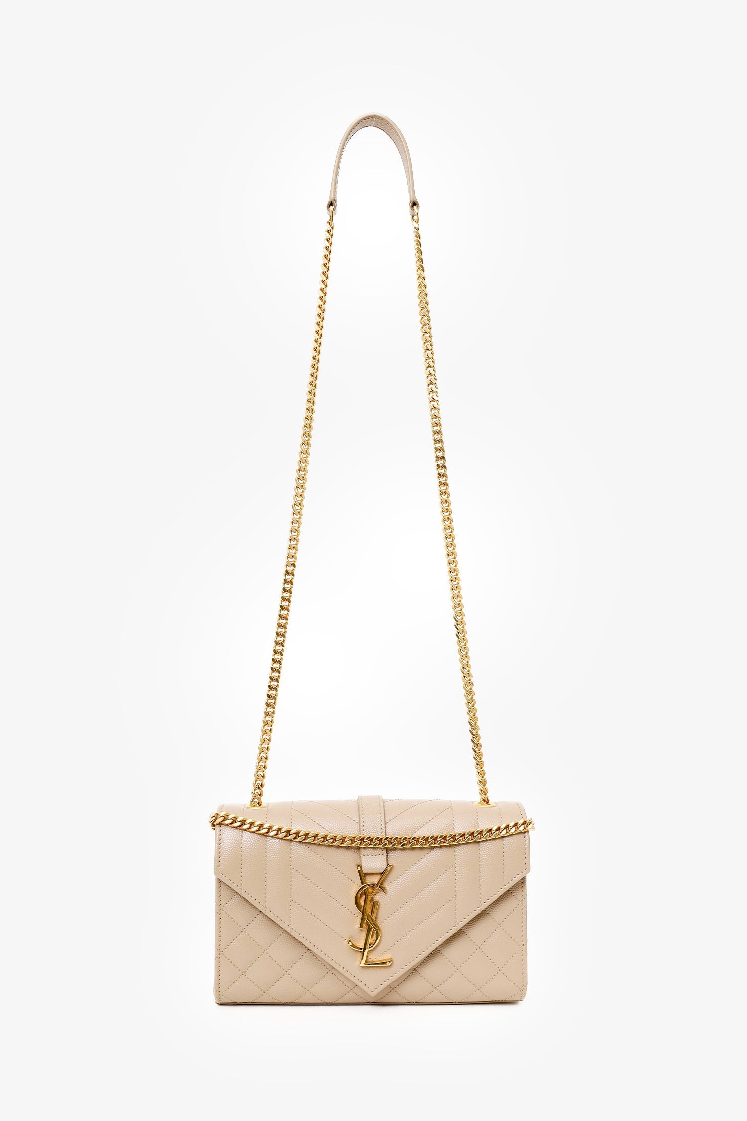 Saint Laurent Beige Grain De Poudre Embossed Leather Small Envelope Shoulder Bag