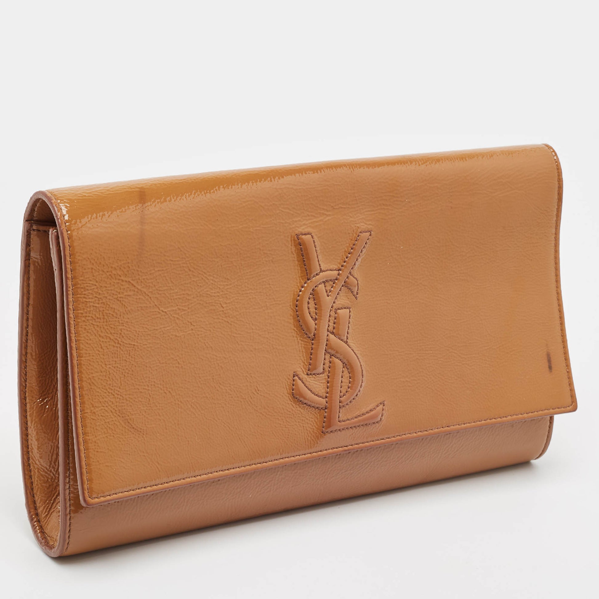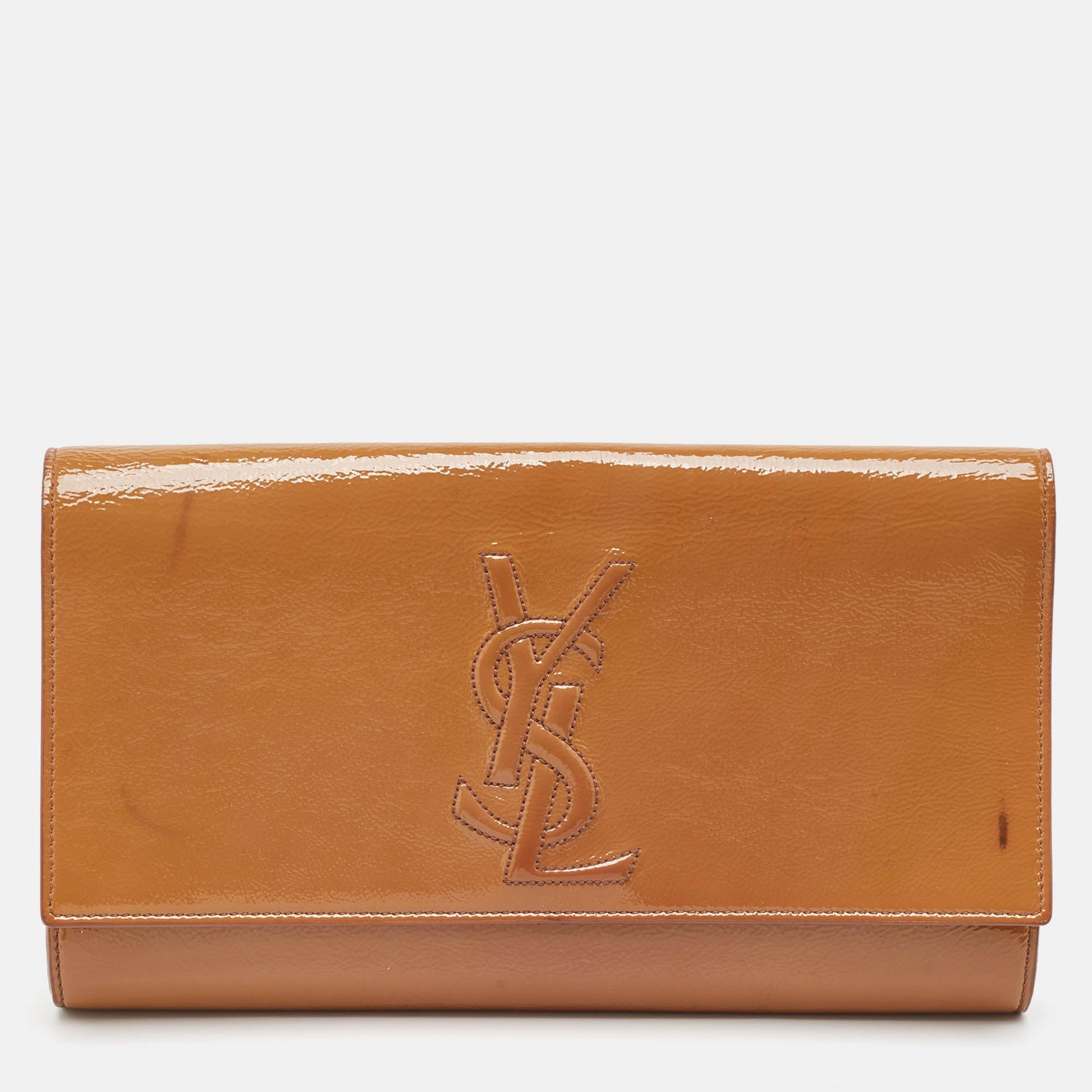 Saint Laurent Beige Patent Leather Belle De Jour Clutch