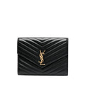 black leather matelassé effect gold-tone logo plaque foldover top with press-stud fastening main compartment internal slip pocket