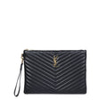 black leather signature YSL logo plaque quilted gold-tone hardware top zip fastening detachable wrist strap