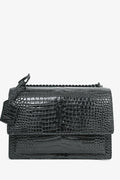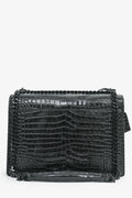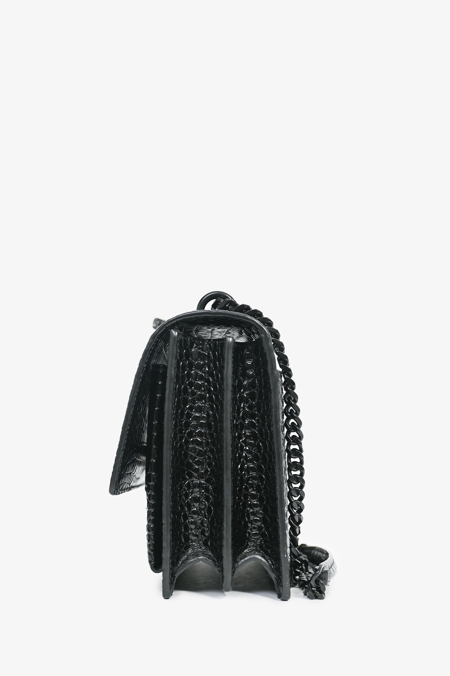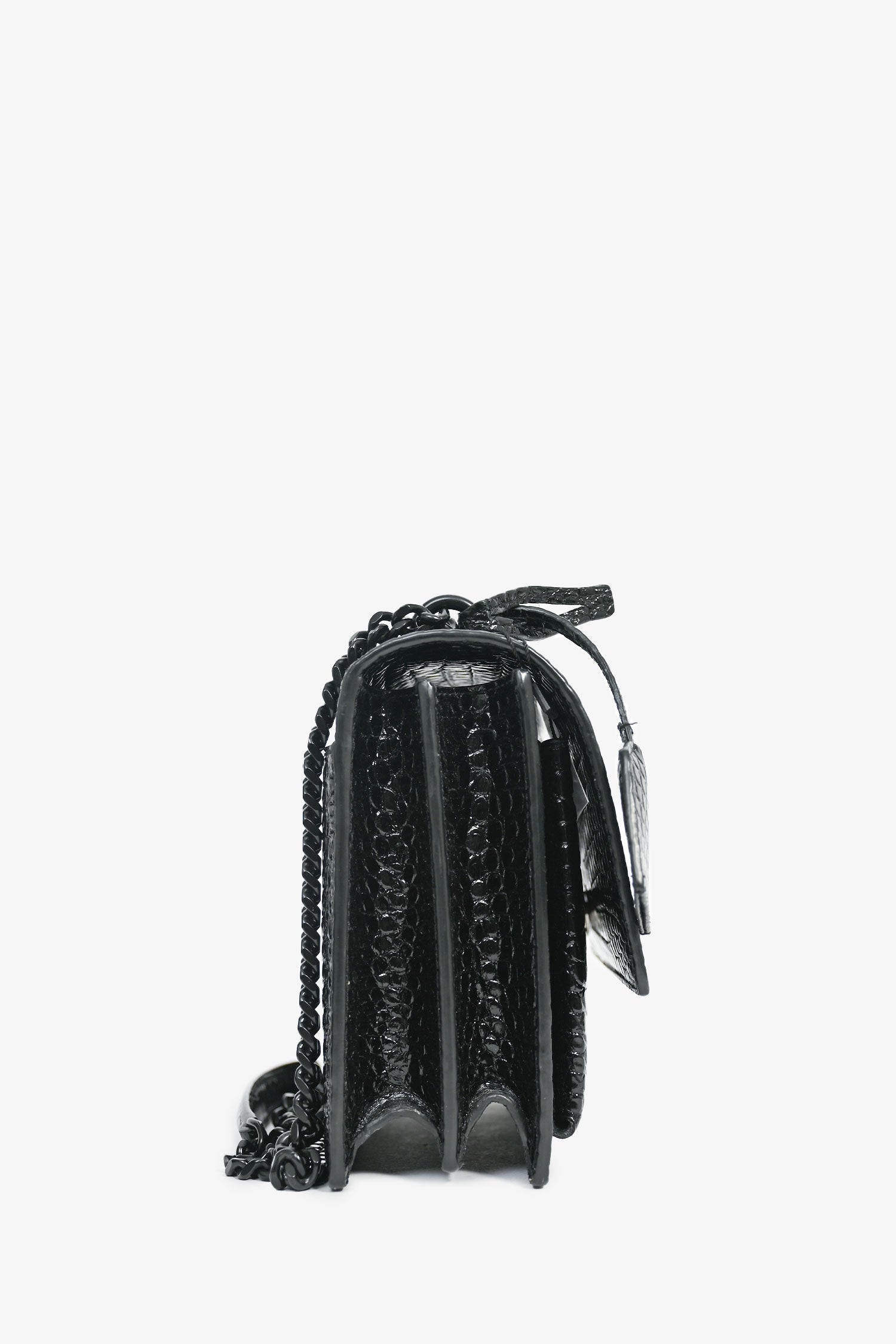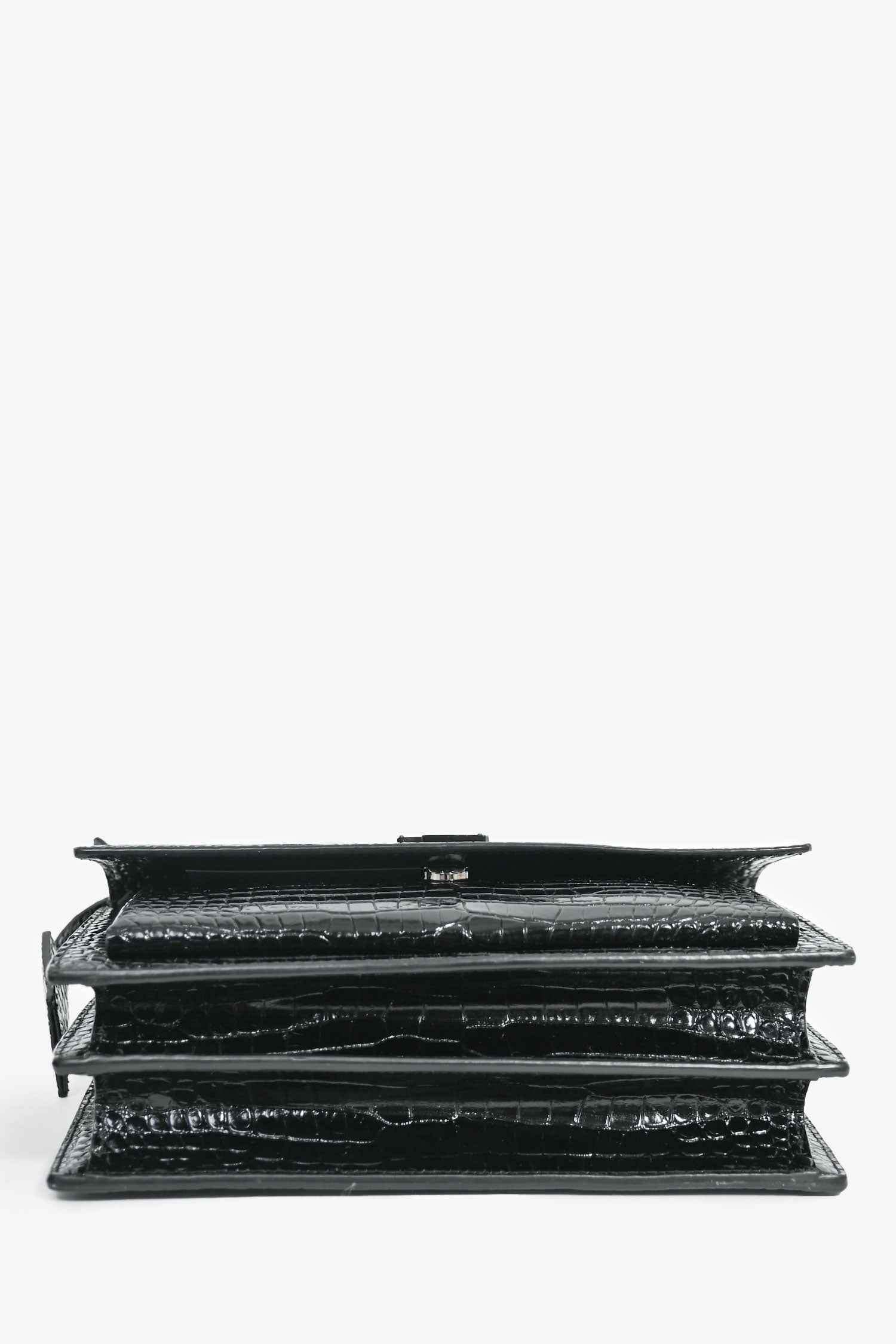 Saint Laurent Black Croc Embossed Sunset Medium Chain Shoulder Bag
