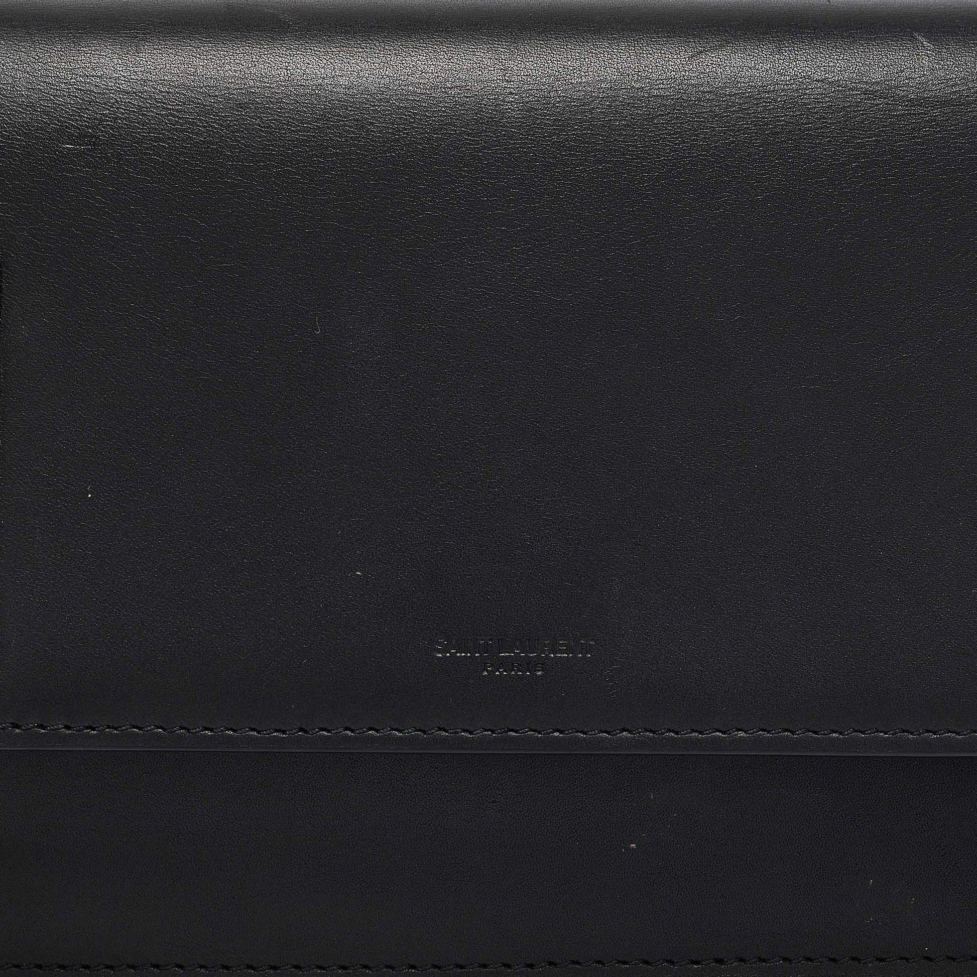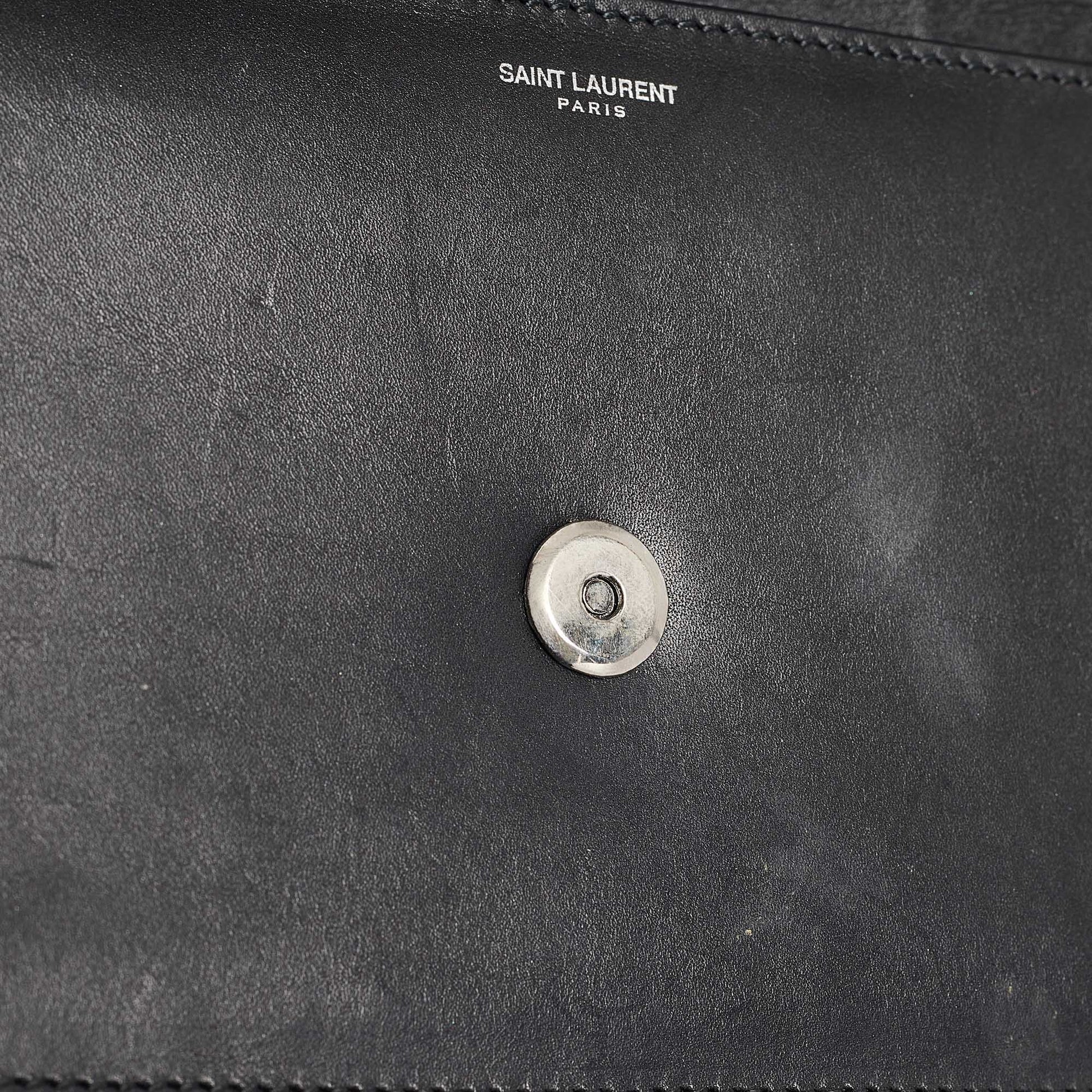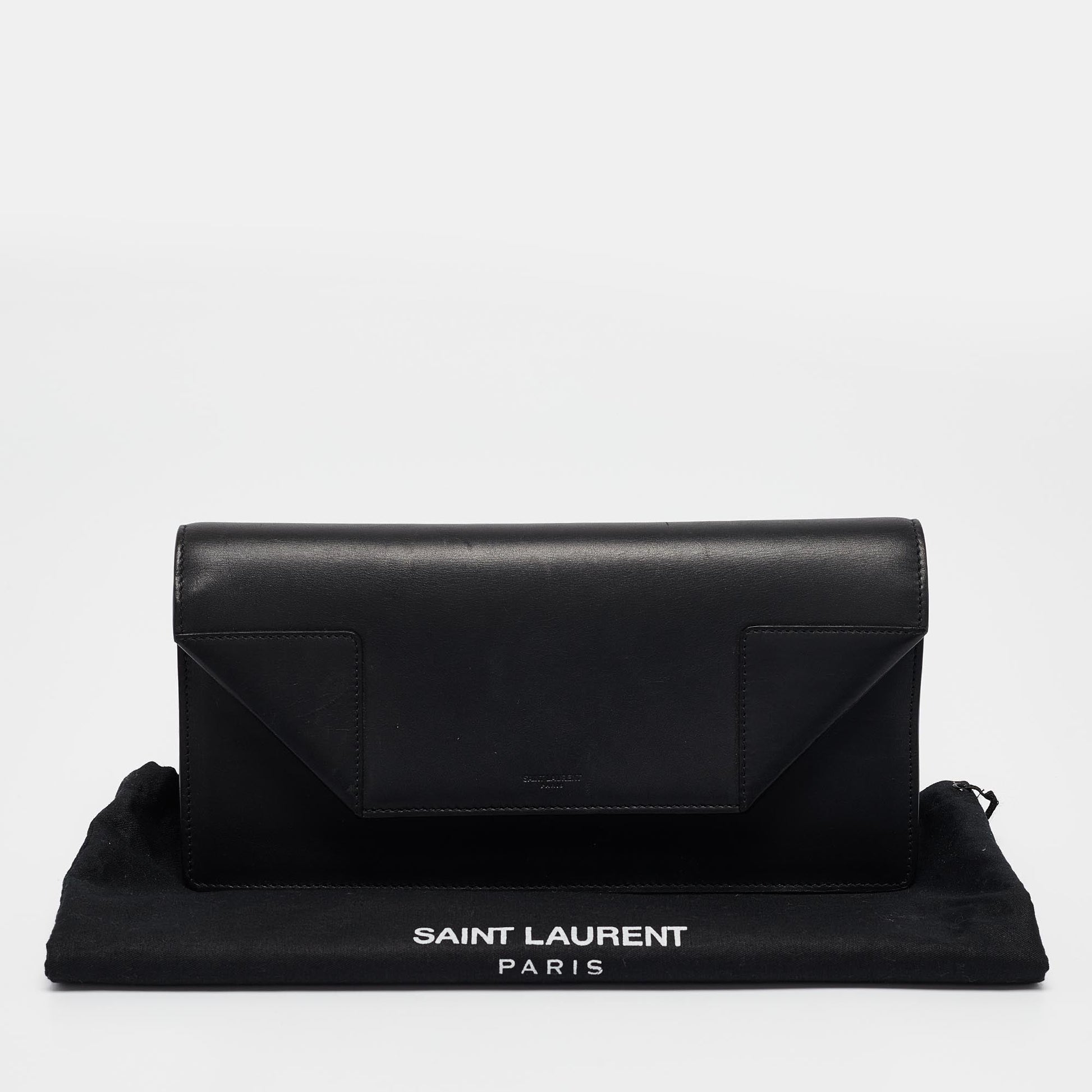 When style meets panache this is what is created. Feel the magic of Saint Laurent design by this lovely betty clutch from the brand. It has an easy snap button with folded outline highlighting the brand logo in the center. The interior houses manifold card slots one big zip pocket and a wide open pocket each capable of adjusting al your cash bills and cards in a systematic manner.