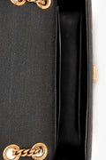 Saint Laurent Black Quilted Fabric 'Jamie' Shoulder Bag. Gold-tone hardware. Fold-over flap with a turn-lock closure on the logo. Quilted, jersey fabric. Lined leather interior with a single card slot. Chain-link shoulder strap. Tonal stitching.