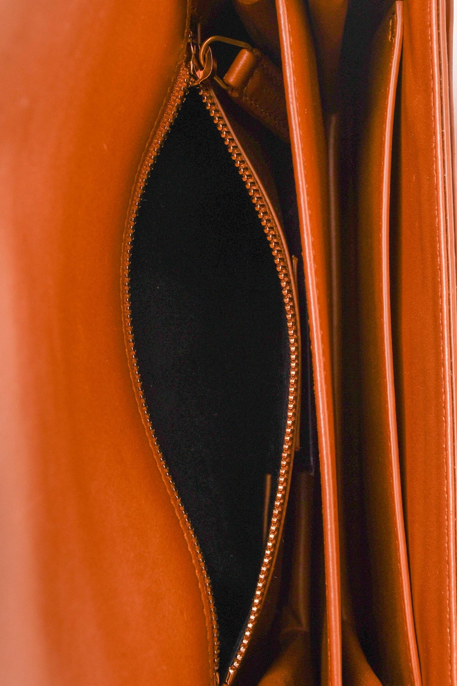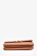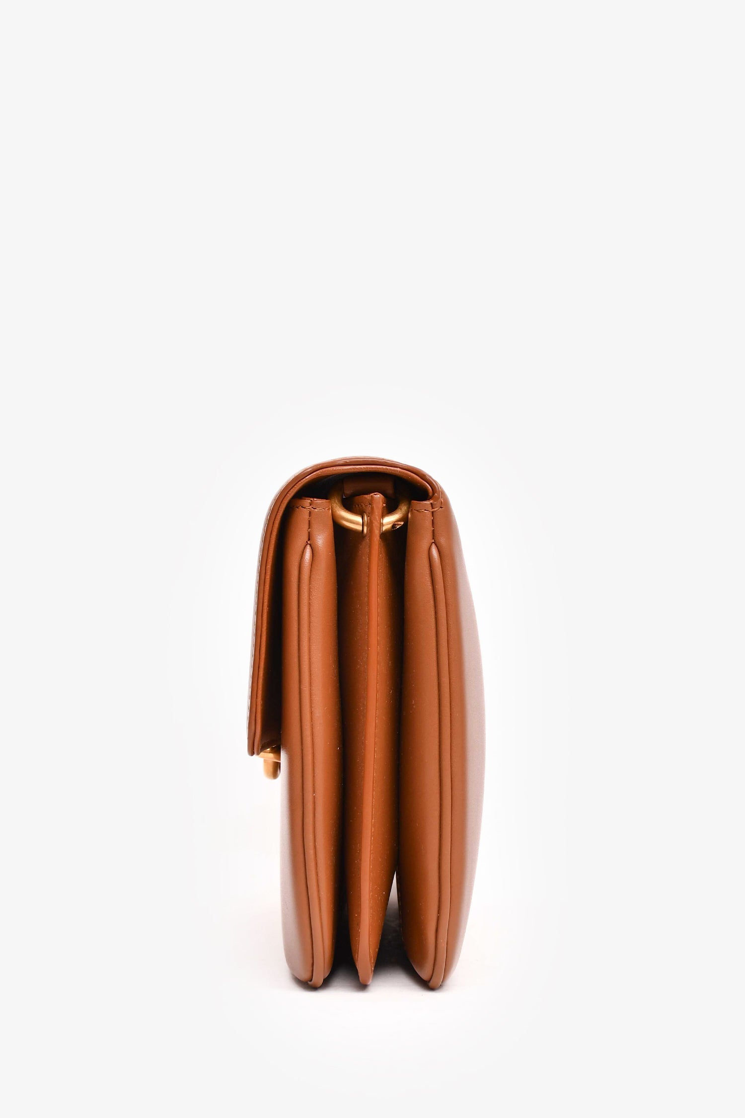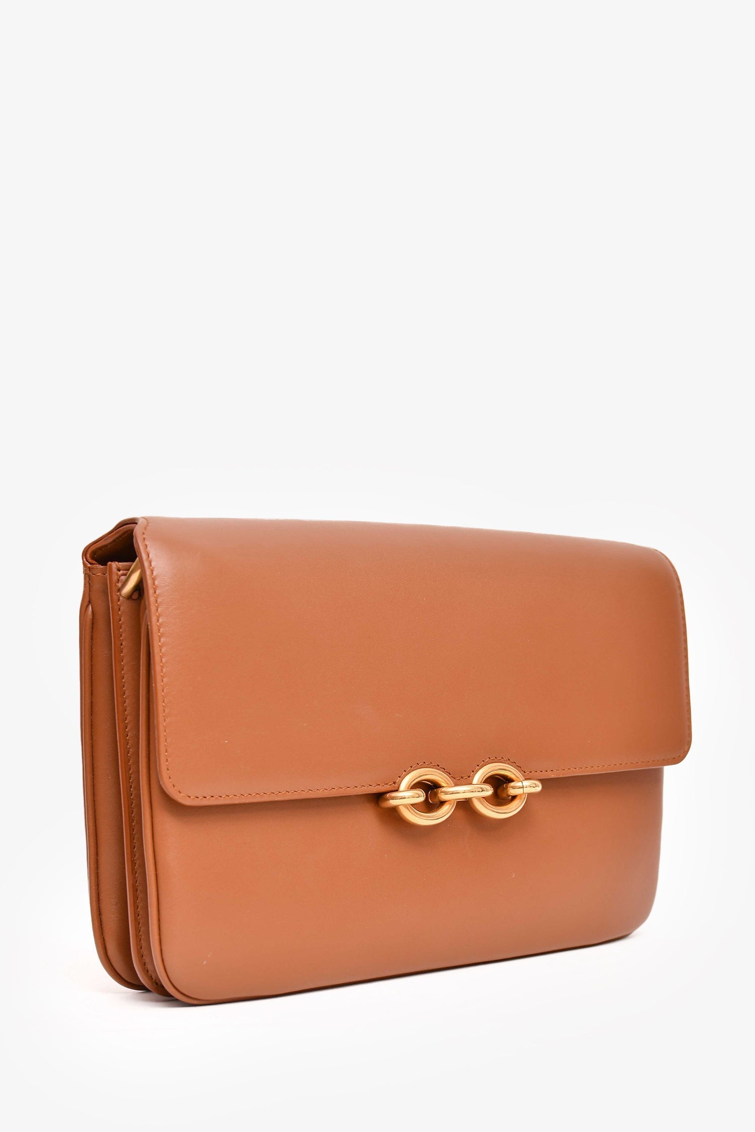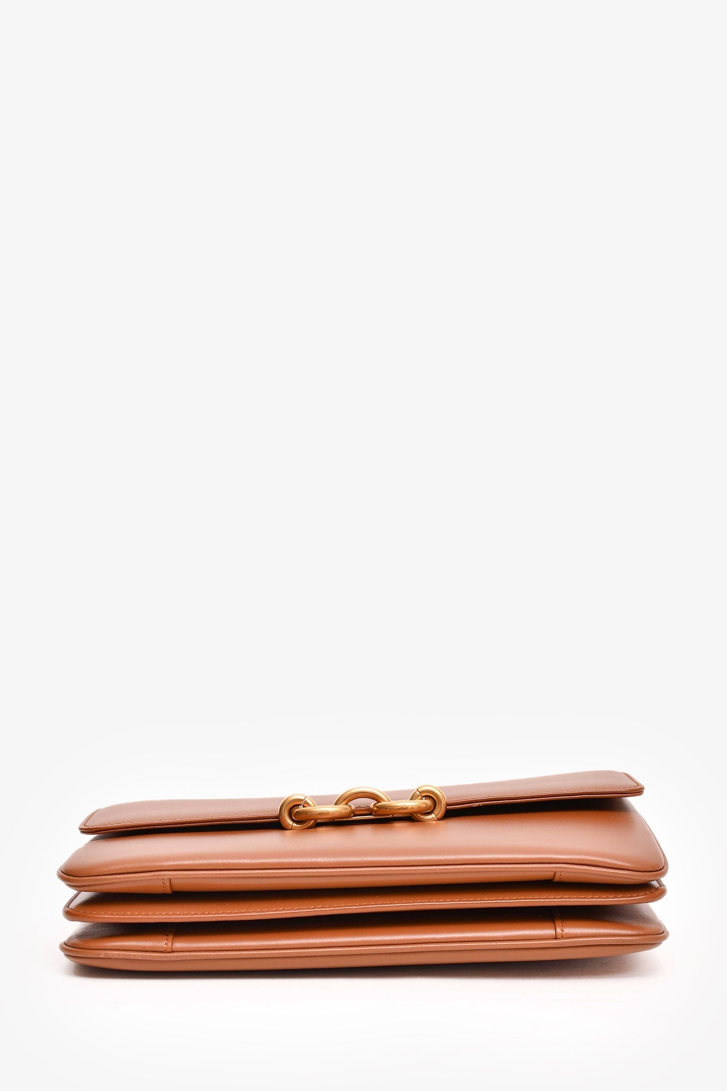 Saint Laurent Brown Leather 'Le Maillon' Shoulder Bag. Three interior compartments. Two interior pockets, one with a zipper. Top flap with click closure. Gold-tone hardware. Tonal stitching.