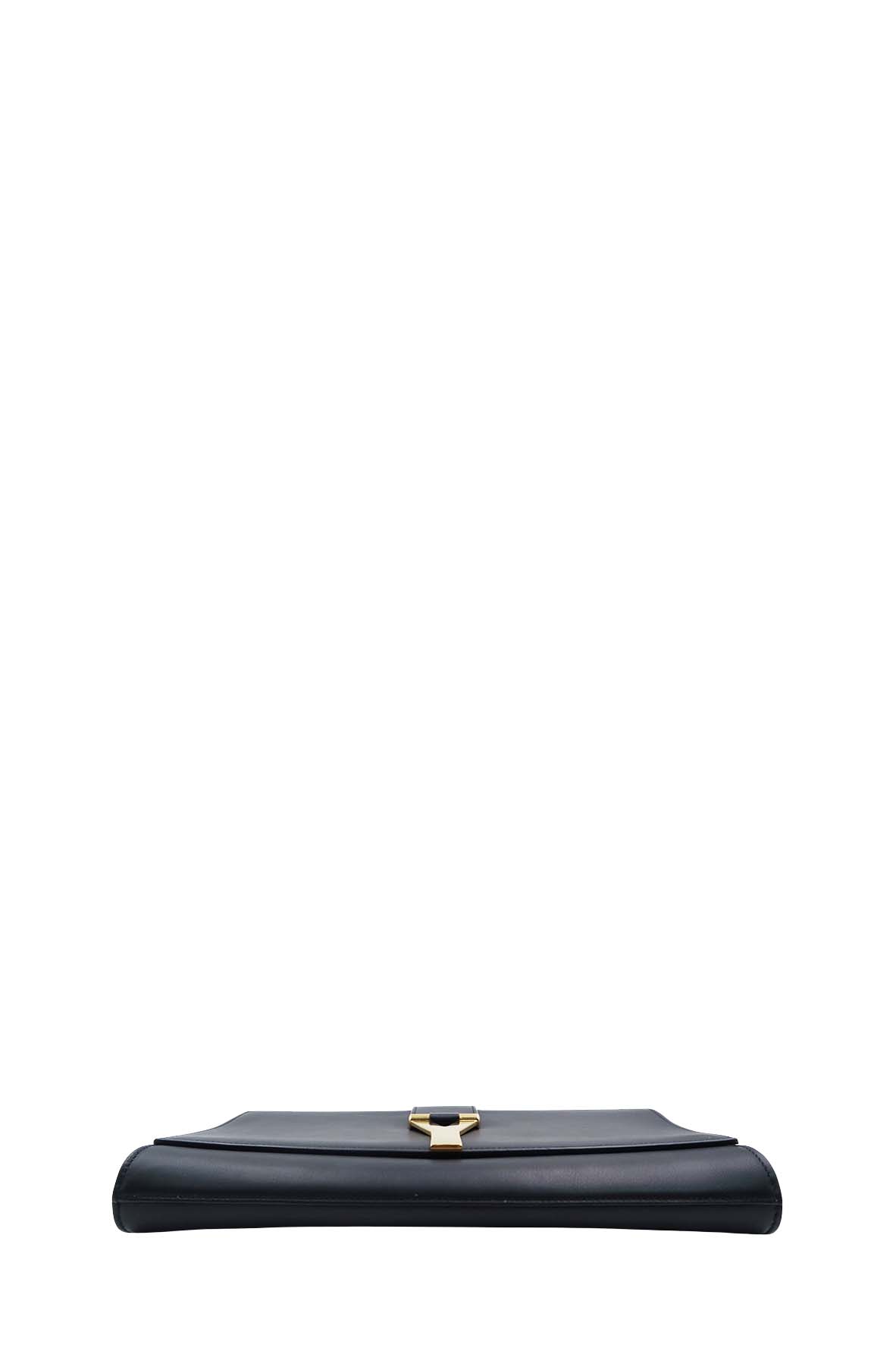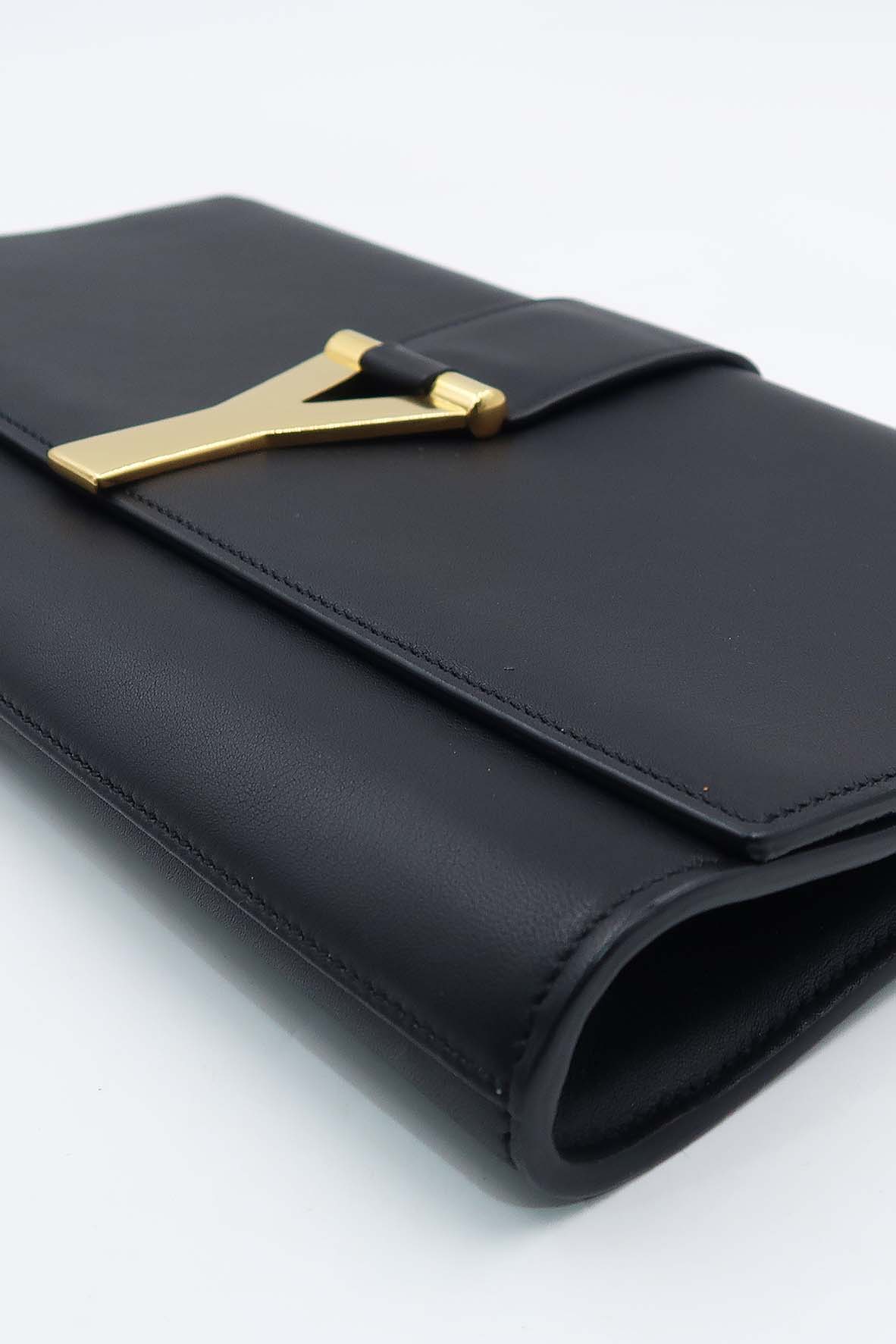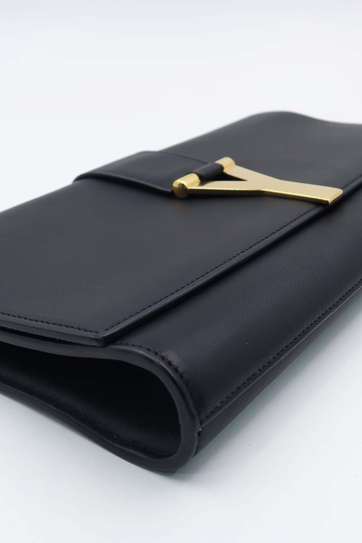 Yves Saint Laurent's 'Chyc' leather clutch is a glamorous take on this season's essential accessory. Polished logo-initial ornament is discreetly incorporated into the design of a sophisticated envelope clutch fashioned from finely textured leather. Stamped with a signature 'Y' detail.