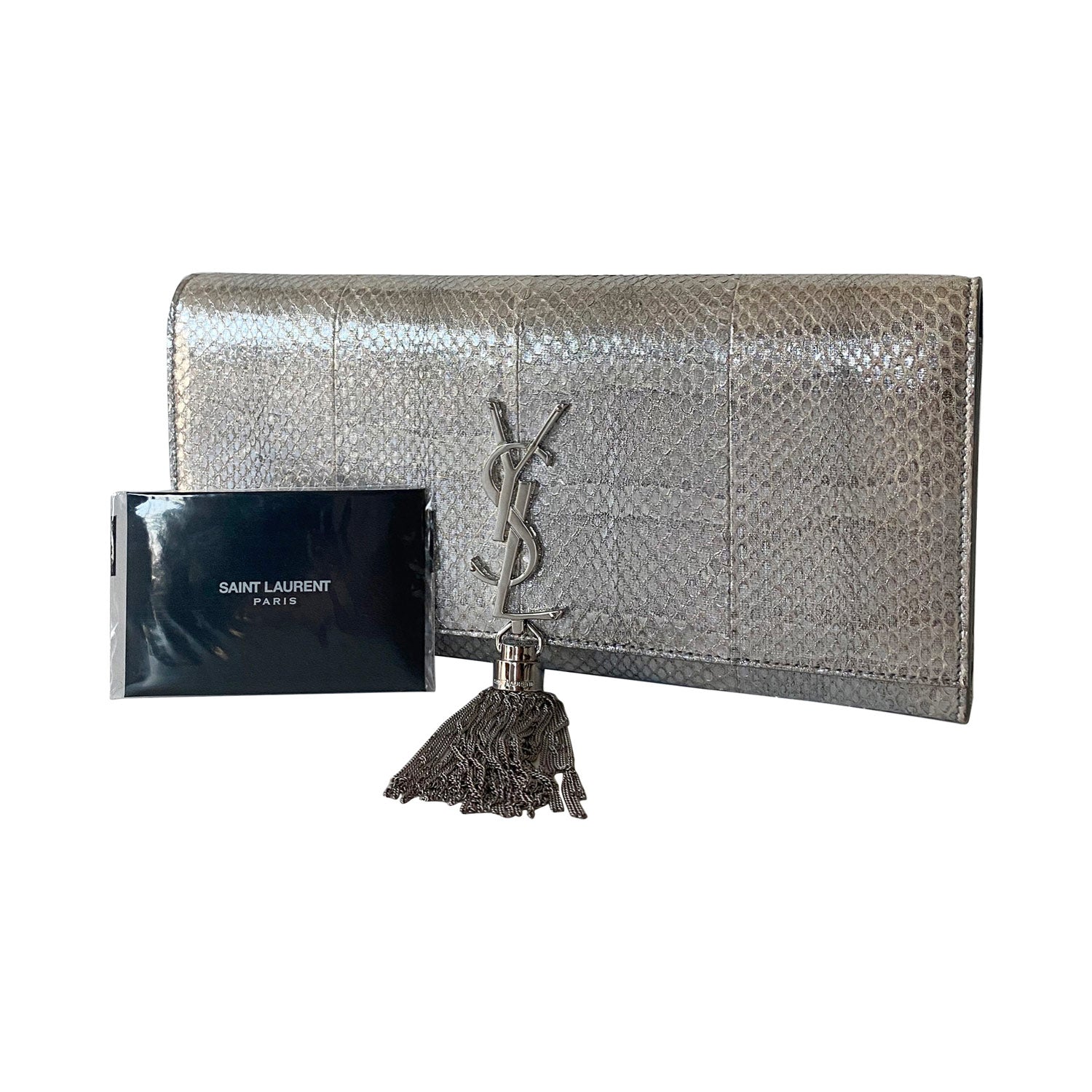 Description: Pre-Owned Saint Laurent Classic Snake Skin Monogram Kate Clutch