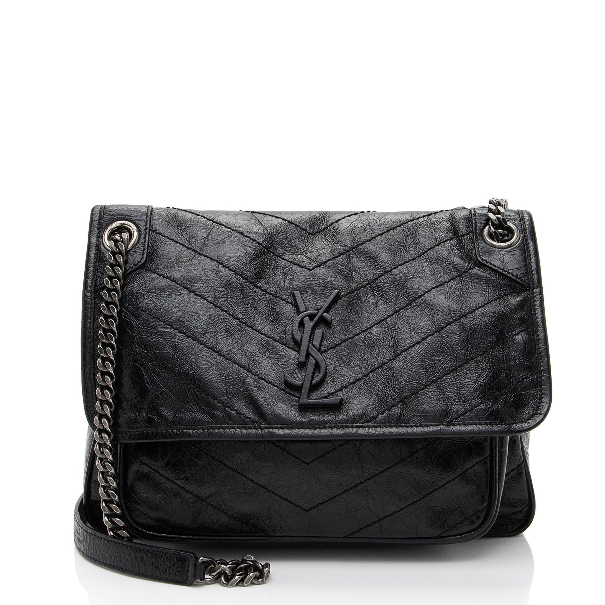 Saint Laurent Crinkled Calfskin Monogram Niki Medium Shoulder Bag (SHF-6JCA4U)
