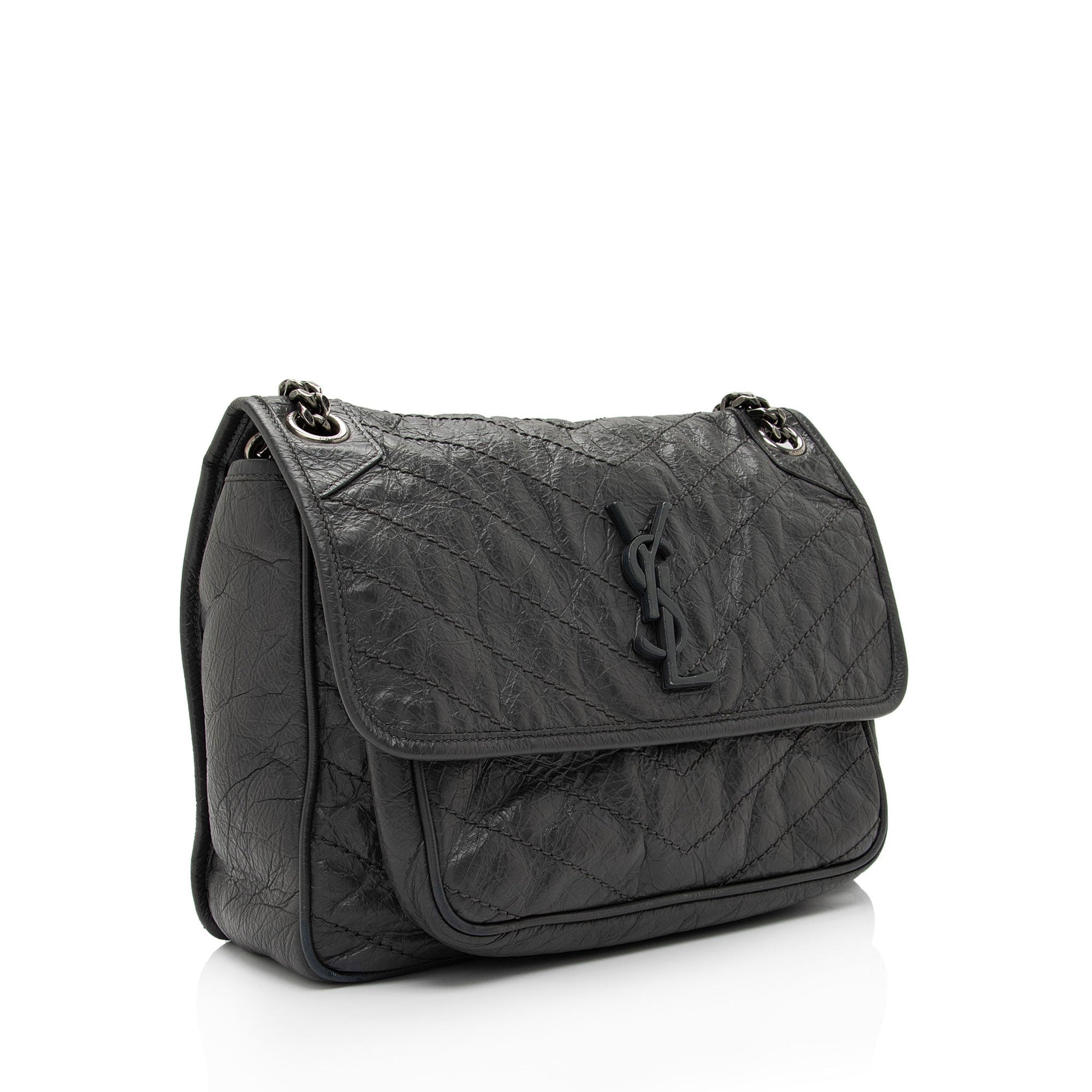 Saint Laurent Crinkled Calfskin Monogram Niki Medium Shoulder Bag (SHF-J4S3bV)
