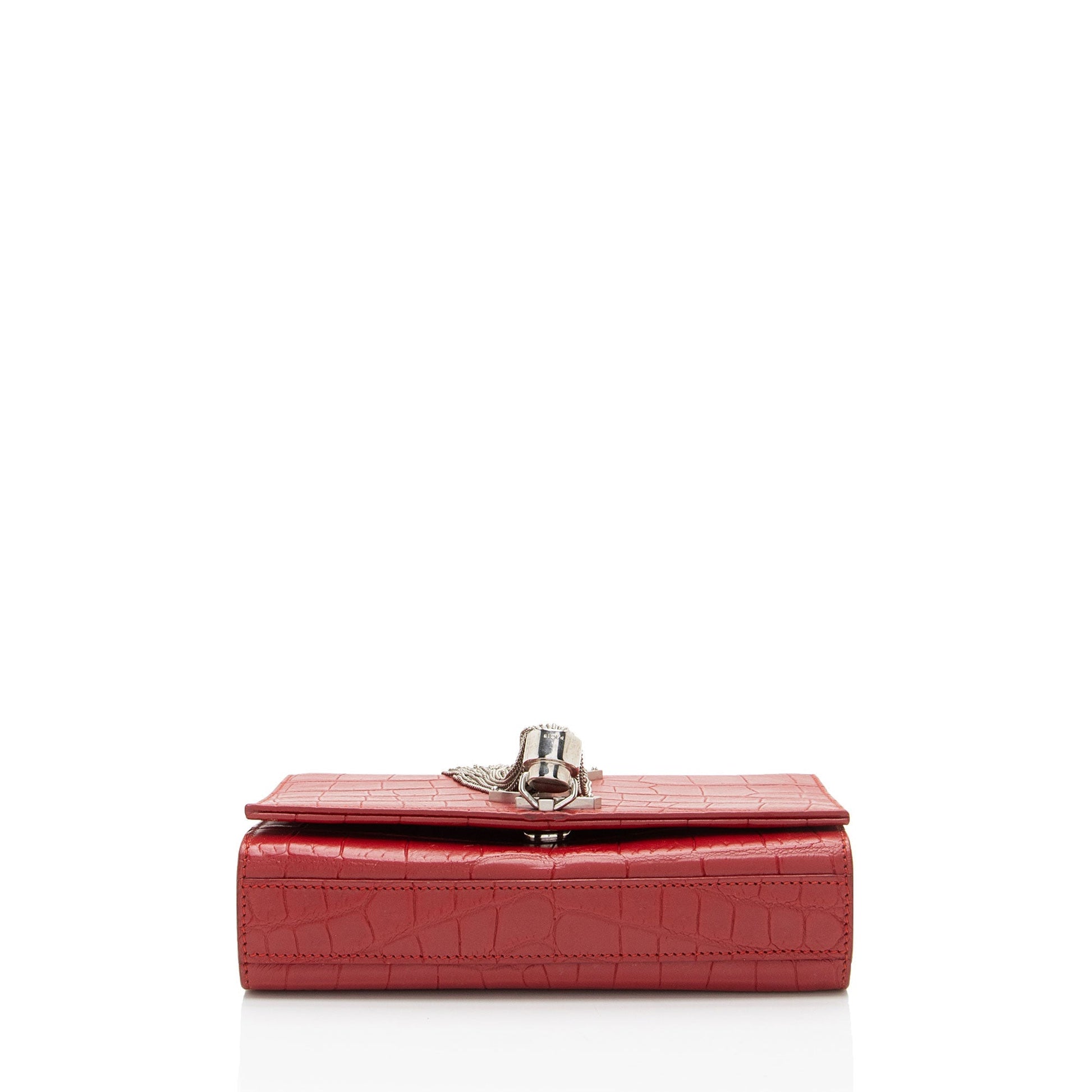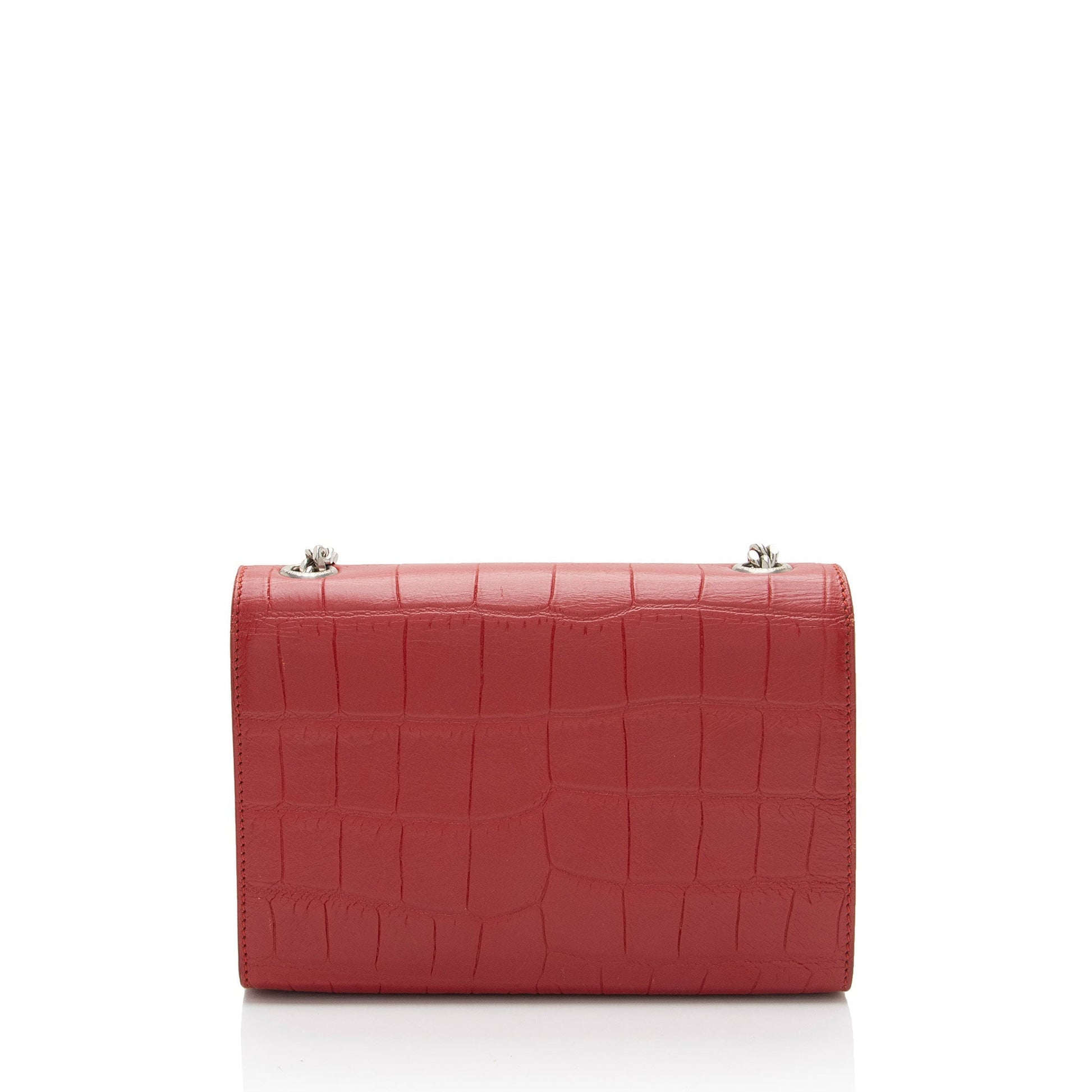 Saint Laurent Croc Embossed Leather Monogram Kate Tassel Mini Shoulder Bag (SHF-ULEaZy)