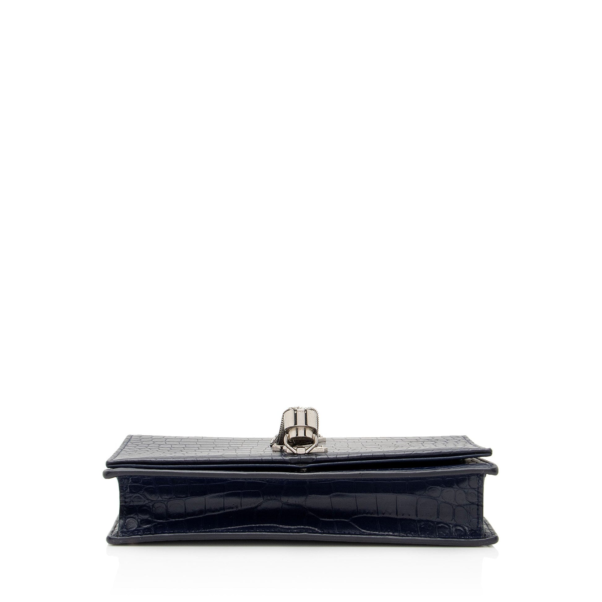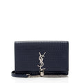 Saint Laurent Croc Embossed Leather Monogram Kate Tassel Small Shoulder Bag (SHF-lTeWCR)