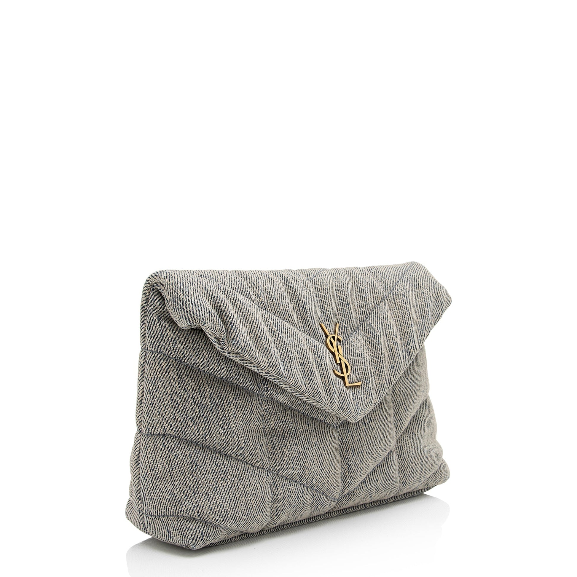 Saint Laurent Denim Monogram Puffer LouLou Small Clutch (SHF-23055)
