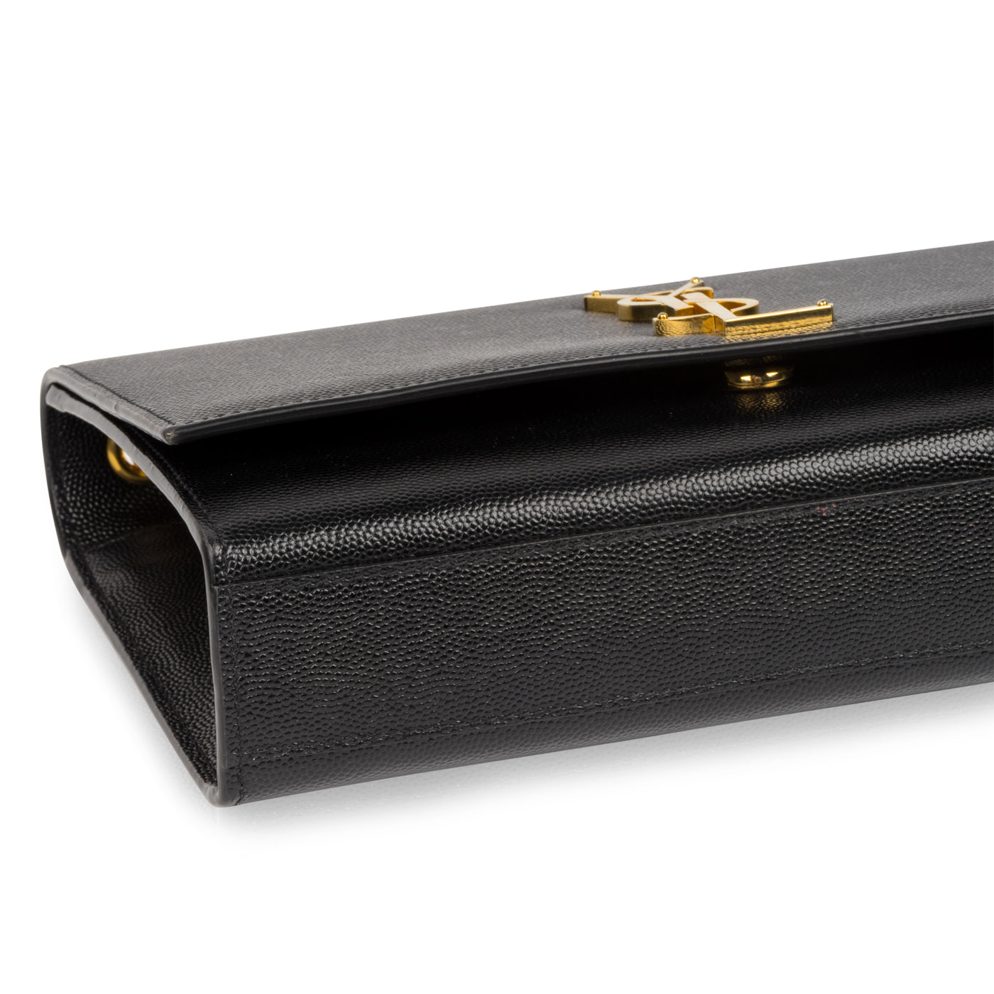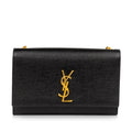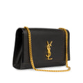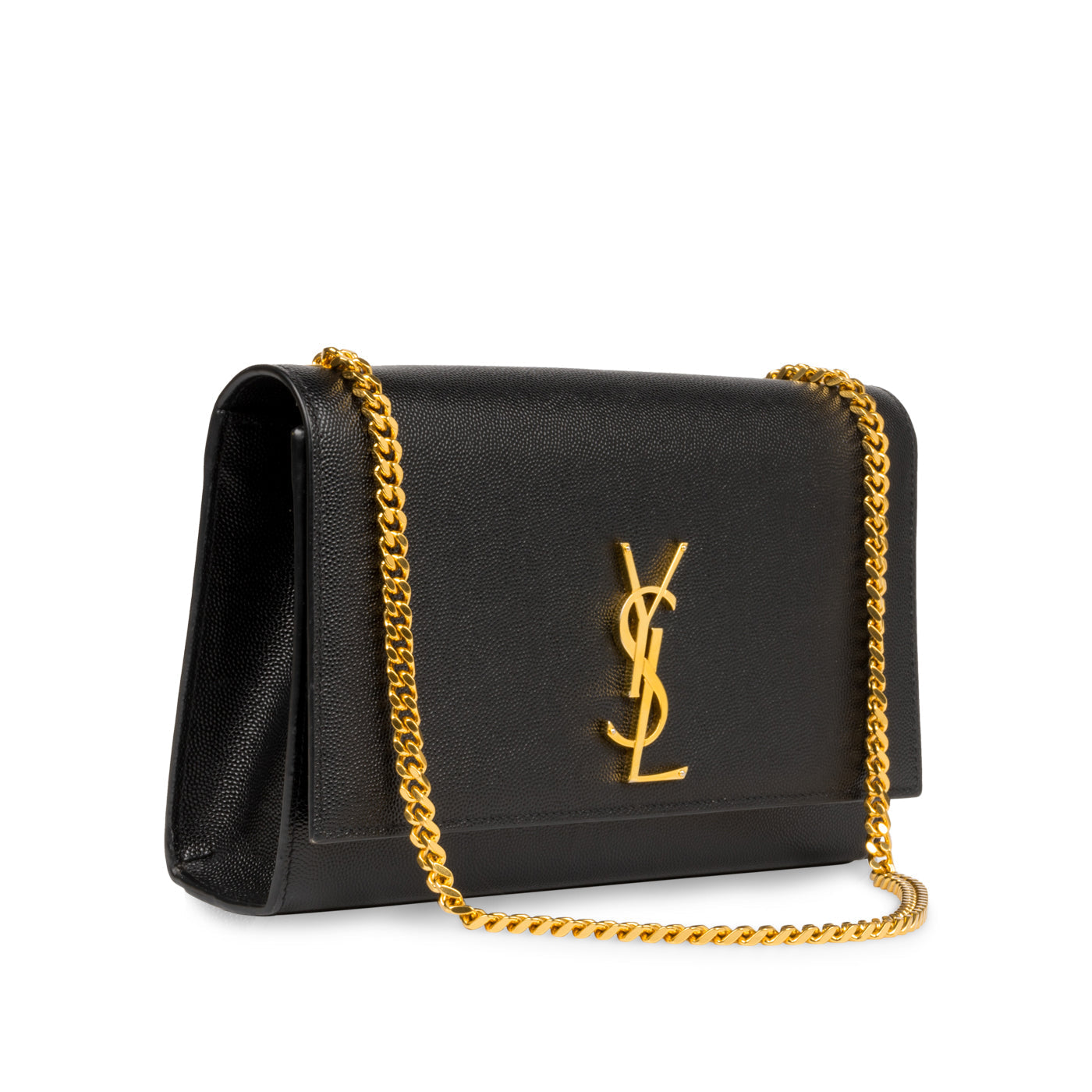 Crafted from black supple leather, the Kate bag from Saint Laurent is the ideal accessory for any woman with a love for luxury and not a lot to carry. This mini gem is timelessly elegant and can be worn with absolutely anything in your wardrobe. Carry this bag from day to night - dress it up with a cocktail dress and a pair of heels, or down with some black jeans and white sneakers. Featuring romantic, gold tone hardware and prominent YSL logo, the Kate offers the perfect balance of fashion and function. Throw your keys, cardholder, and favourite lipstick inside the small compartment and you're good to go! A timeless bag that you'll never fall out of love with, the Kate is a well-worthy addition to any luxury handbag collection.