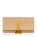 The delicate Kate clutch featuring Saint Laurent's signature gold YSL logo and tassel detail is the perfect accessory for every night out. Carefully crafted in smooth beige leather, the Kate Tassel clutch is a timeless piece that will never go out of style. Exuding elegance and class, this bag was made for a sophisticated and chic woman with a love for luxury. It's the ideal option to compliment any evening attire, whether it be a silk blouse and a skirt or a cocktail dress and a pair of heels, the Kate Tassel clutch is ultimate go-to.