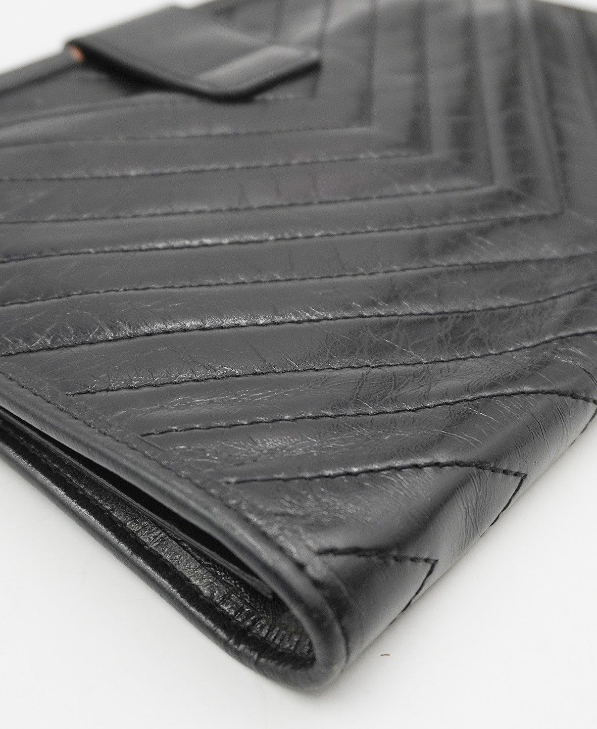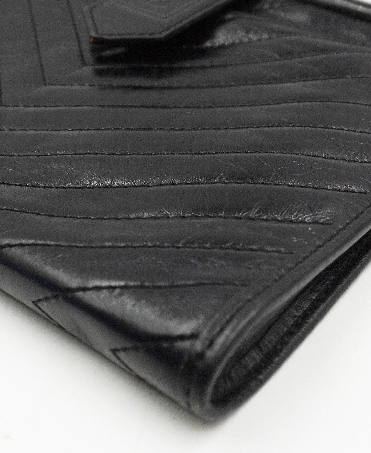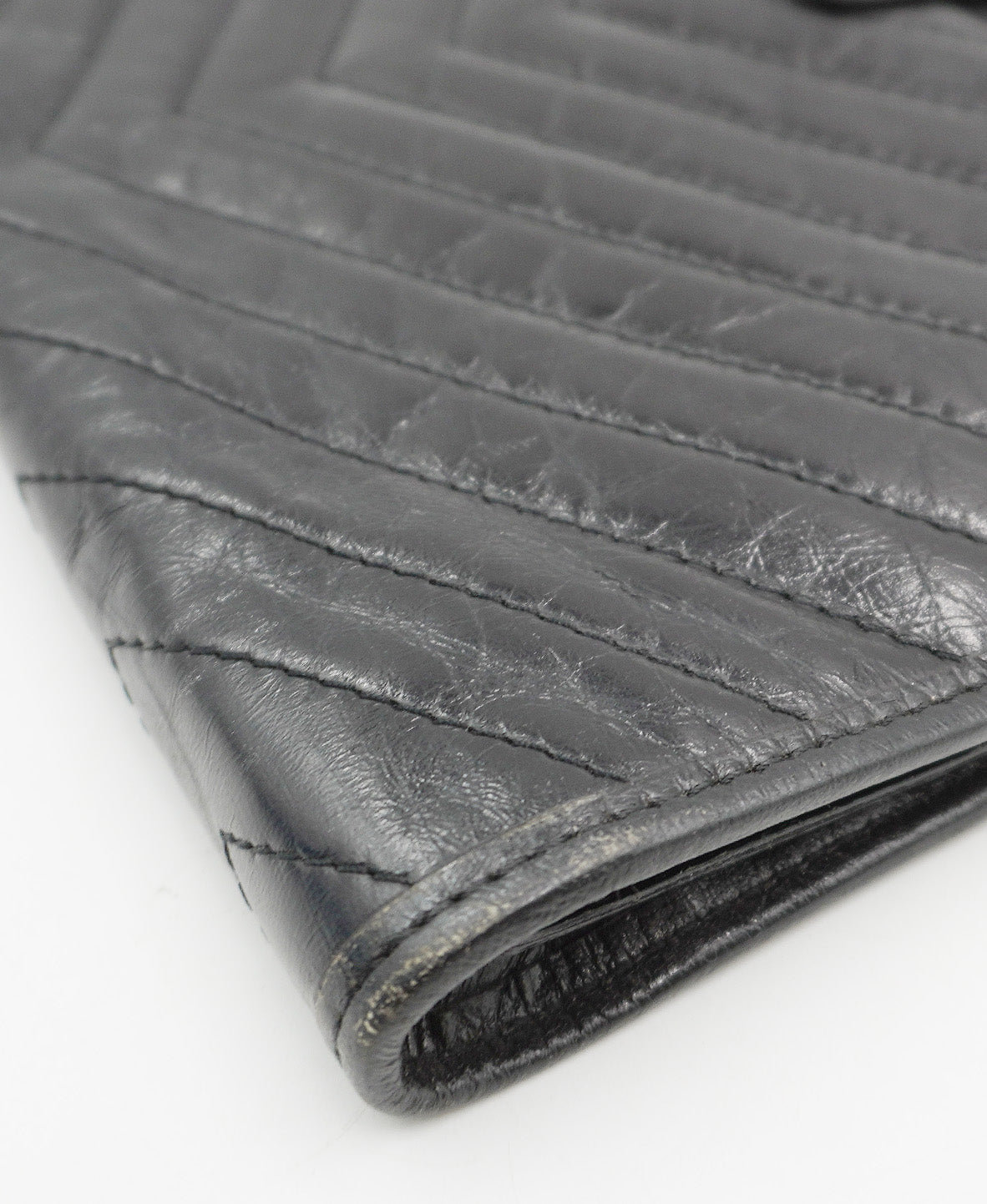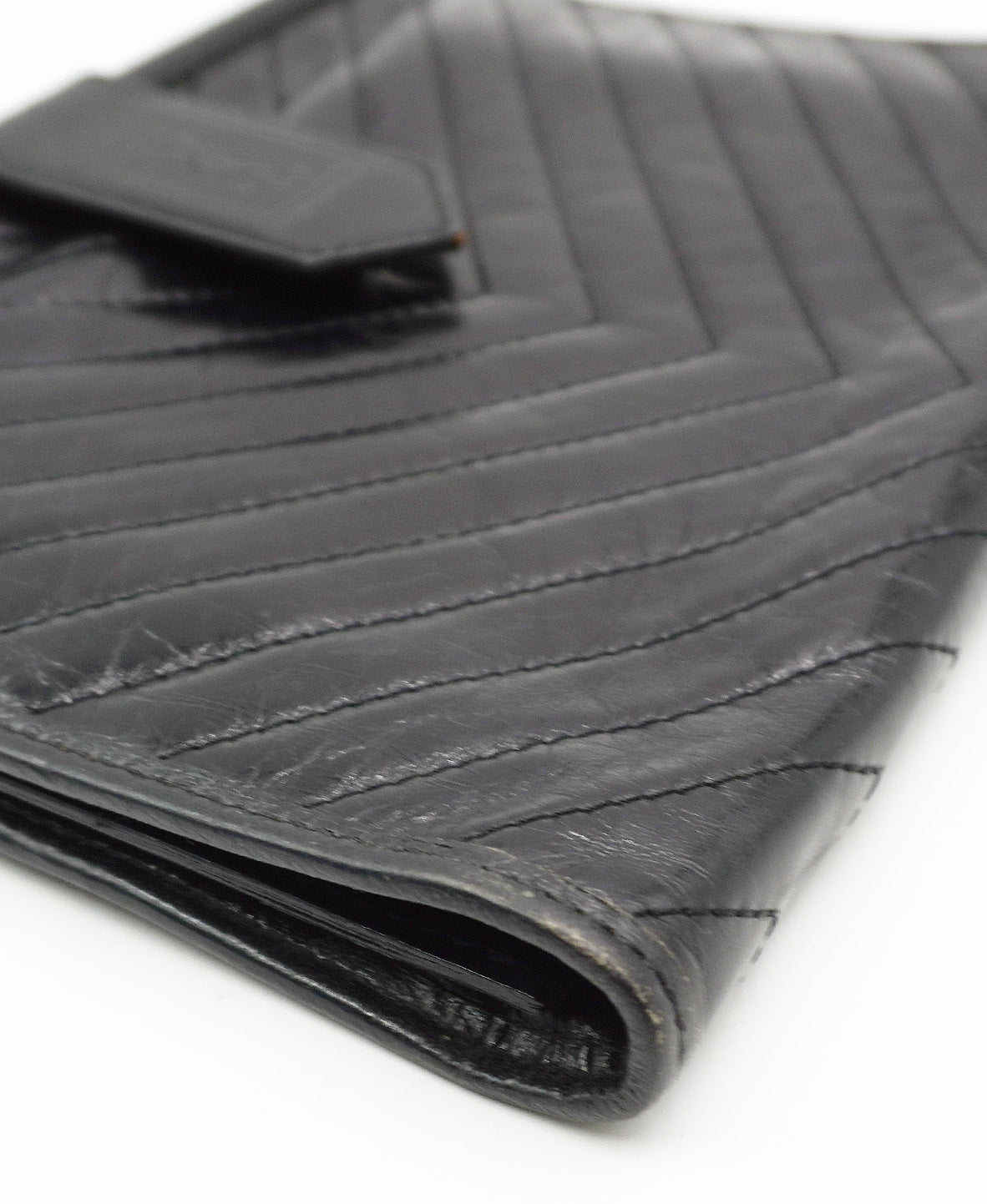 SAINT LAURENT Leather Clutch Black. This chic clutch bag features a quilted leather body, a top strap with a magnetic snap button closure, and interior zip and slip pockets. Great for daily use or night out.