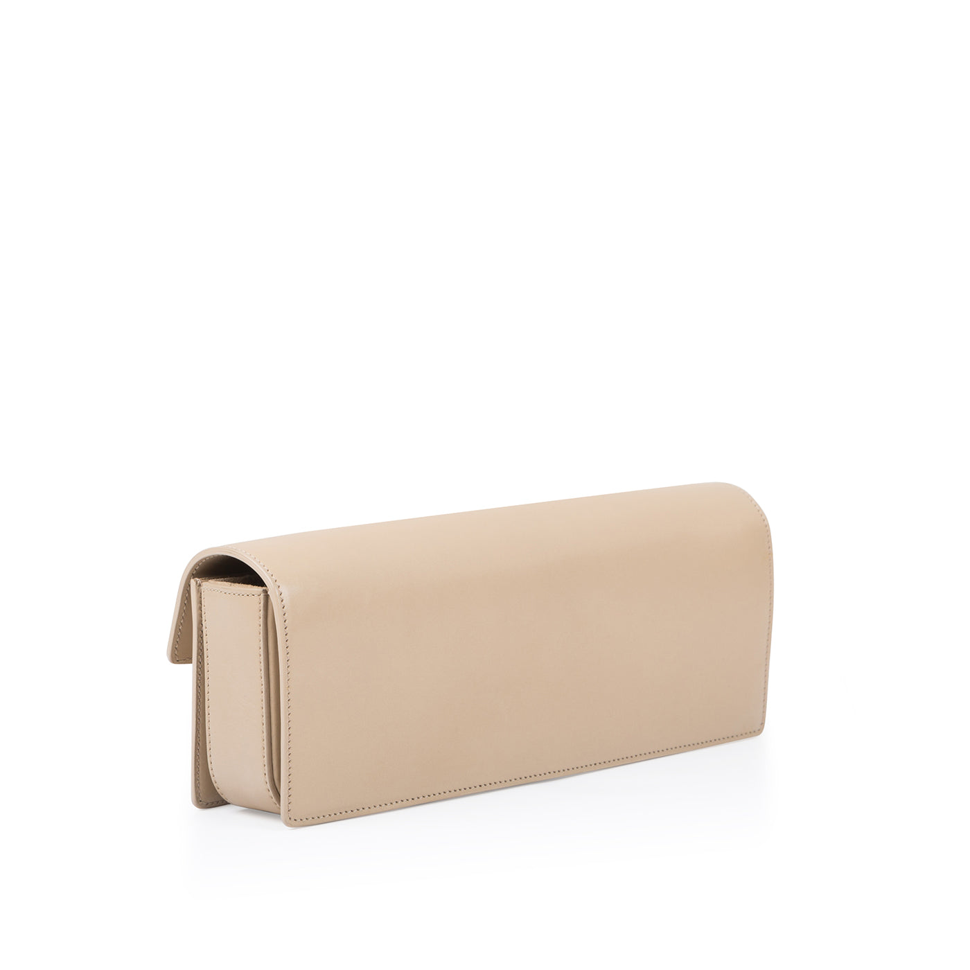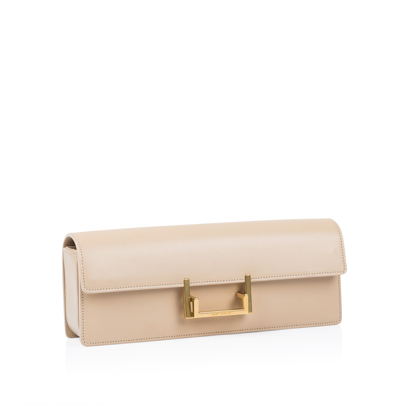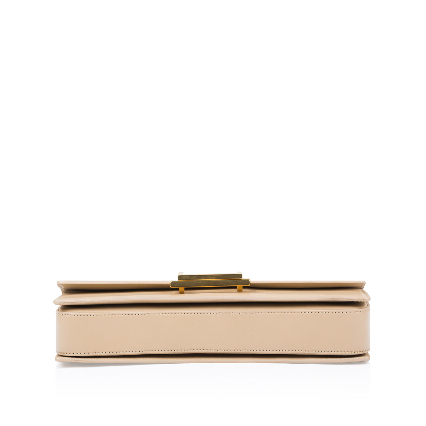 Carefully crafted from smooth, nude leather, Saint Laurent presents their unique and understated Loulou clutch. With its simplistic design and luxurious craftsmanship, the Loulou clutch is the ideal accessory for any night out. Featuring a goldstone clasp and long, boxy silhouette, this simple piece is the perfect compliment to any formal outfit you have in your wardrobe. Sleek, elegant and sophisticated, the Loulou clutch is a timeless piece that will remain in your wardrobe forever.
