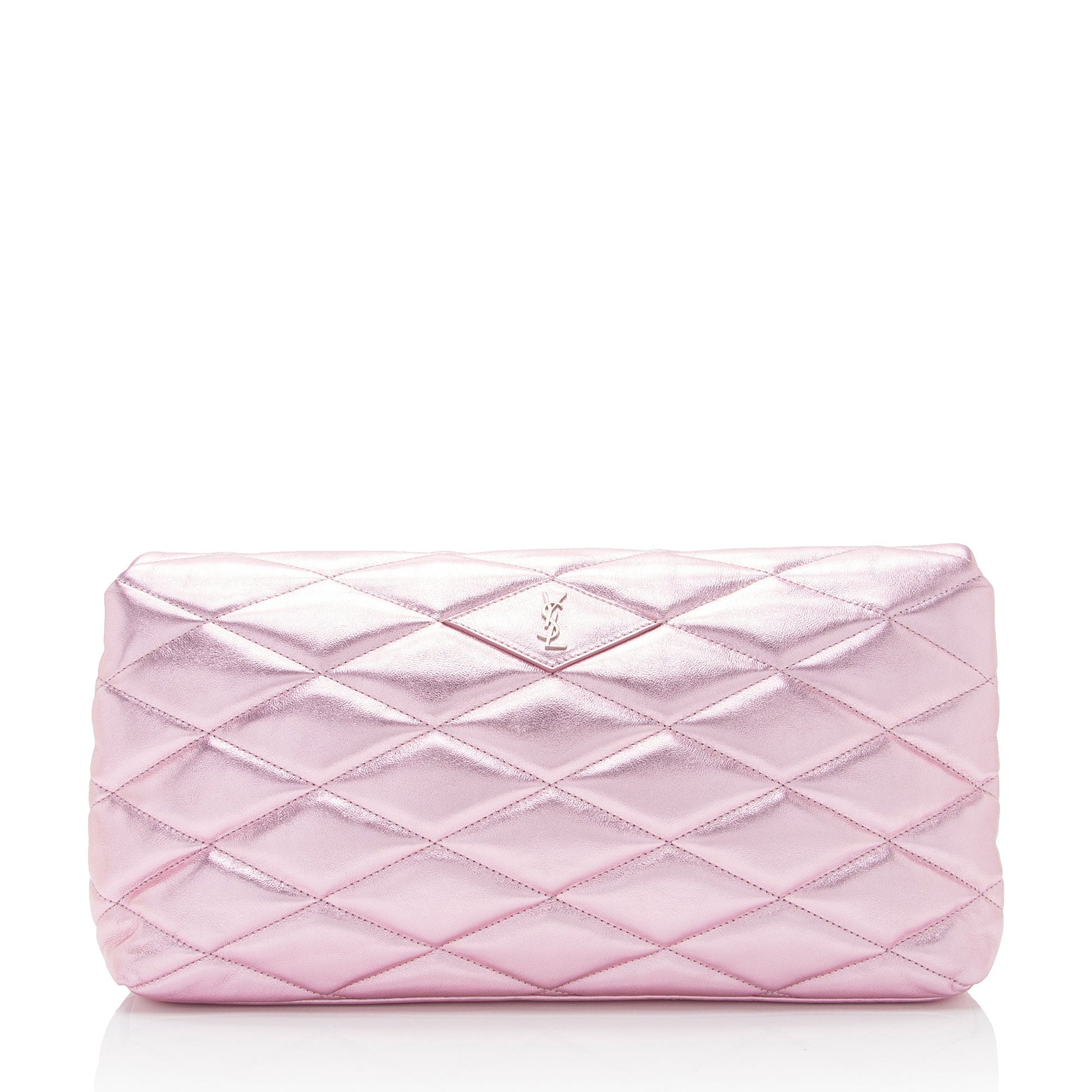 Saint Laurent Metallic Quilted Lambskin Puffer Sade Clutch (SHF-dsF7Ye)