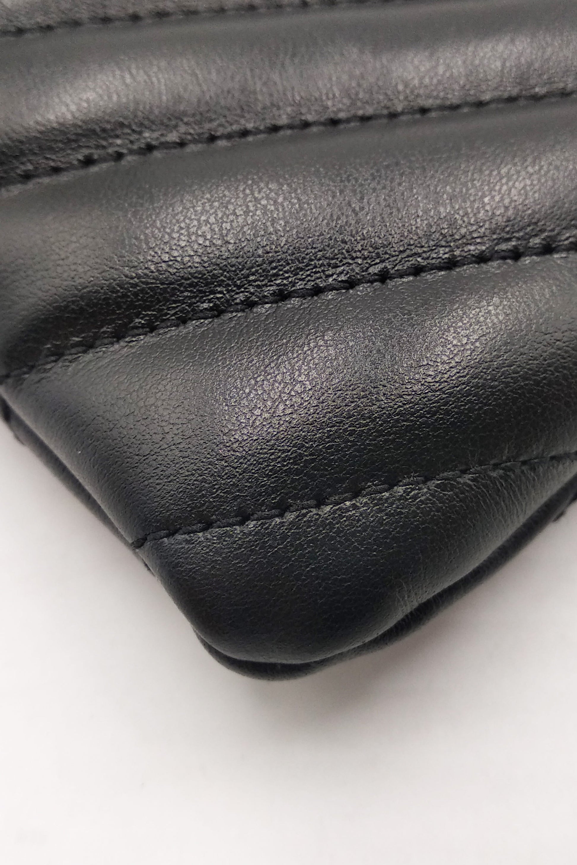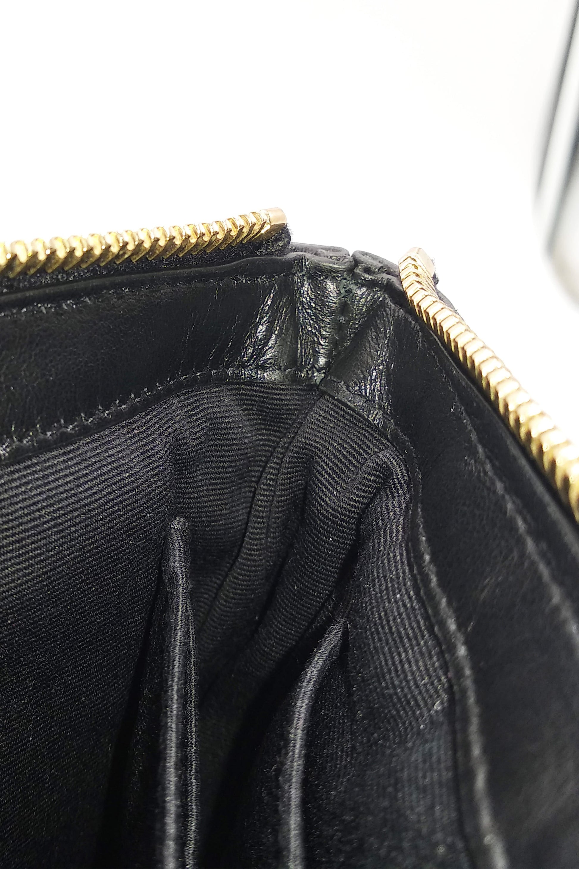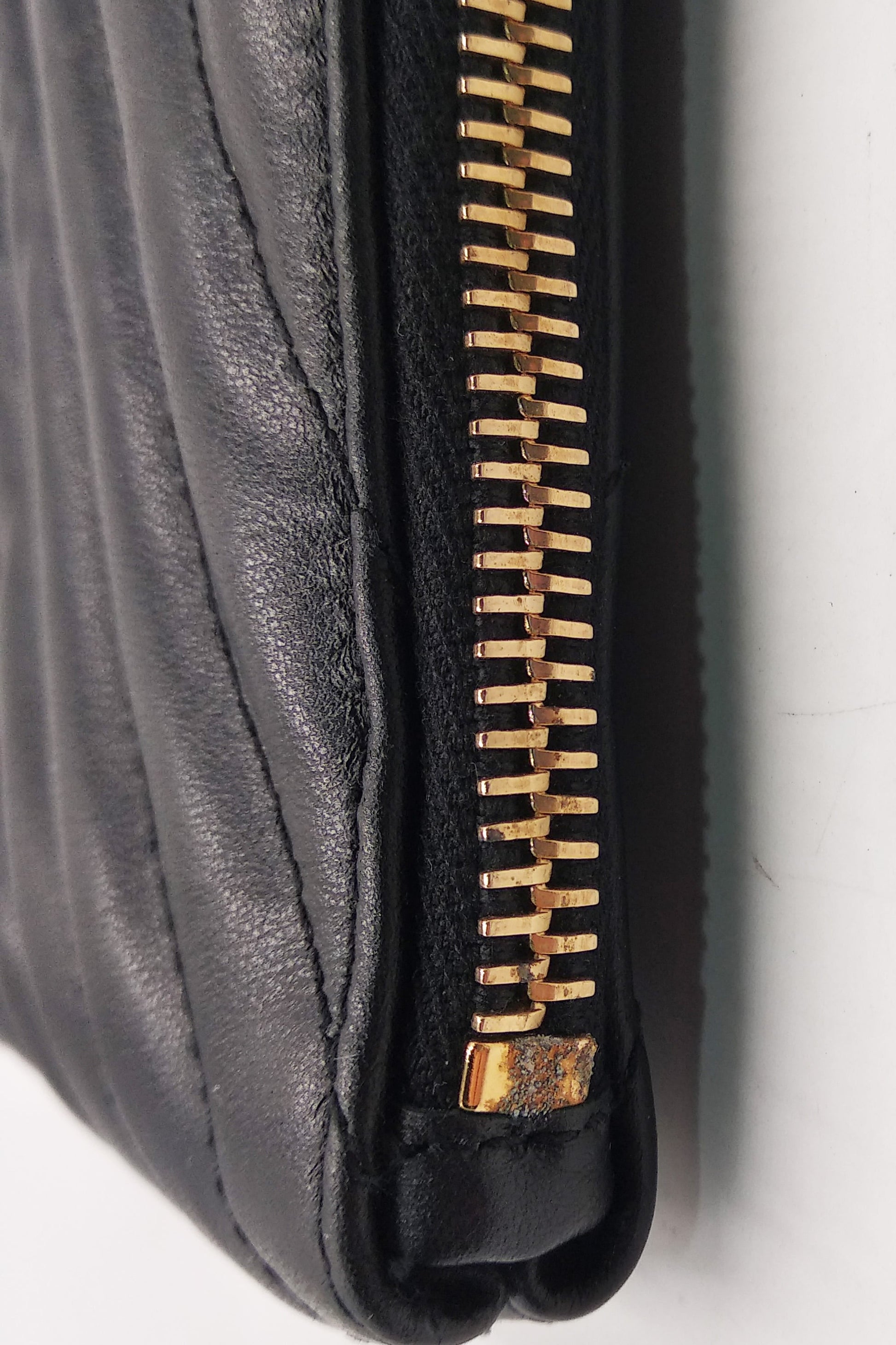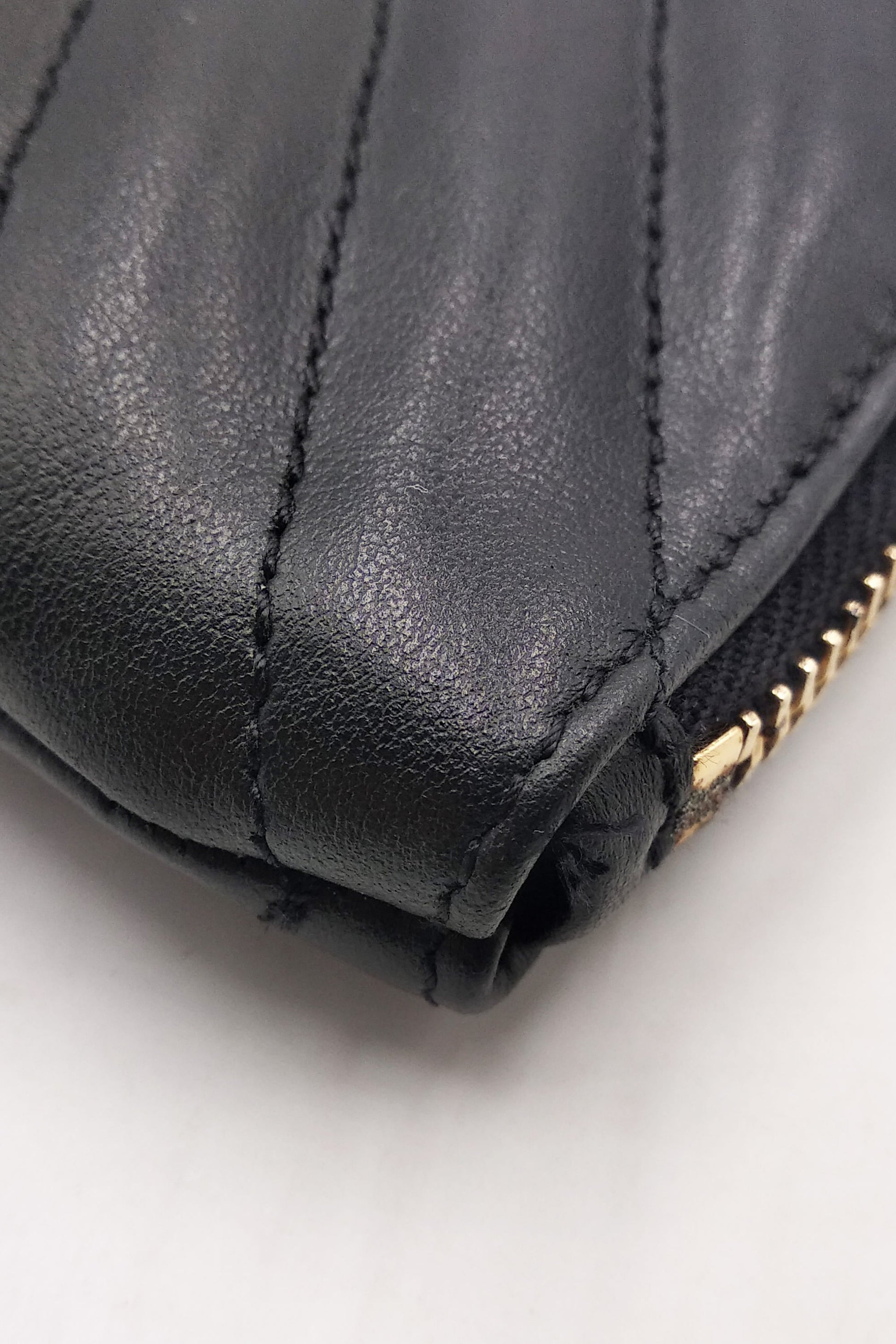 This Yves Saint Laurent clutch is an instant classic. The Monogram pouch wristlet features chevron Matelassé quilted leather with a raised gold-tone YSL monogram on the front. A detachable wristlet strap sits on the side. The interior is the perfect size to fit you phone, lipstick, and cash on a night out.