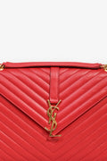 Saint Laurent Red Chevron Leather Envelope Large Chain Shoulder Bag