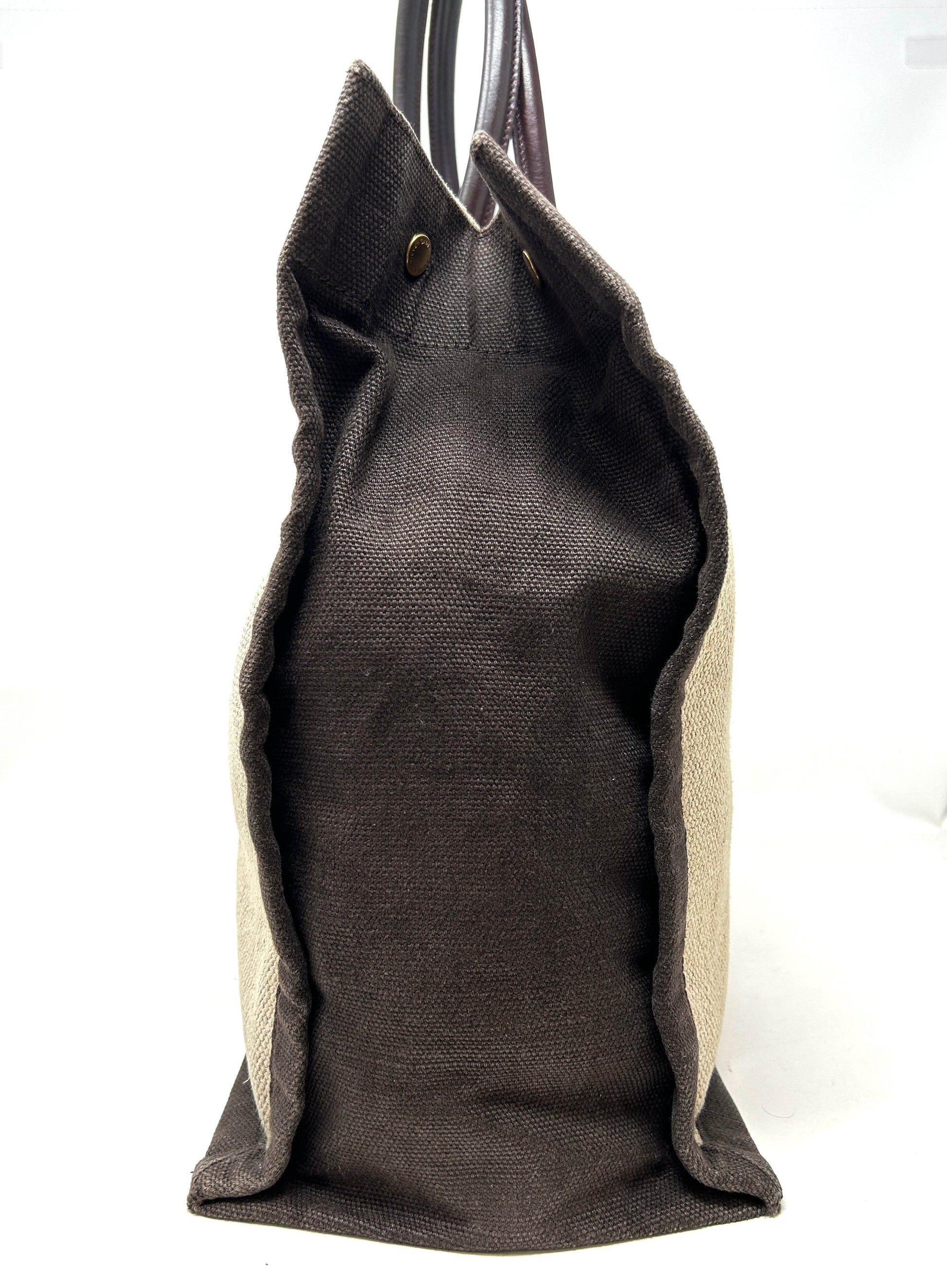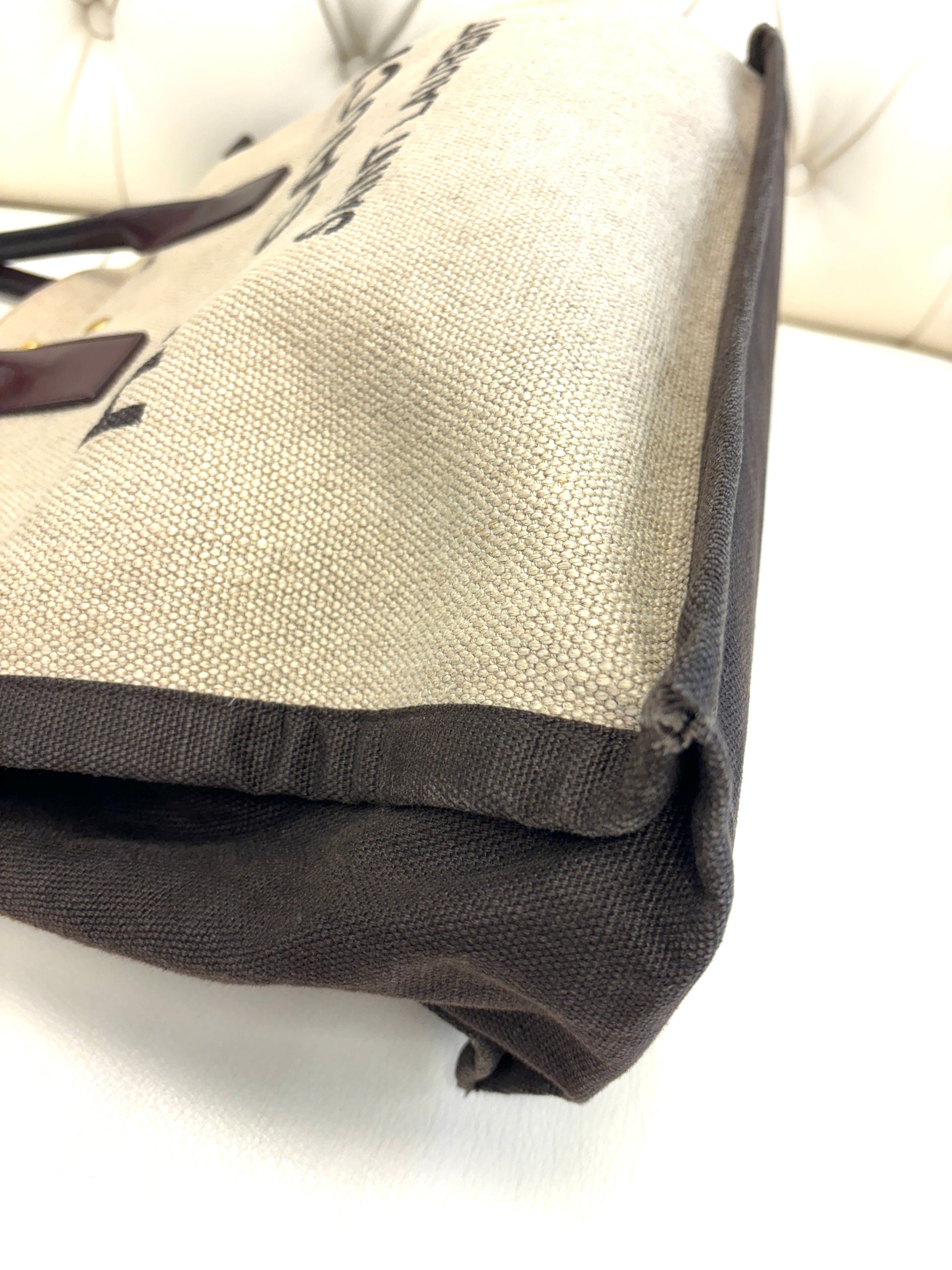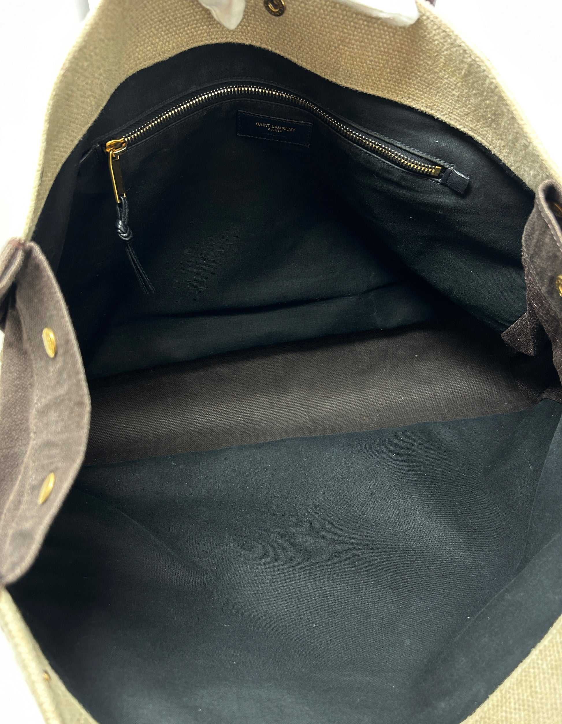 Saint Laurent Rive Gauche Large Beige And Dark Brown Canvas Tote Bag