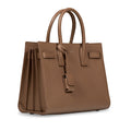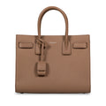 Widely renowned for its contemporary take on traditionally understated glamour, Saint Laurent brings us this miniature version of the much celebrated sac du jour. This breathtaking tote is full of character with its brownish/beige hue grained leather and adornment of silver toned hardware. Its interior encompasses multiple storage compartments and is lined with the finest black fabric lining. Style this bag with your favourite day outfit or detach its shoulder strap to create a jaw-dropping evening look that is sure to leave everyone in awe.