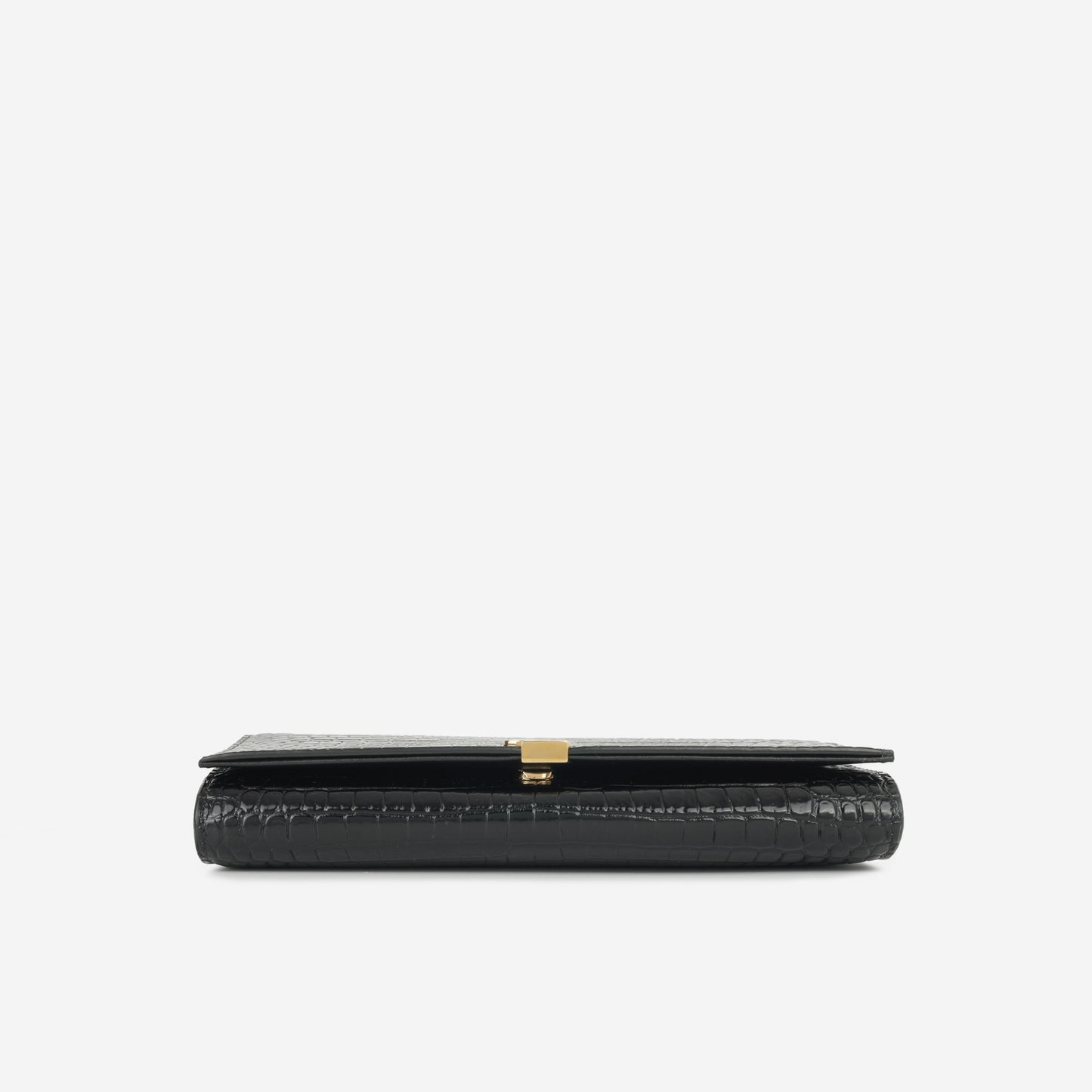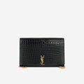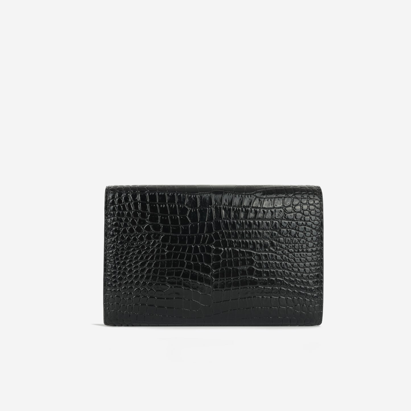 Saint Laurent - Cassandre Clutch on Chain - Black Croc Embossed Leather GHW -