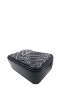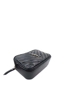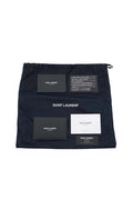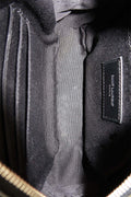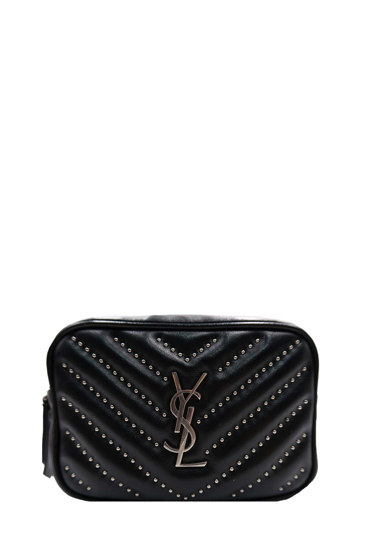 An adorable Yves Saint Laurent Chevron Quilted Monogram Lou Belt Bag in this is the perfect size to hold your cell phone, keys and other girly necessities. The bag is crafted out of durable studded calfskin leather with an adjustable leather strap. The iconic YSL sits front and center. The top unzip to a fabric lining interior with patch pockets.