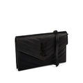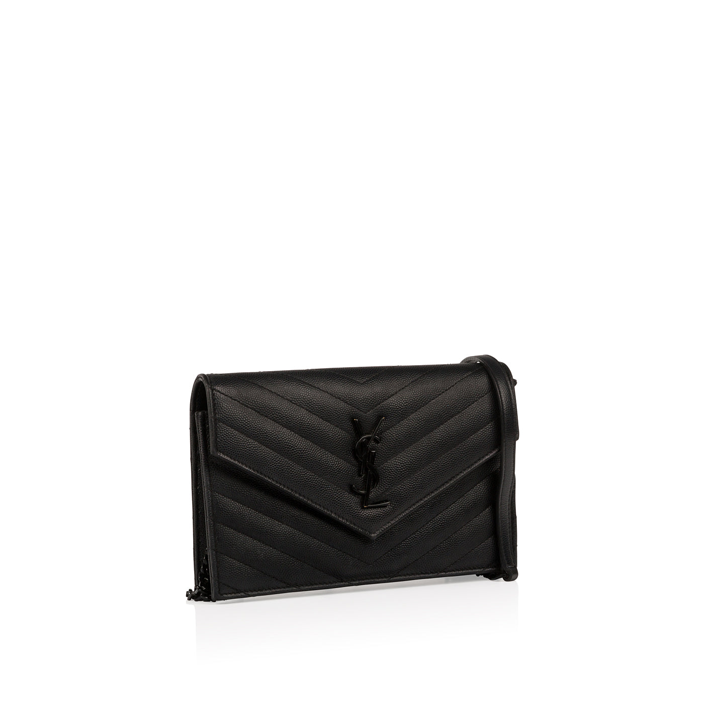 Sleek, sexy and alluring, Saint Laurent presents the gorgeous Monogram Wallet on Chain in black. This fantastic WOC is crafted from quilted, textured calf-leather and is punctuated with gunmetal hardware to reinforce its noir aesthetic. Its exterior also features the highly-acclaimed YSL monogram logo alongside a single chain strap. Its envelope-styled front flap opens to reveal a succulent black leather lining and showcases an array of storage compartments; from zip pockets to CC card slots, the WOC is quitted to store all of your necessities for a night out. Style with bold, eye-popping shades to create the perfect contrast between bag and outfit.