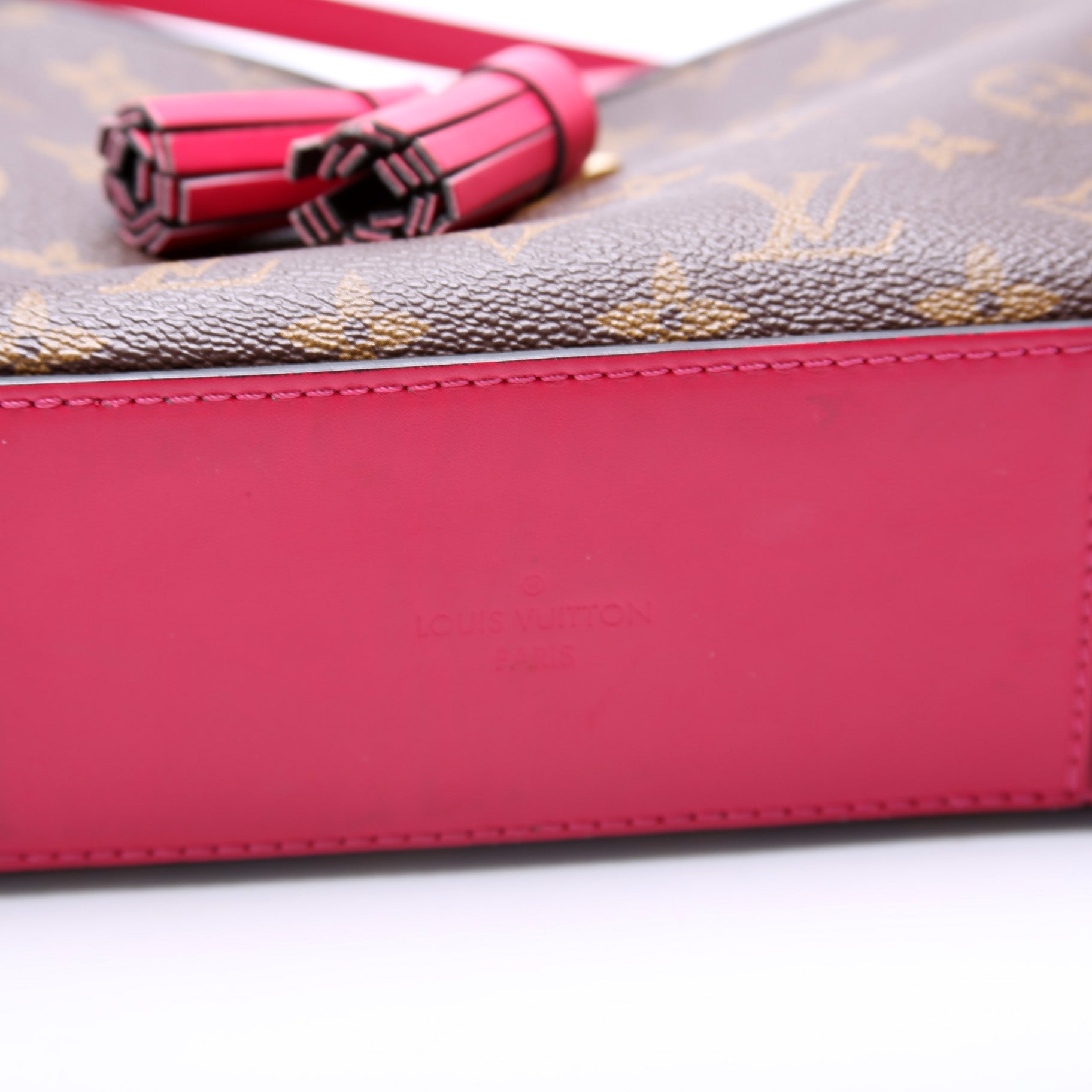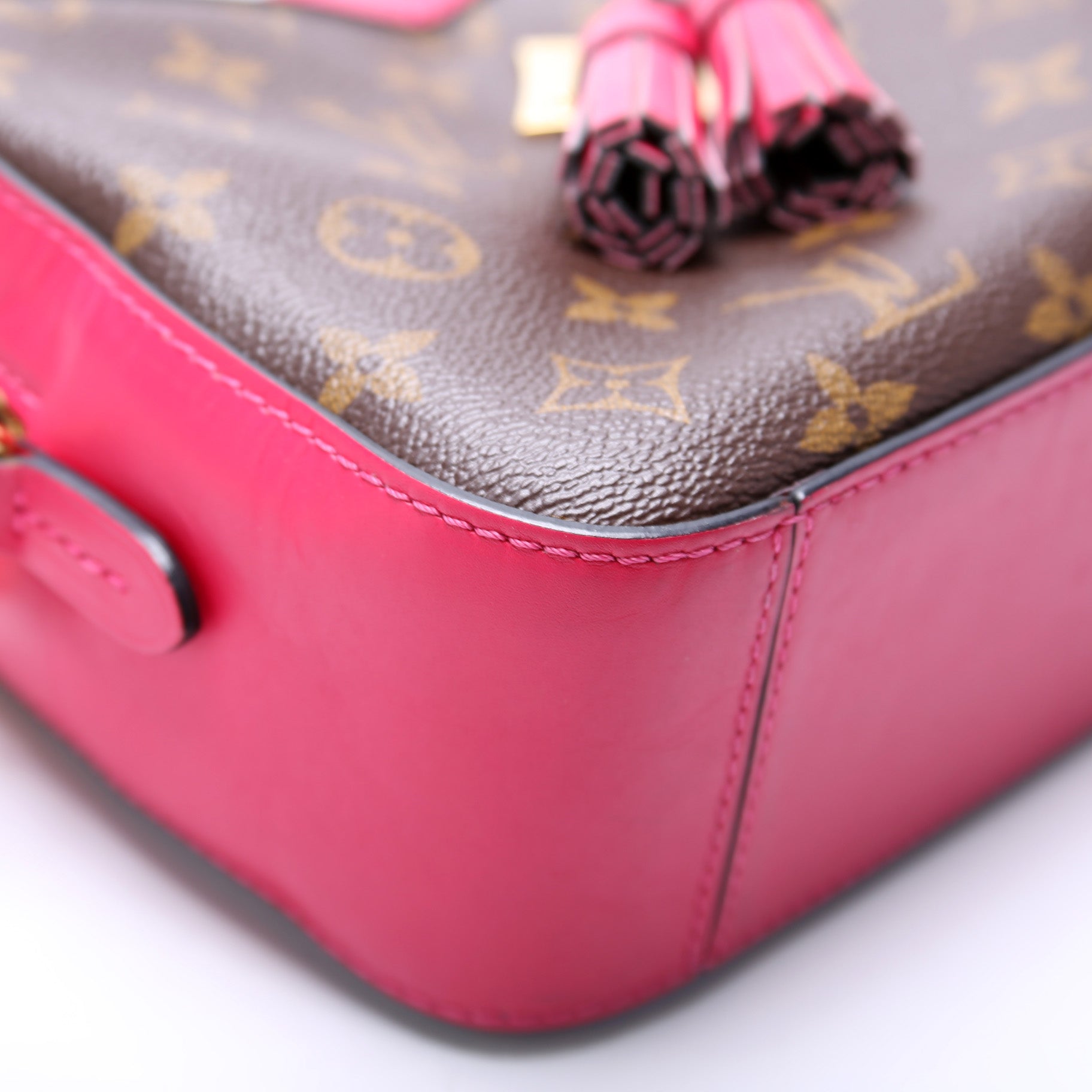 This Louis Vuitton Saintongeis eye catching bag. The exterior is in the classic Louis Vuitton Monogram coated canvas.