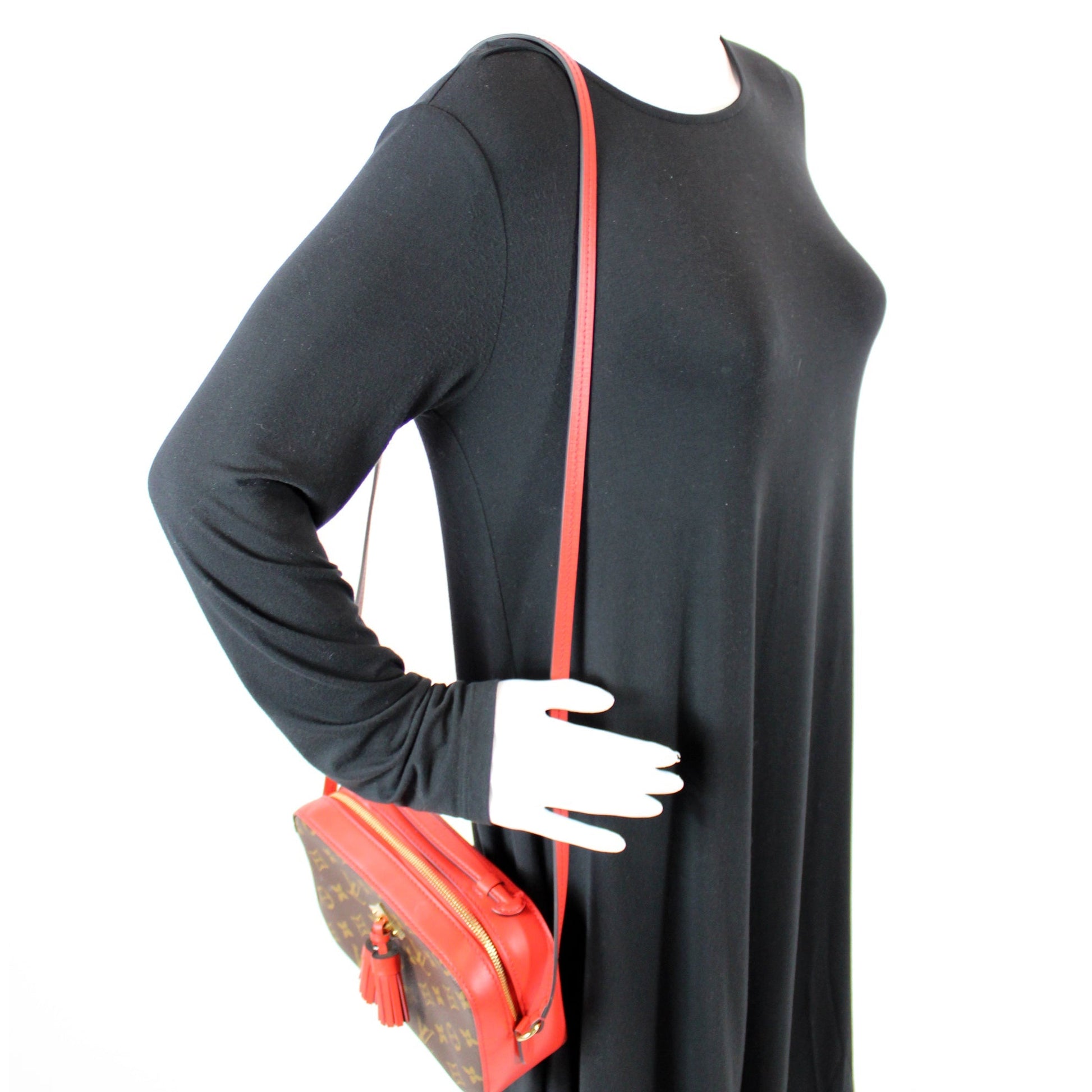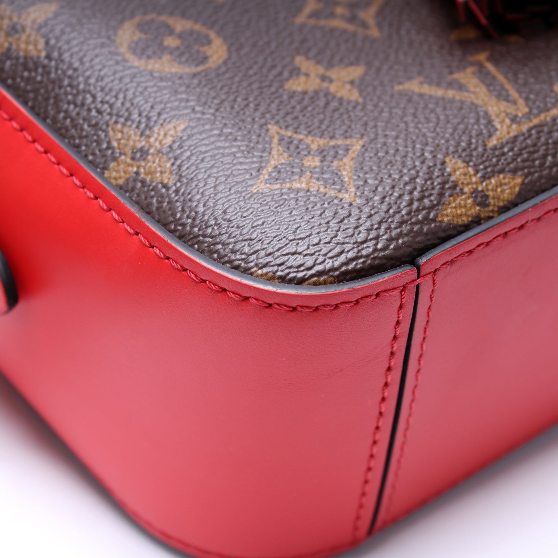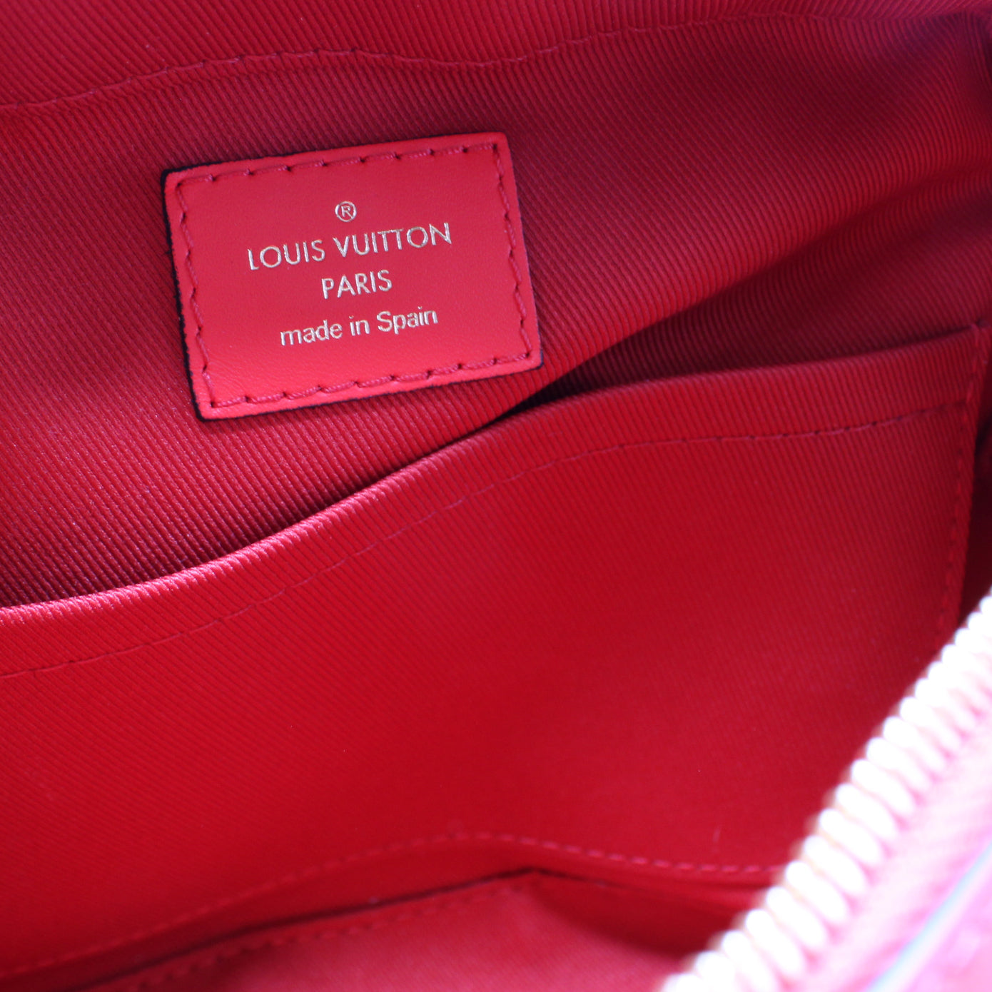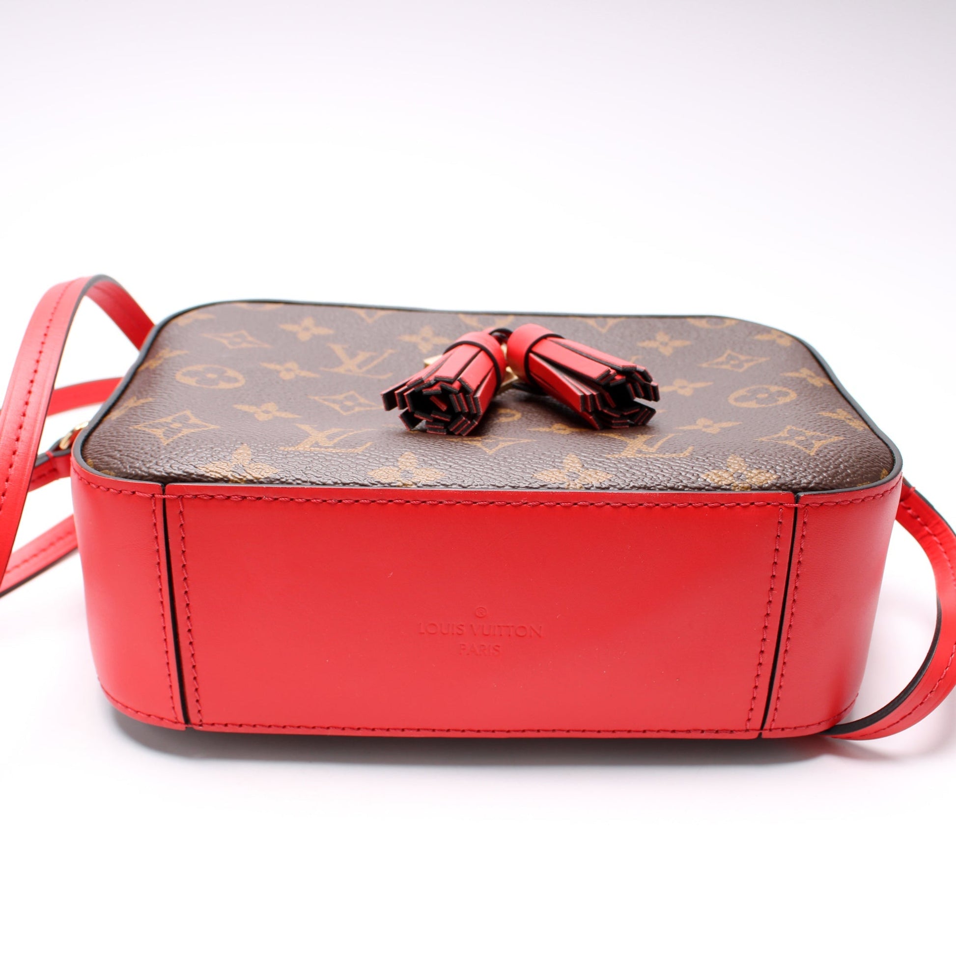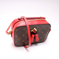This Louis Vuitton Saintongeis eye catching bag. The exterior is in the classic Louis Vuitton Monogram coated canvas.