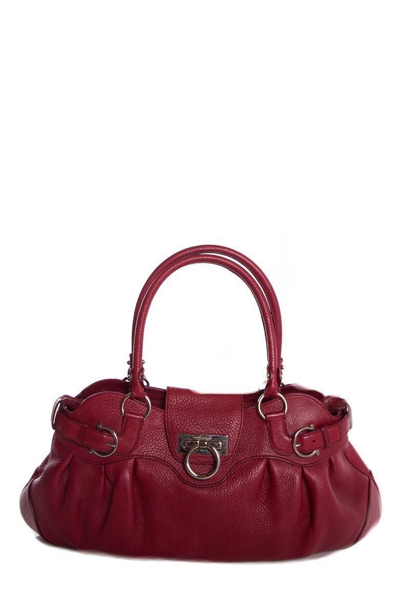 Salvatore Ferragamo Red Grained Leather Handle Bag