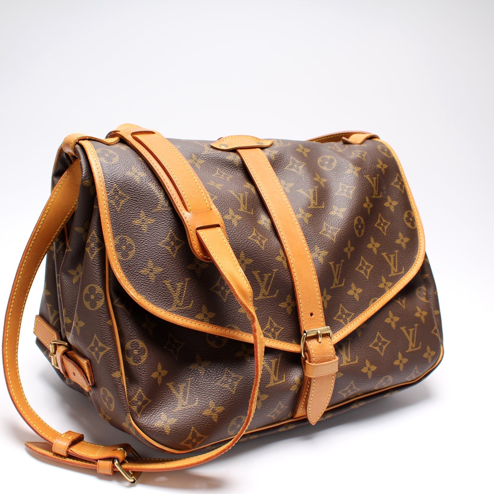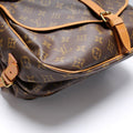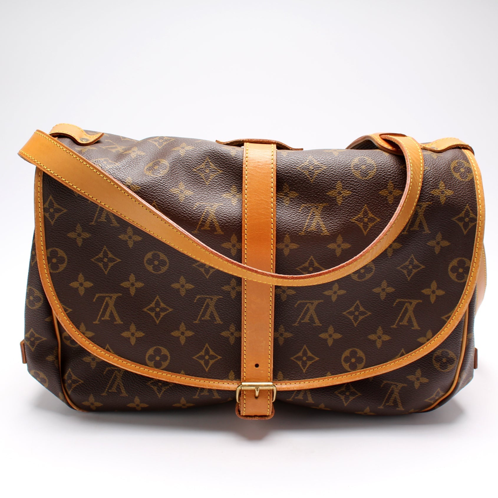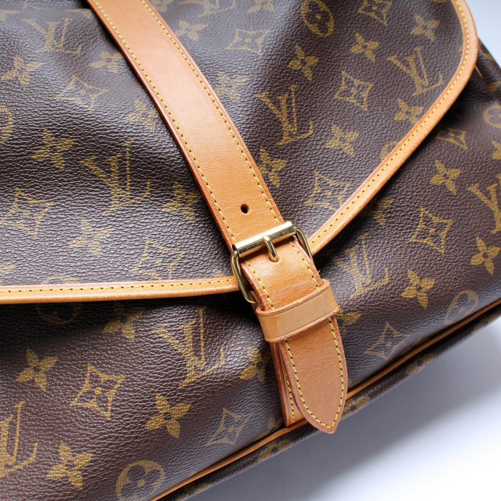 This Louis Vuitton Saumur 35is eye catching bag. The exterior is in the classic Louis Vuitton Monogram coated canvas.
