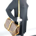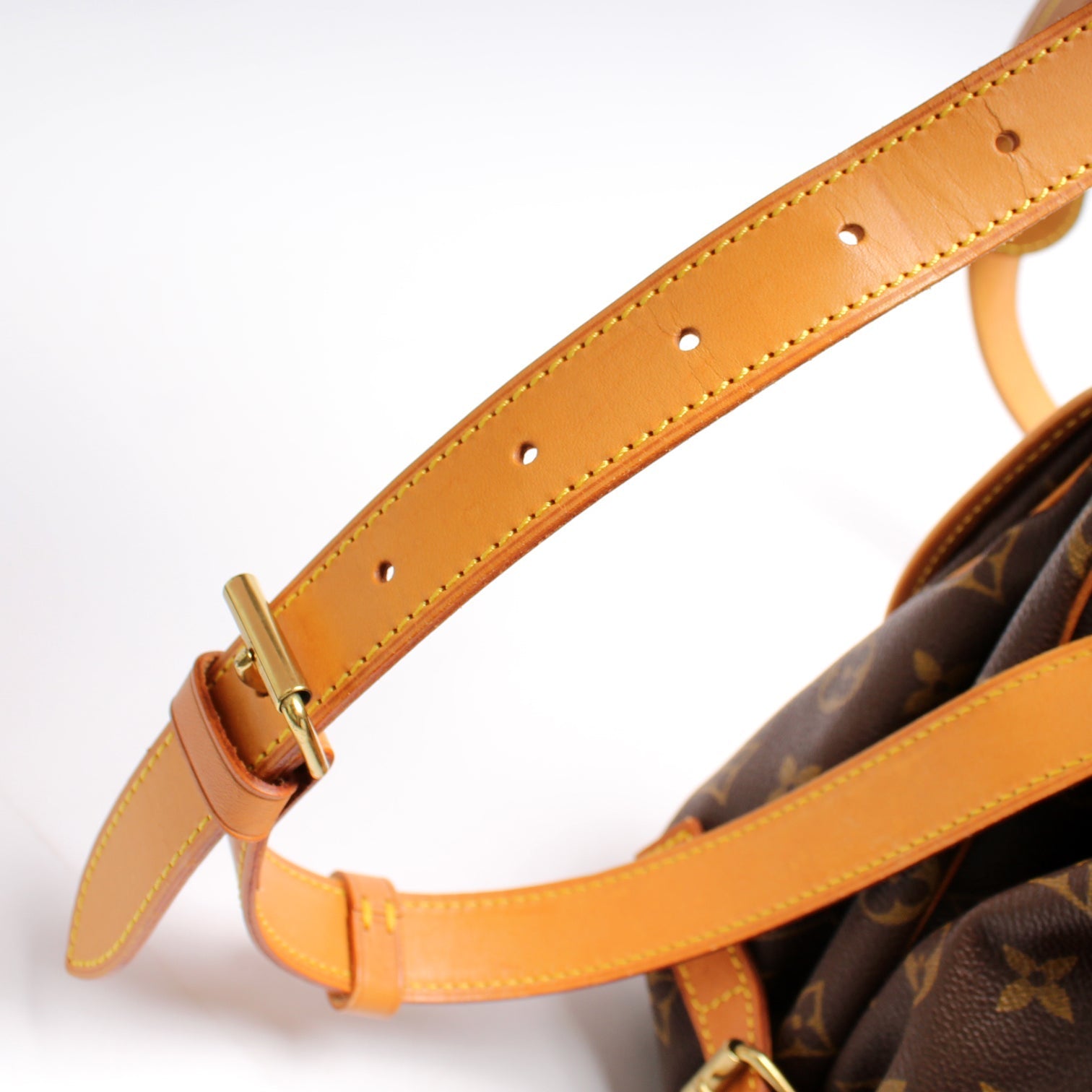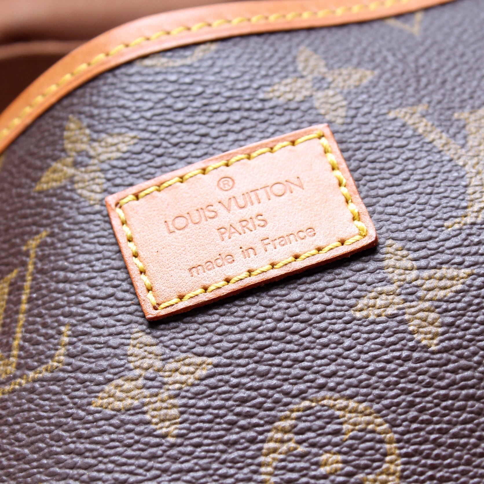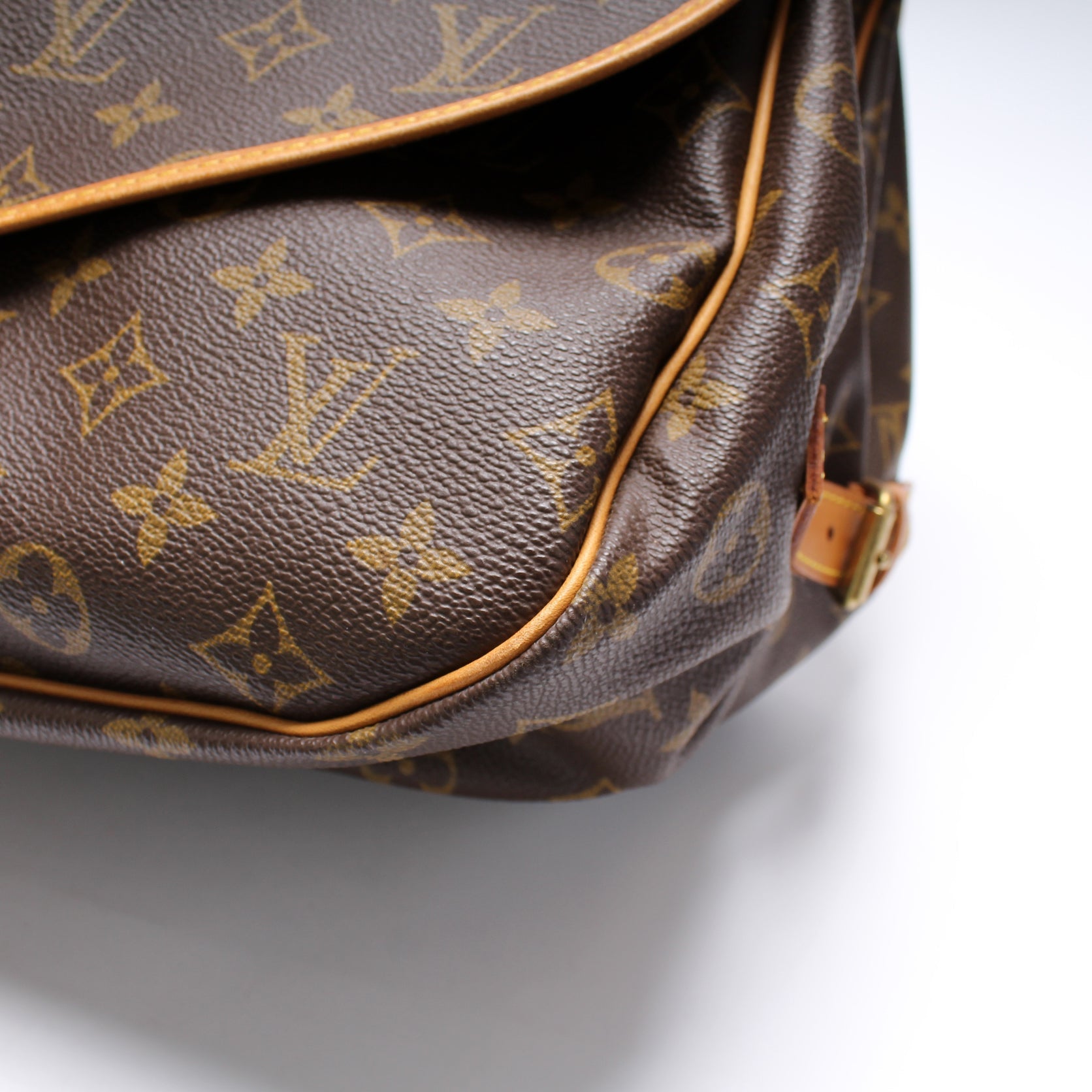 This Louis Vuitton Saumur 35is eye catching bag. The exterior is in the classic Louis Vuitton Monogram coated canvas.