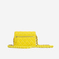 Exuding charm and sophistication, this Seasonal Lacquer Chain Flap in Yellow is a standout accessory. Crafted from yellow quilted lambskin and adorned with antique gold-tone hardware, it features the iconic CC front logo for a touch of elegance.The flap is secured with a press-stud closure, while the rear zip pocket adds practicality to its design.